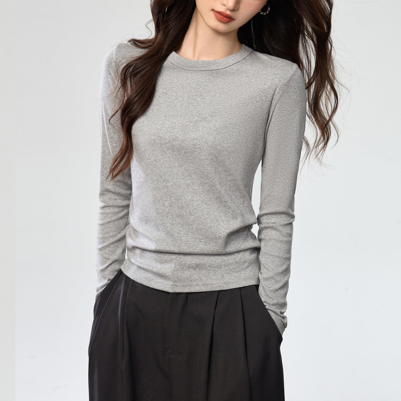 精梳纯棉 明线设计百搭2026秋装新款长袖T恤女简约圆领打底衫上衣