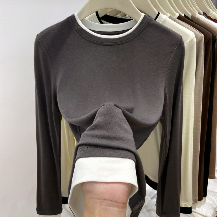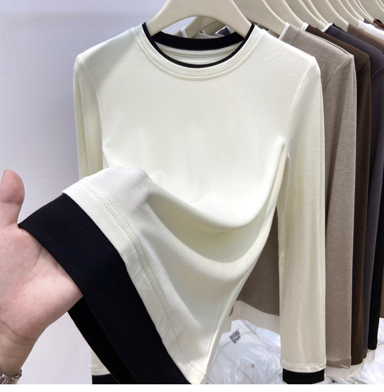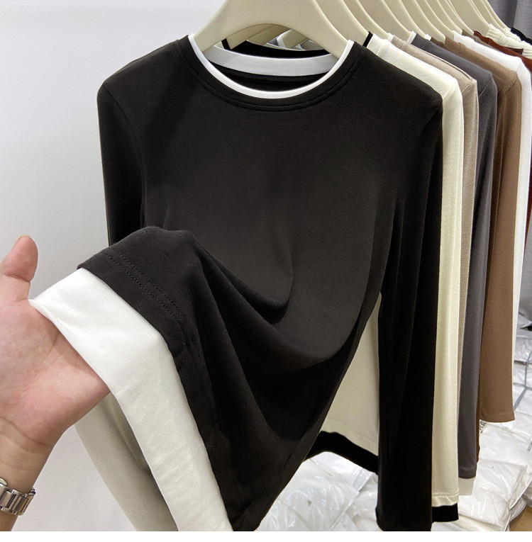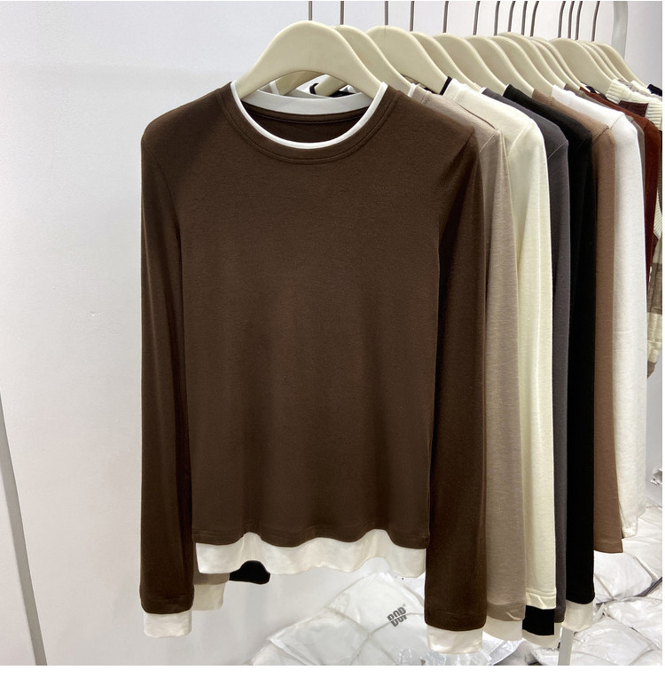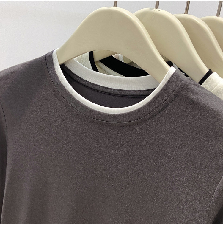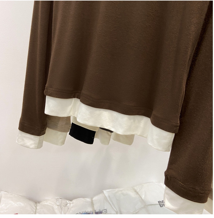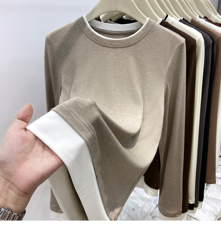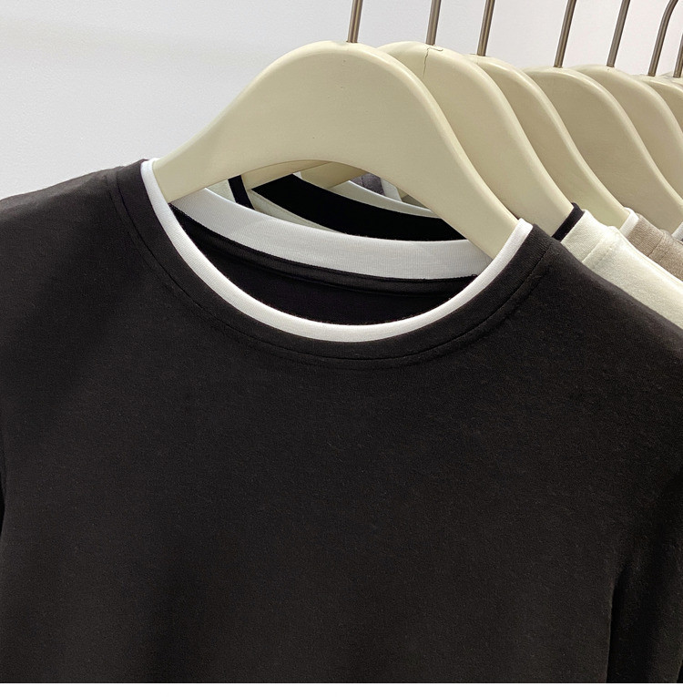 美拉德设计感假两件长袖t恤女装秋冬叠穿拼接撞色内搭上衣打底衫