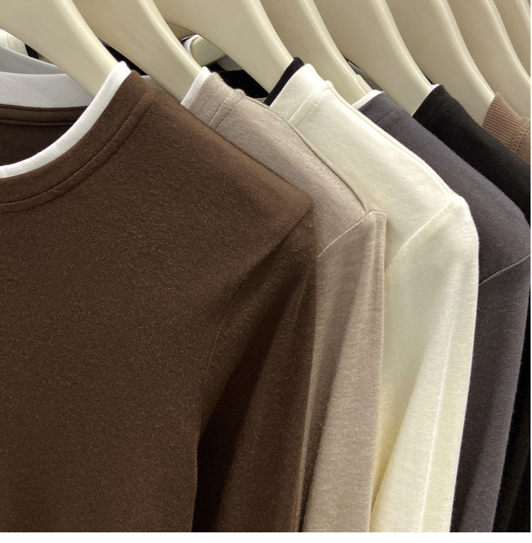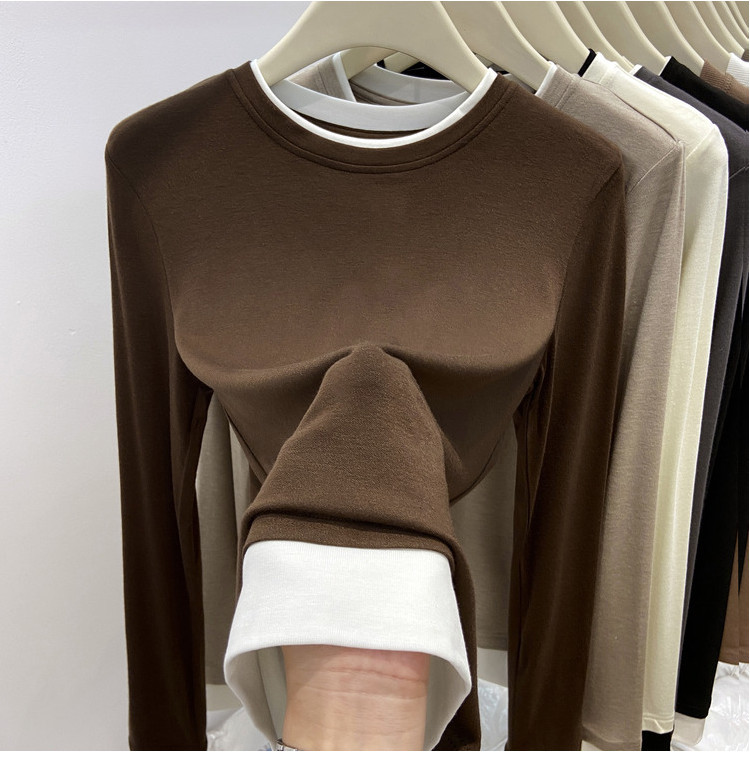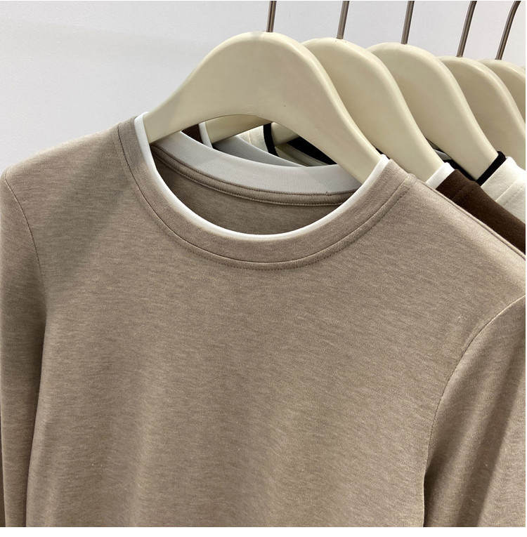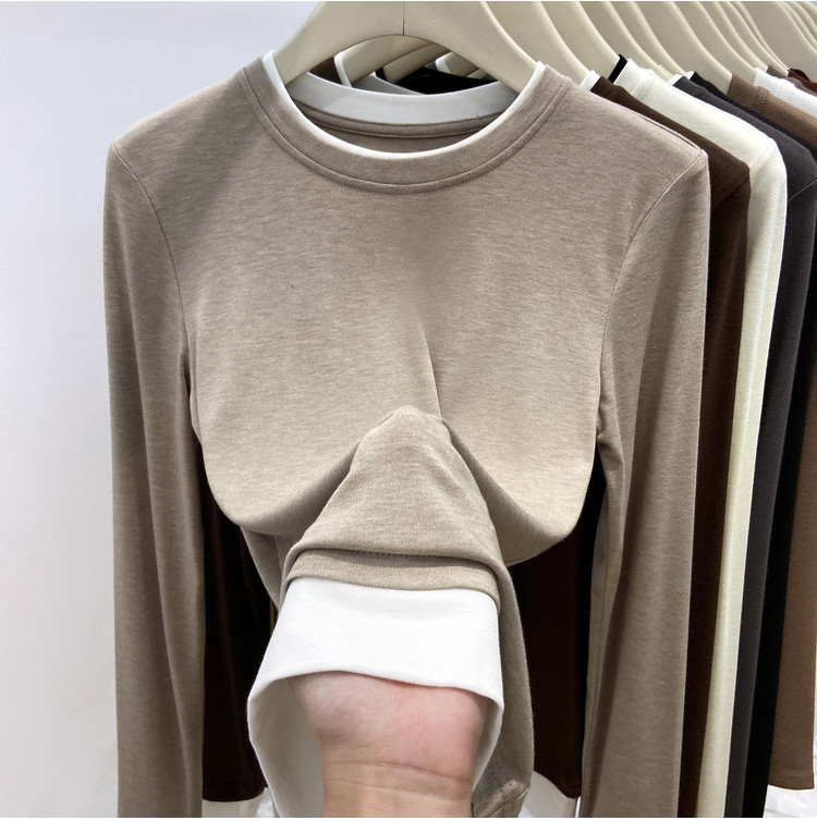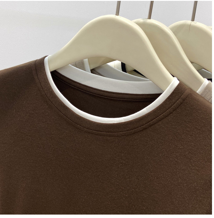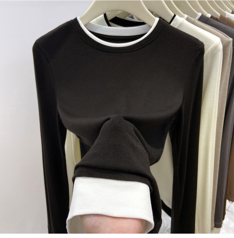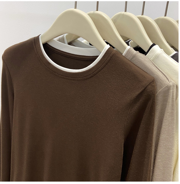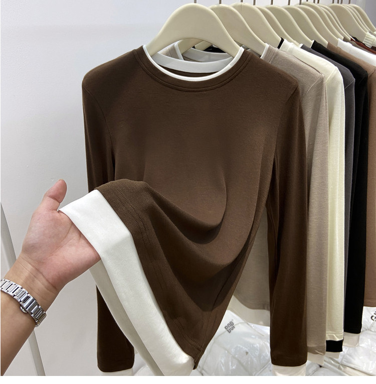 美拉德设计感假两件长袖t恤女装秋冬叠穿拼接撞色内搭上衣打底衫