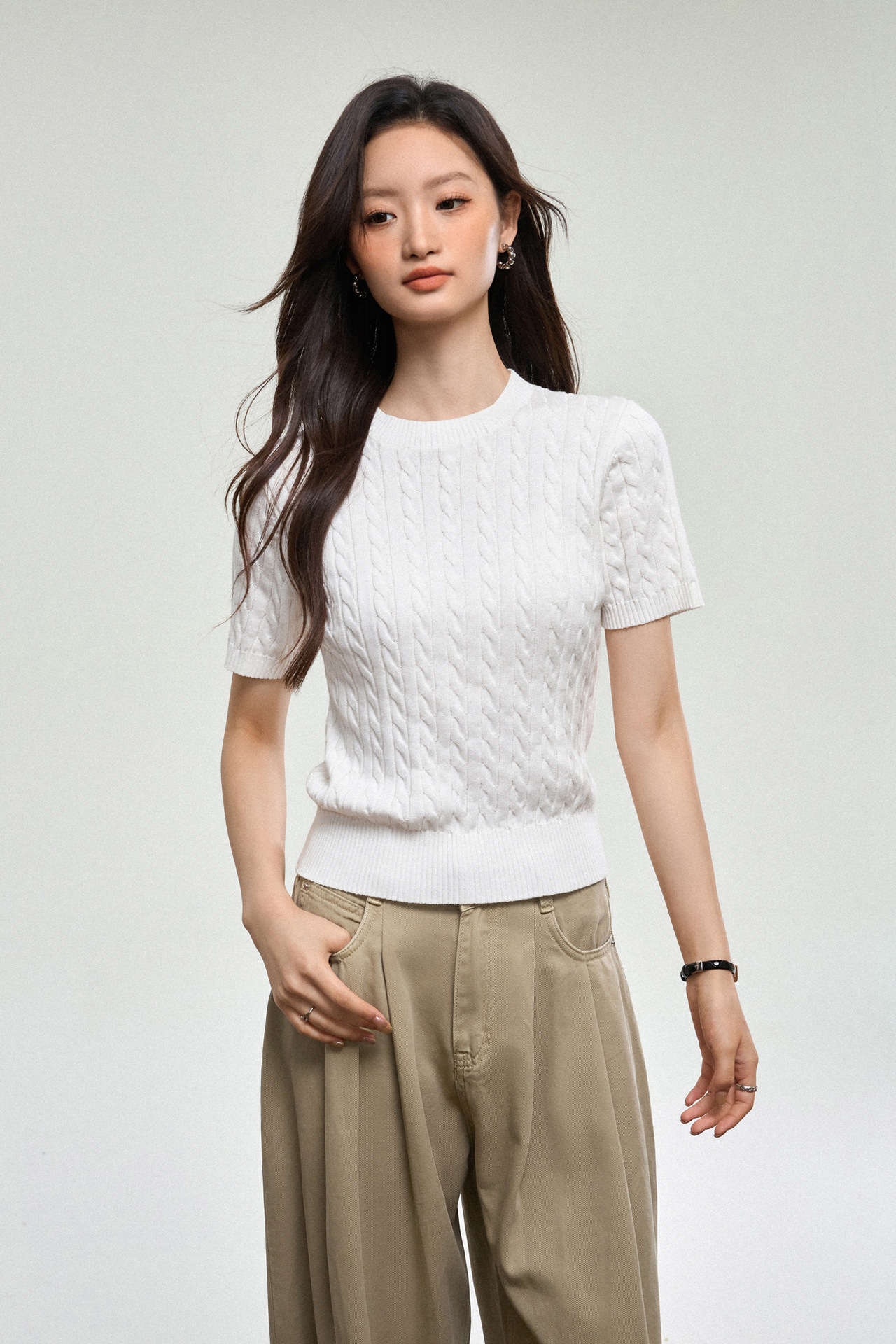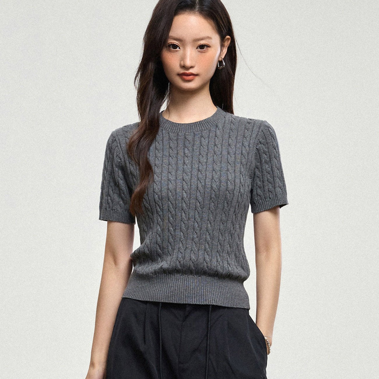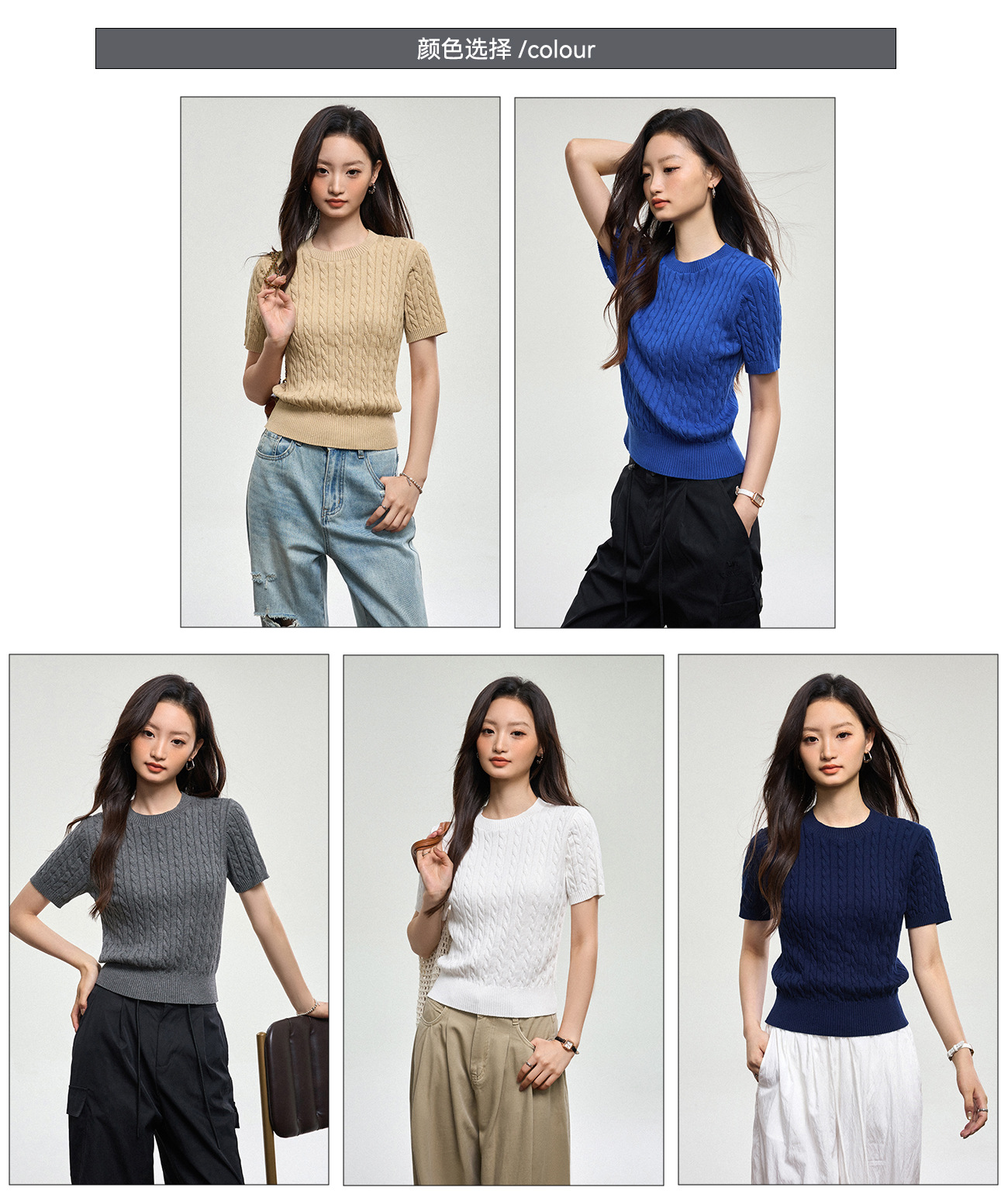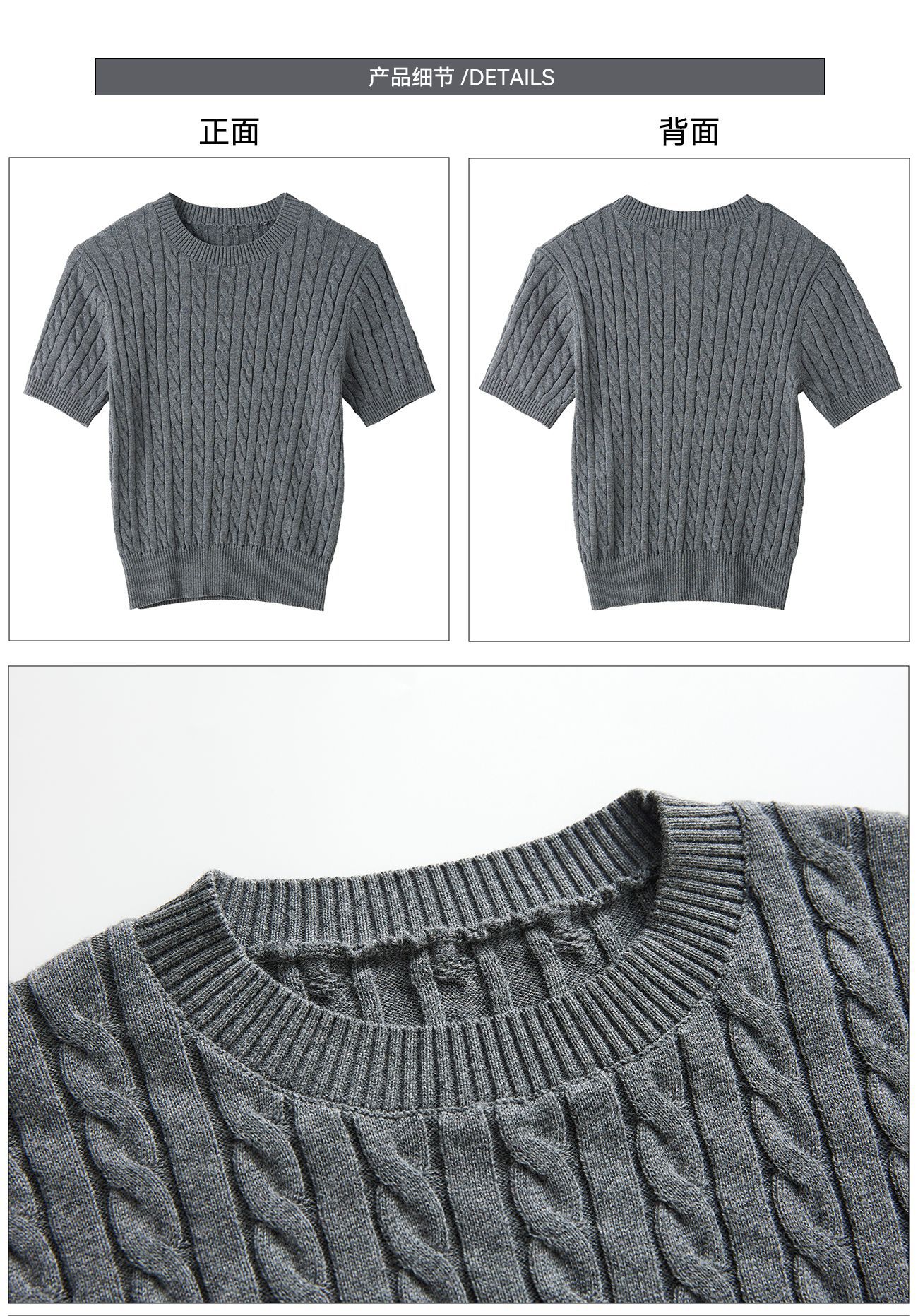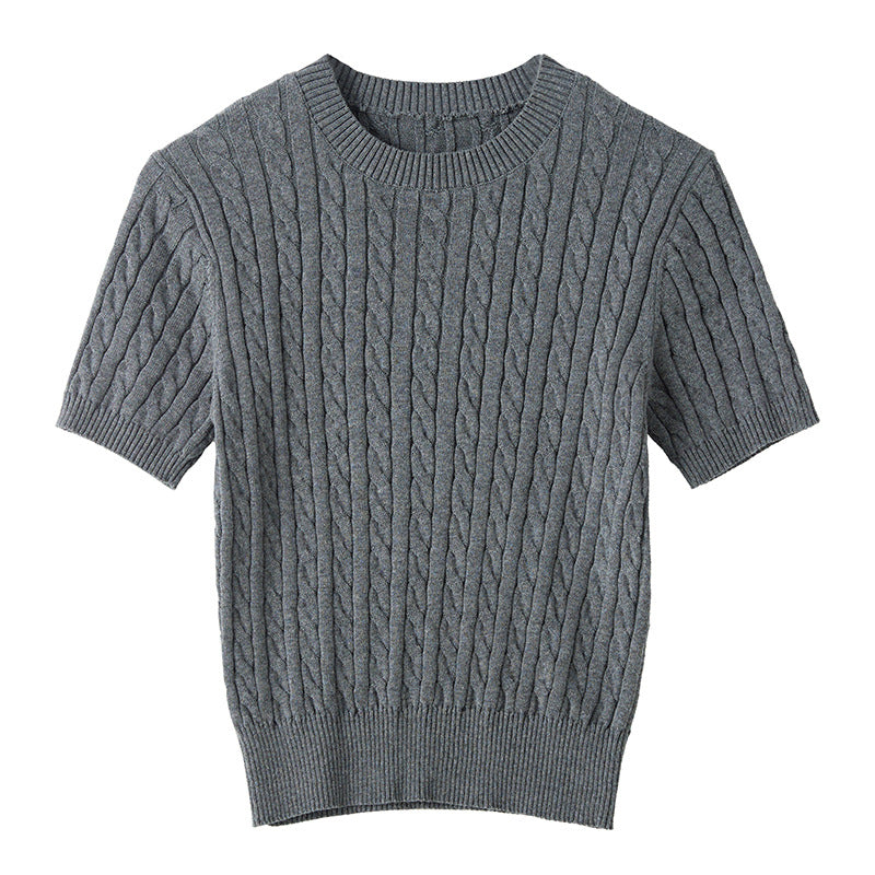 100% cotton knitted sweater women's summer new temperament high-end sense thin twist thin short-sleeved crew neck top thin