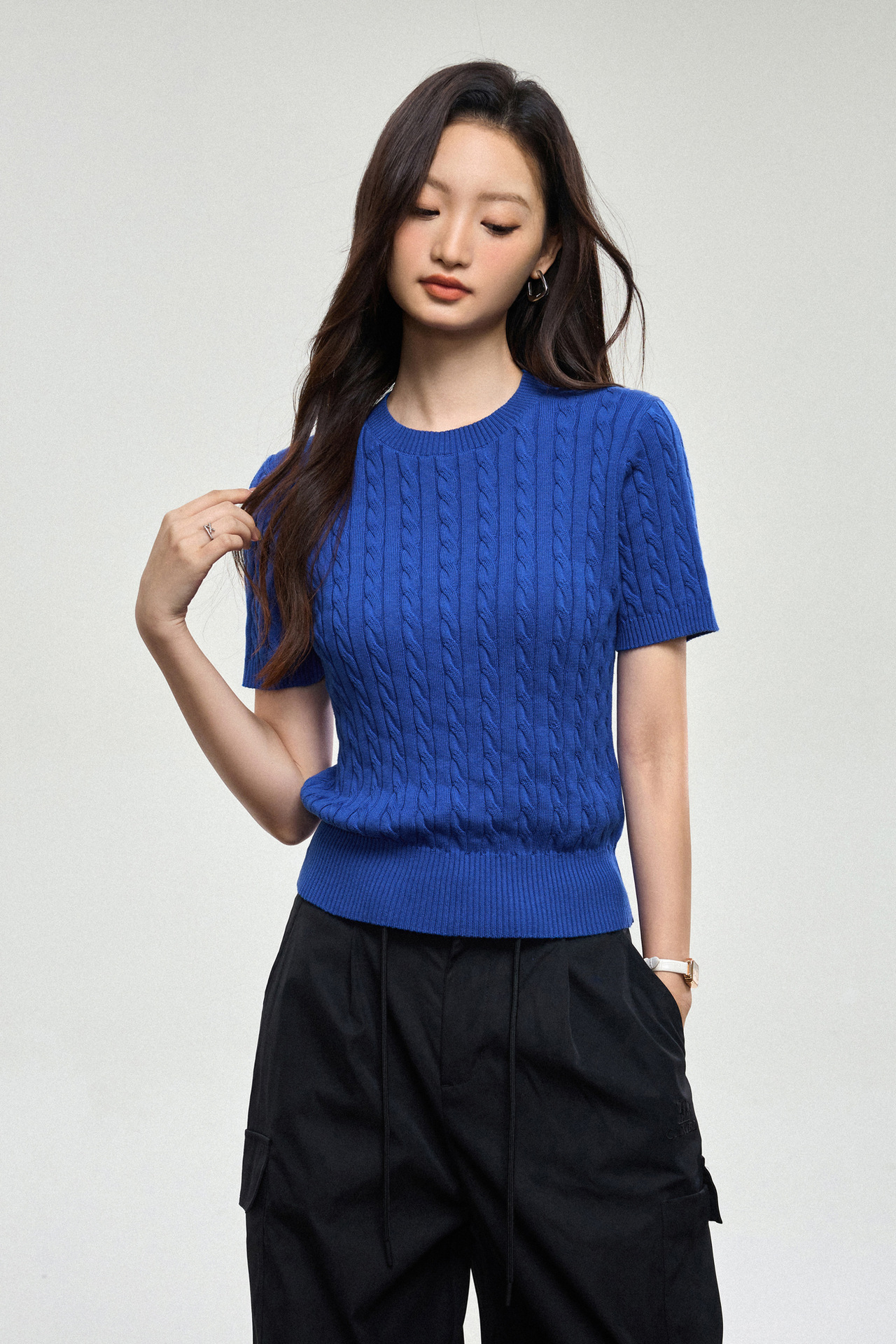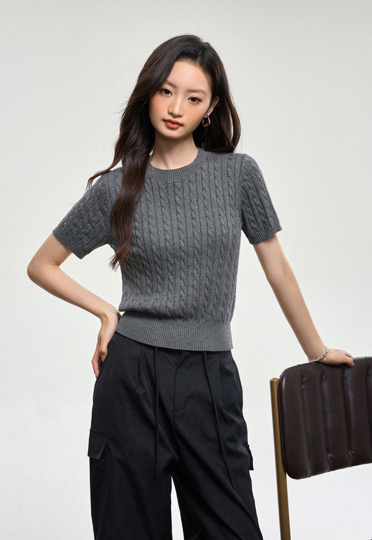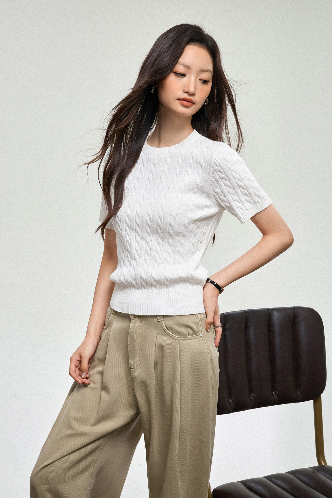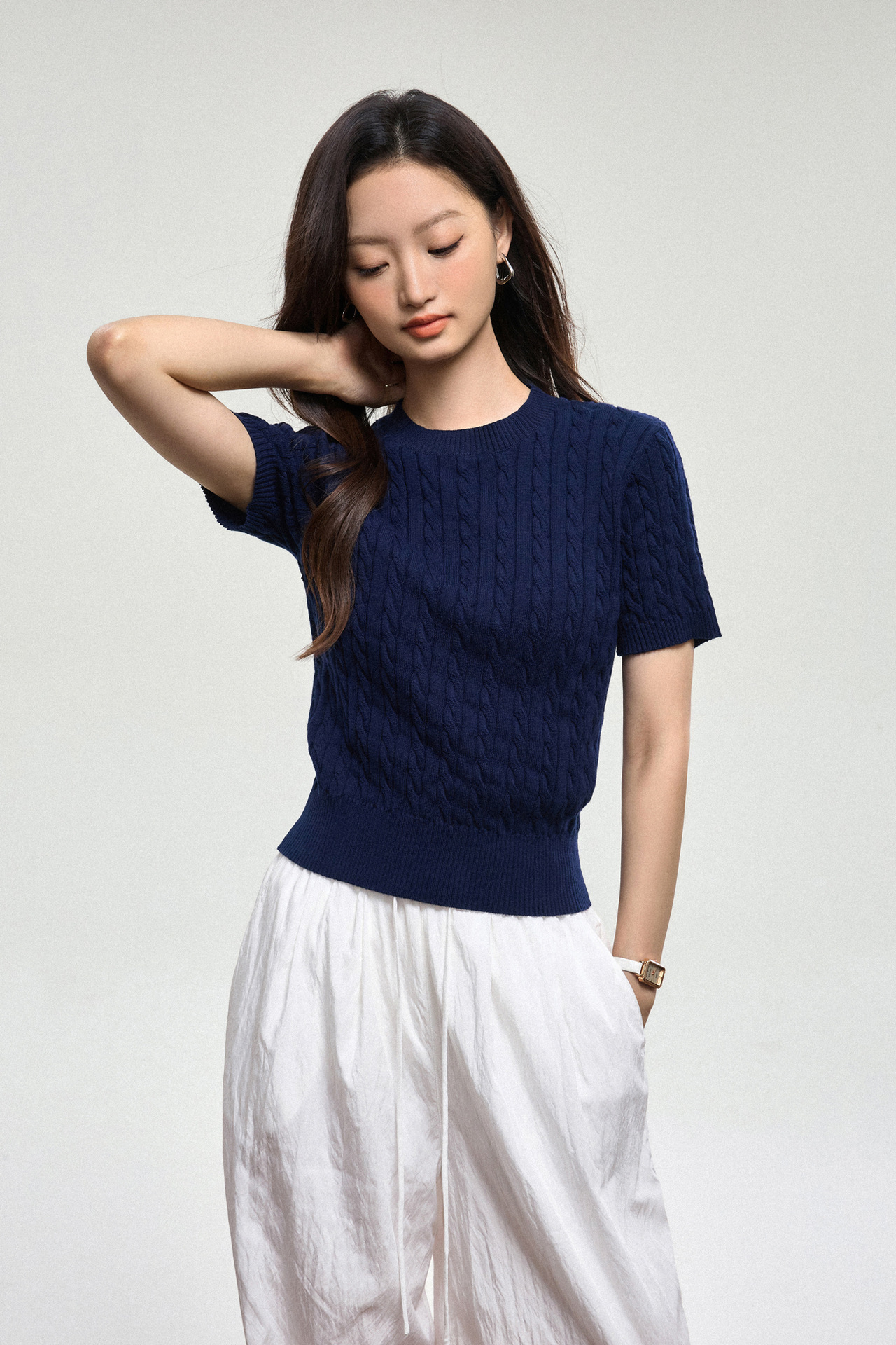 100% cotton knitted sweater women's summer new temperament high-end sense thin twist thin short-sleeved crew neck top thin