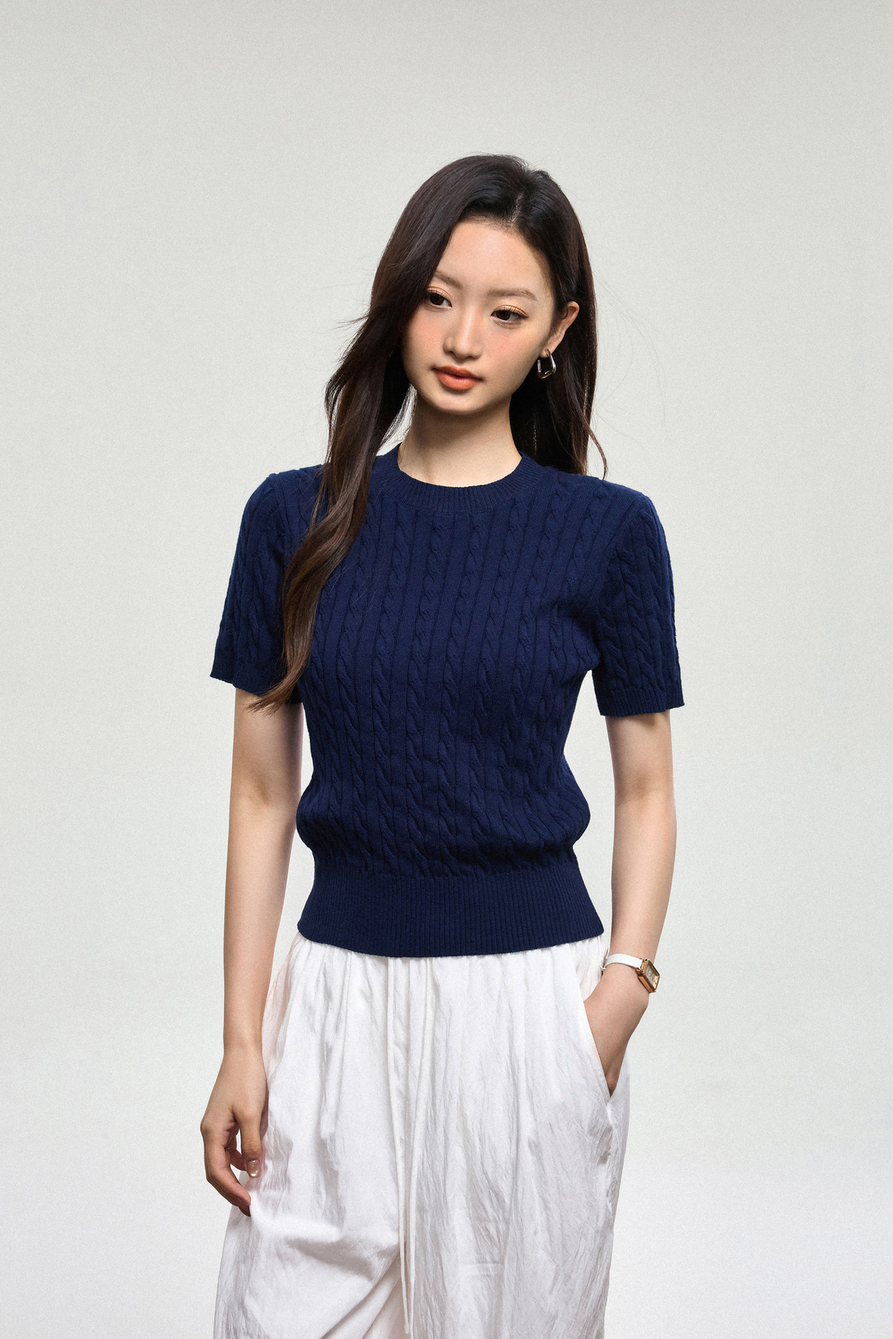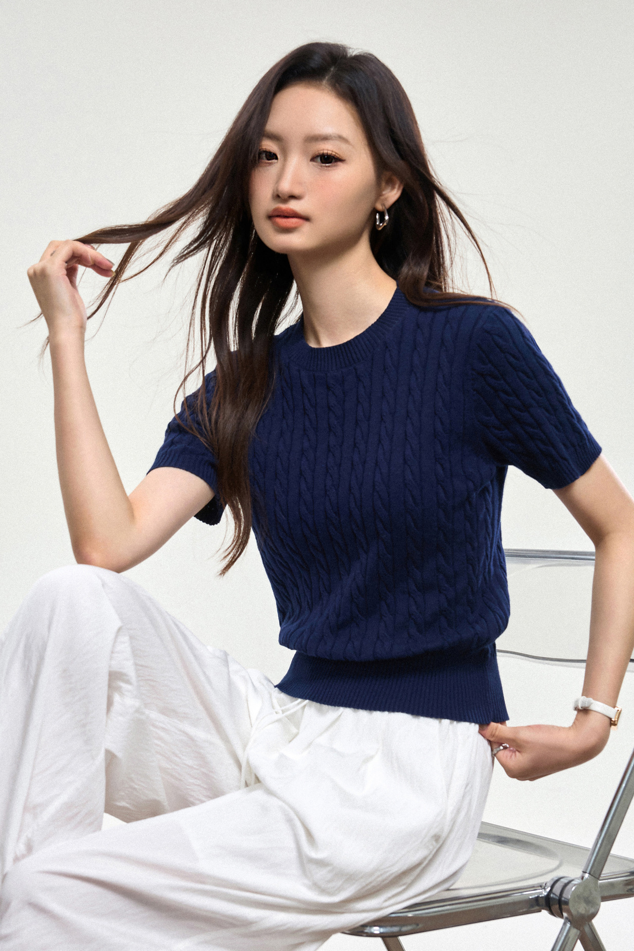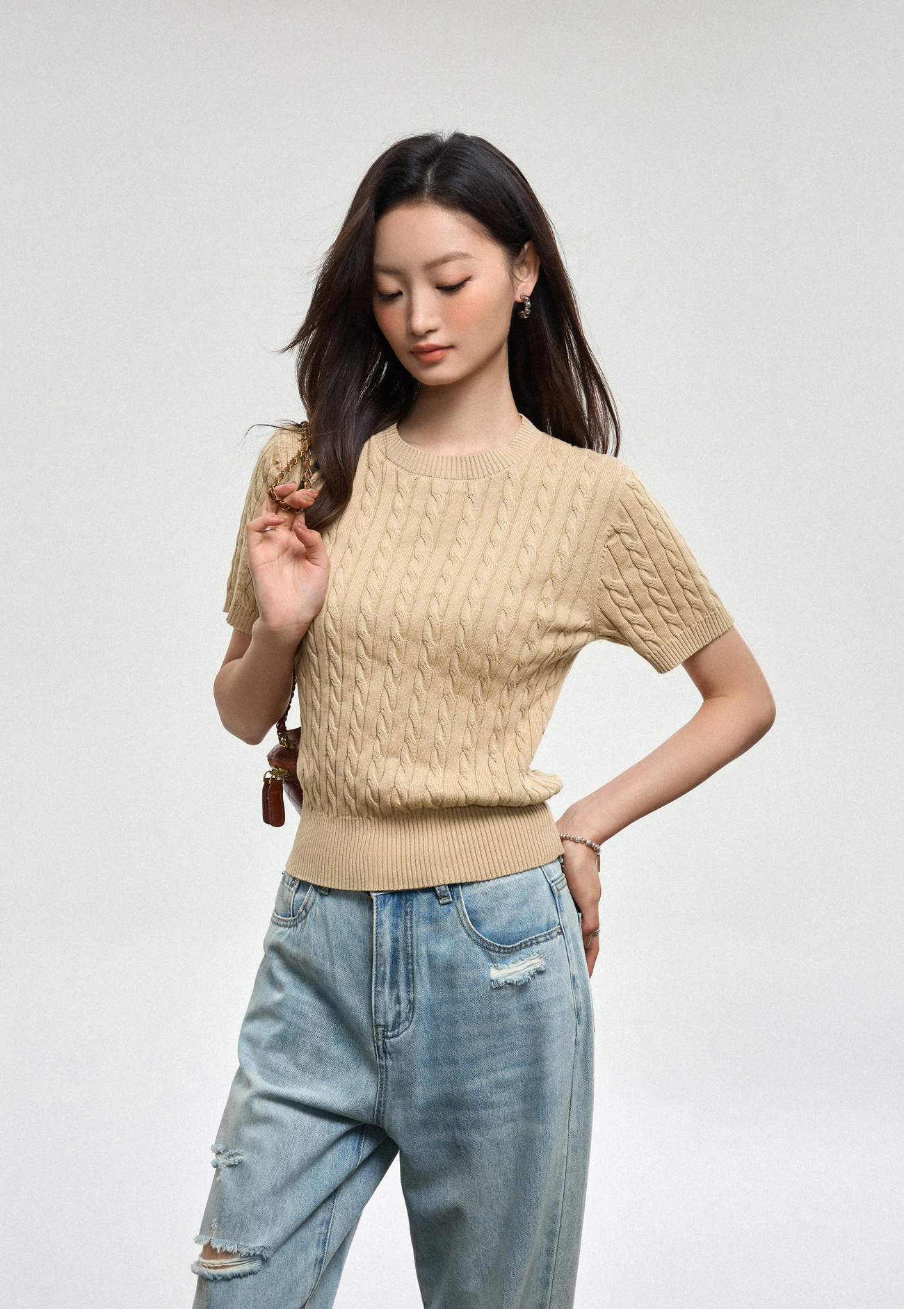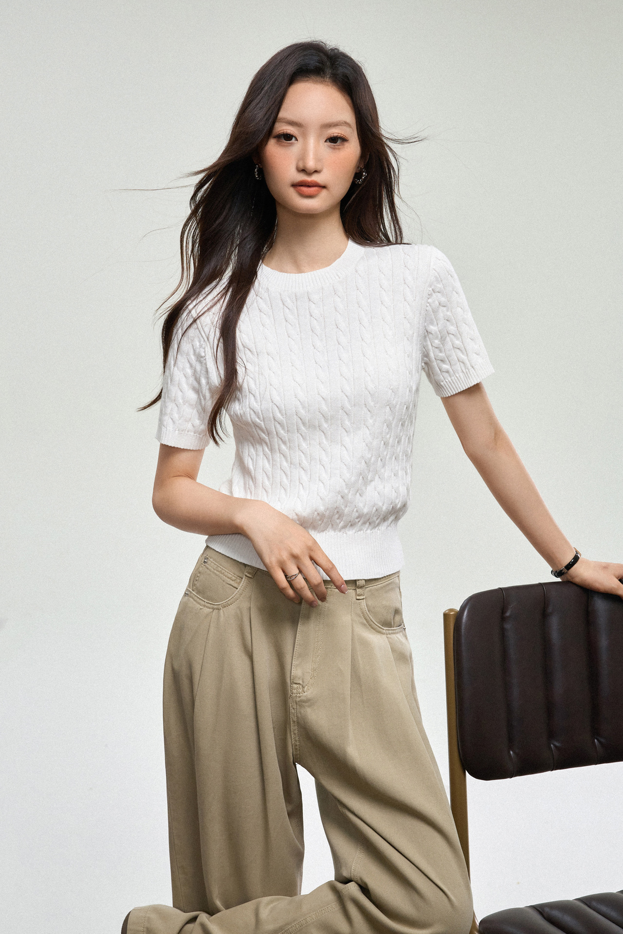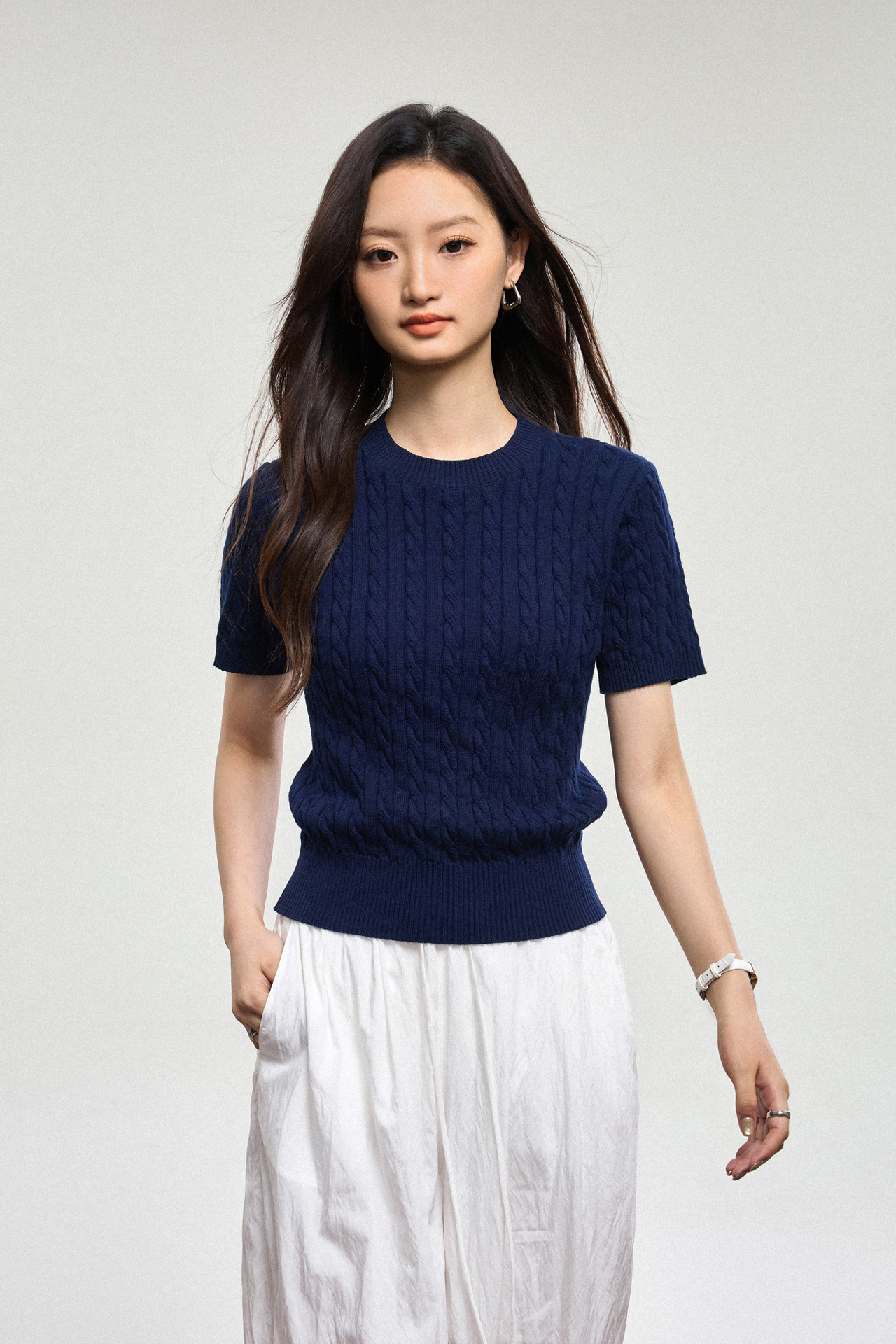 100% cotton knitted sweater women's summer new temperament high-end sense thin twist thin short-sleeved crew neck top thin