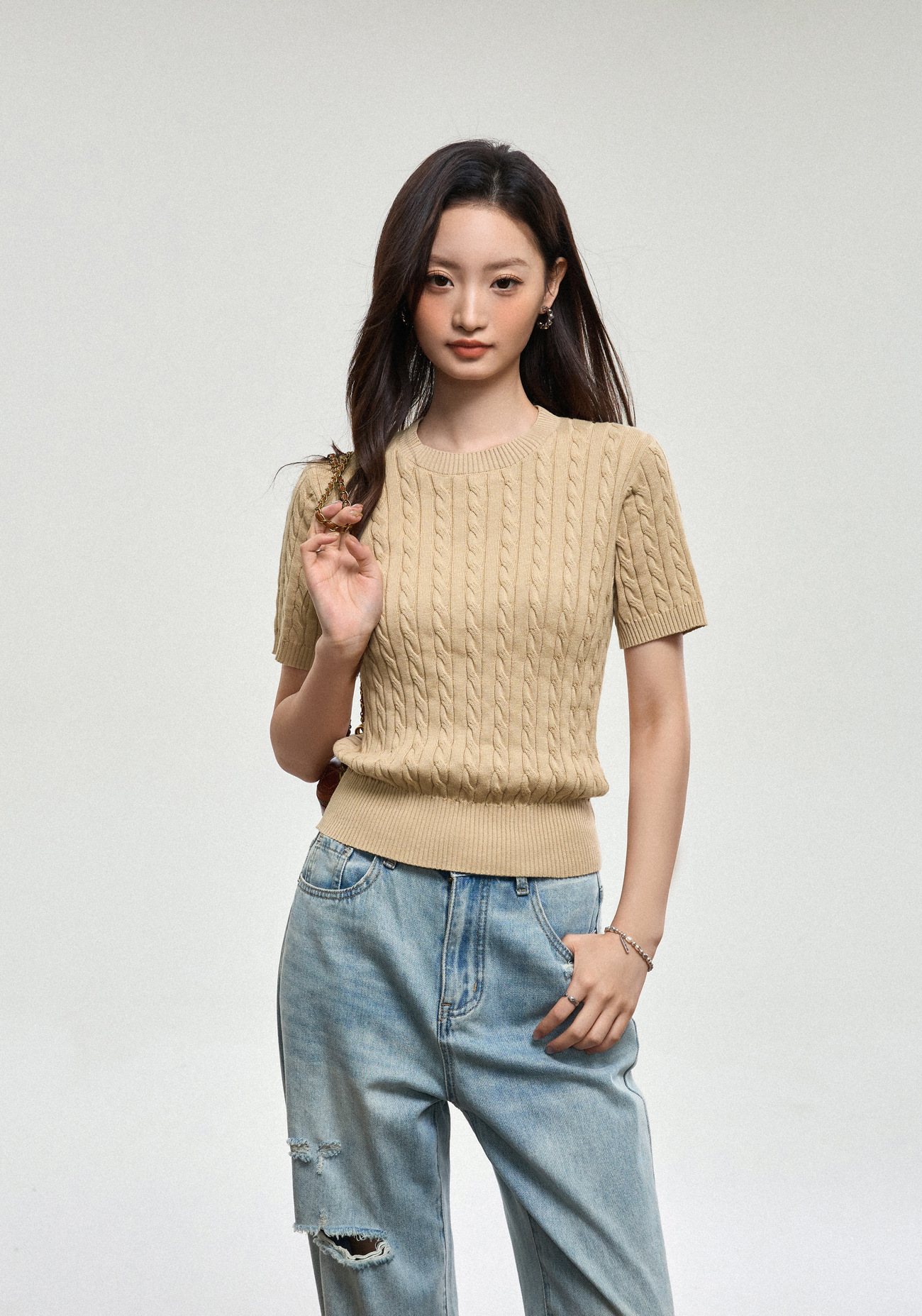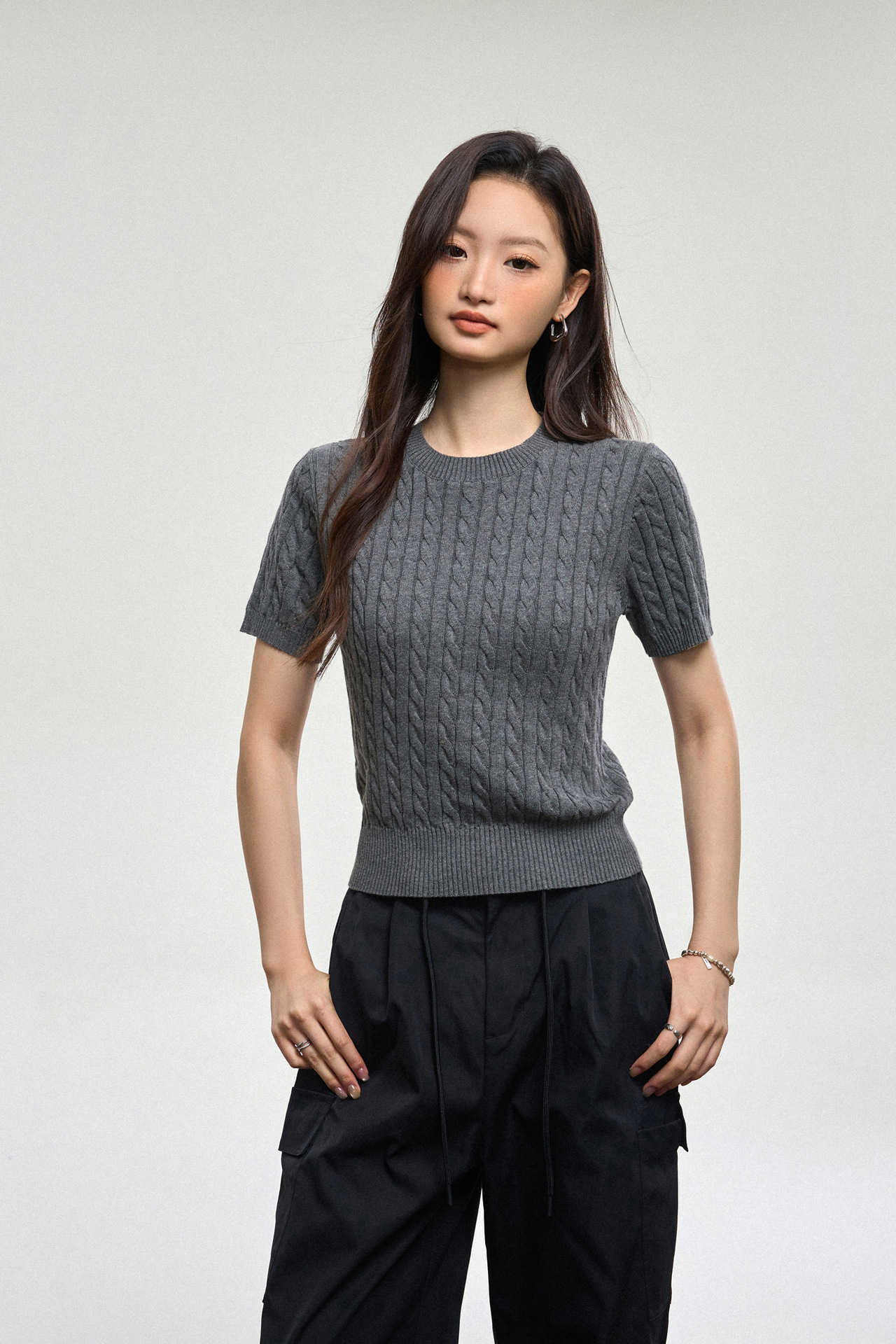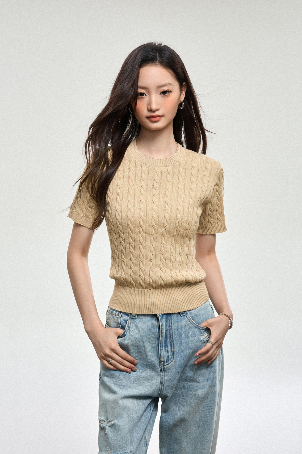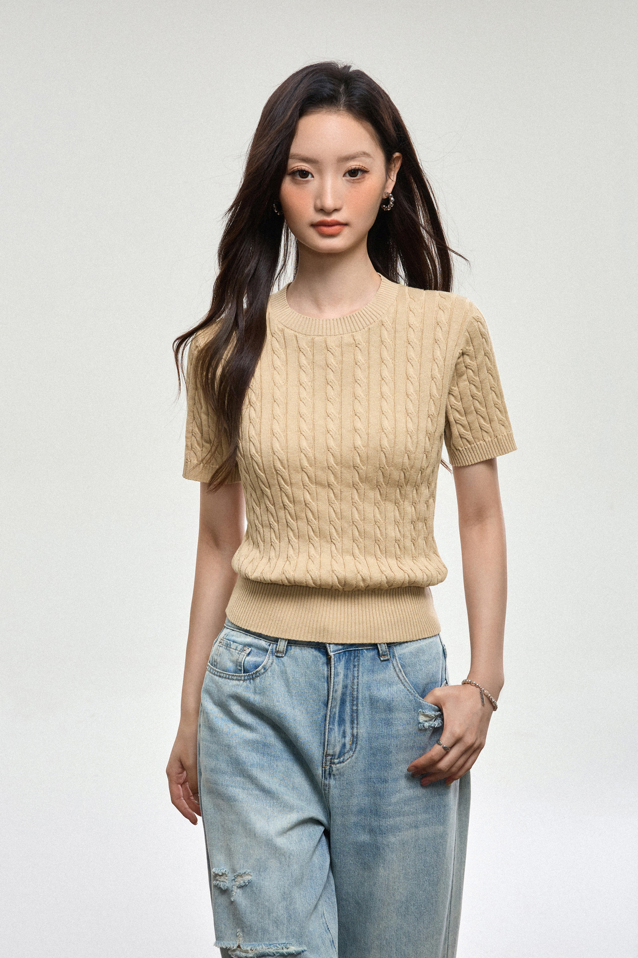 100% cotton knitted sweater women's summer new temperament high-end sense thin twist thin short-sleeved crew neck top thin