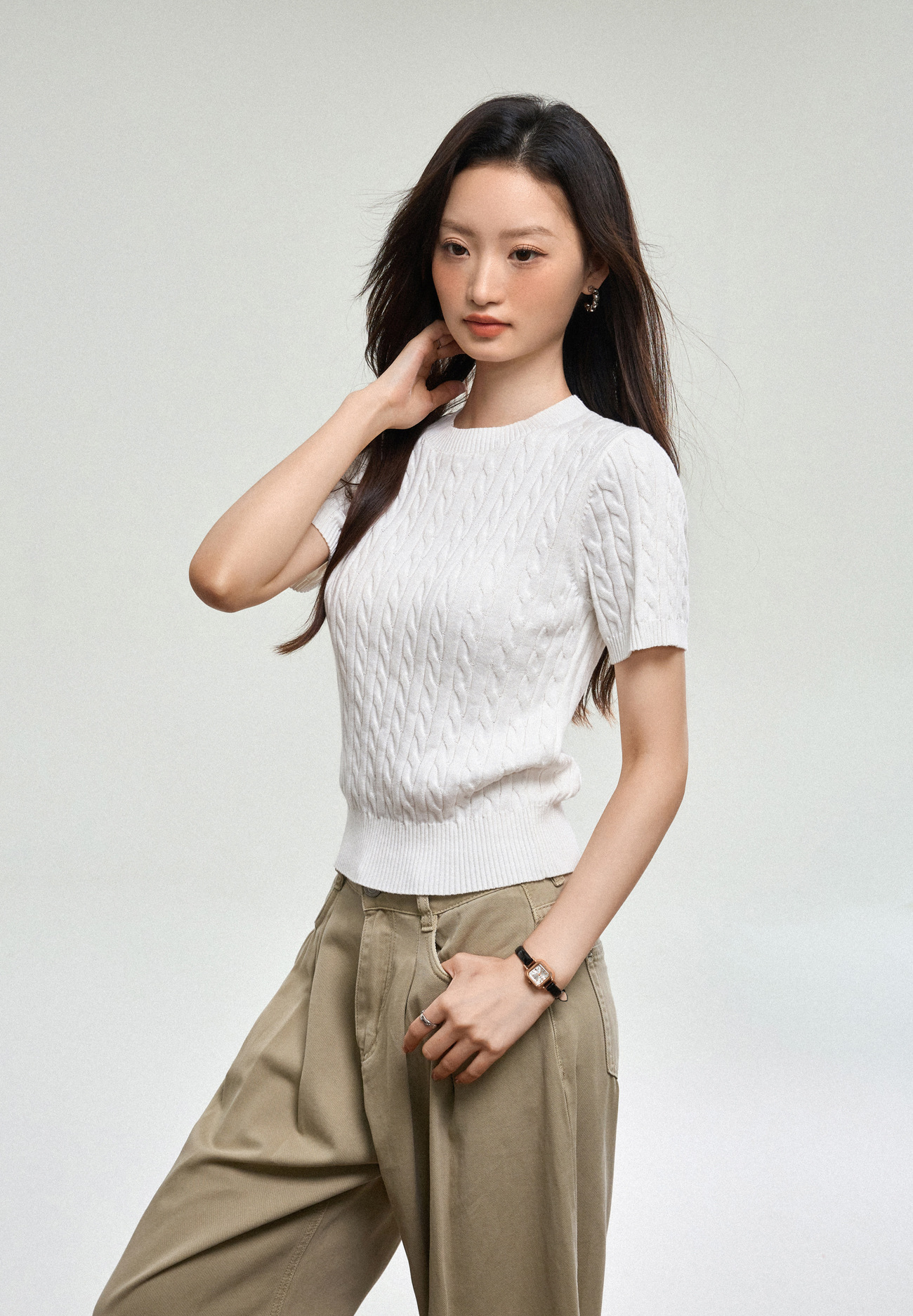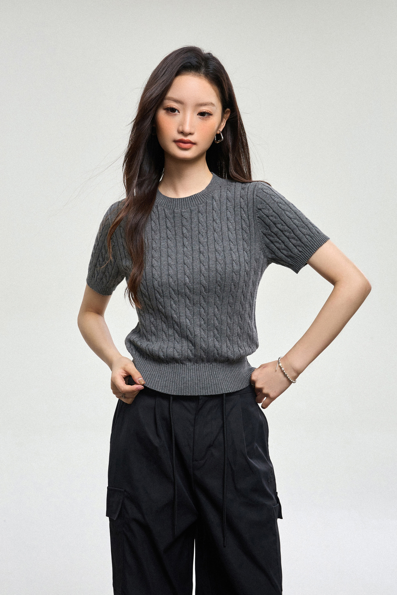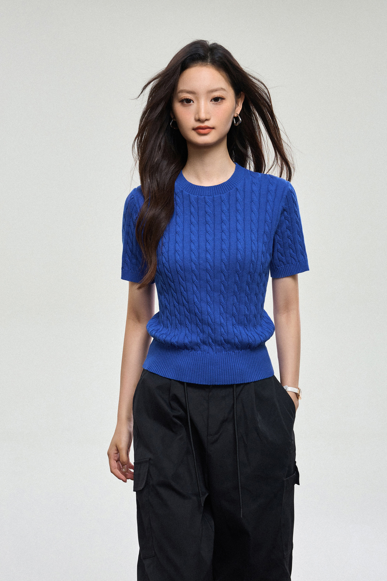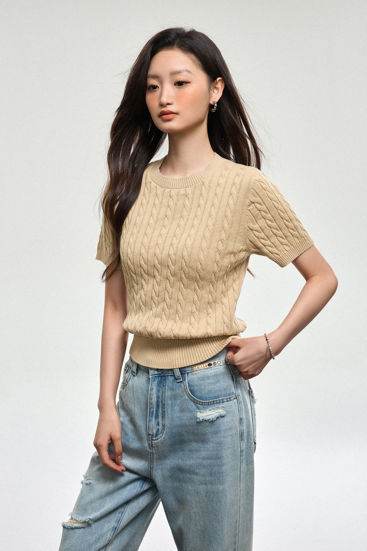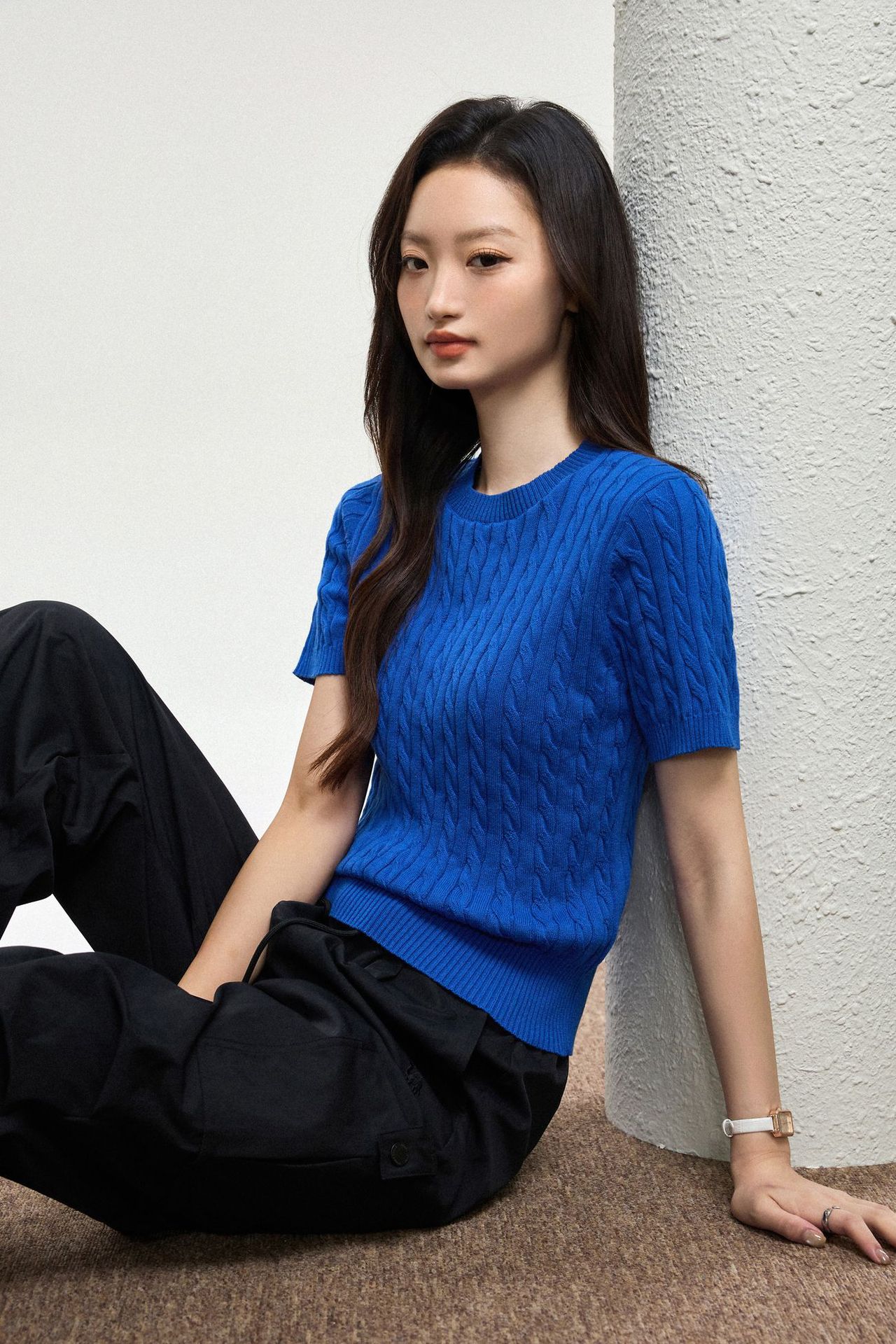 100% cotton knitted sweater women's summer new temperament high-end sense thin twist thin short-sleeved crew neck top thin