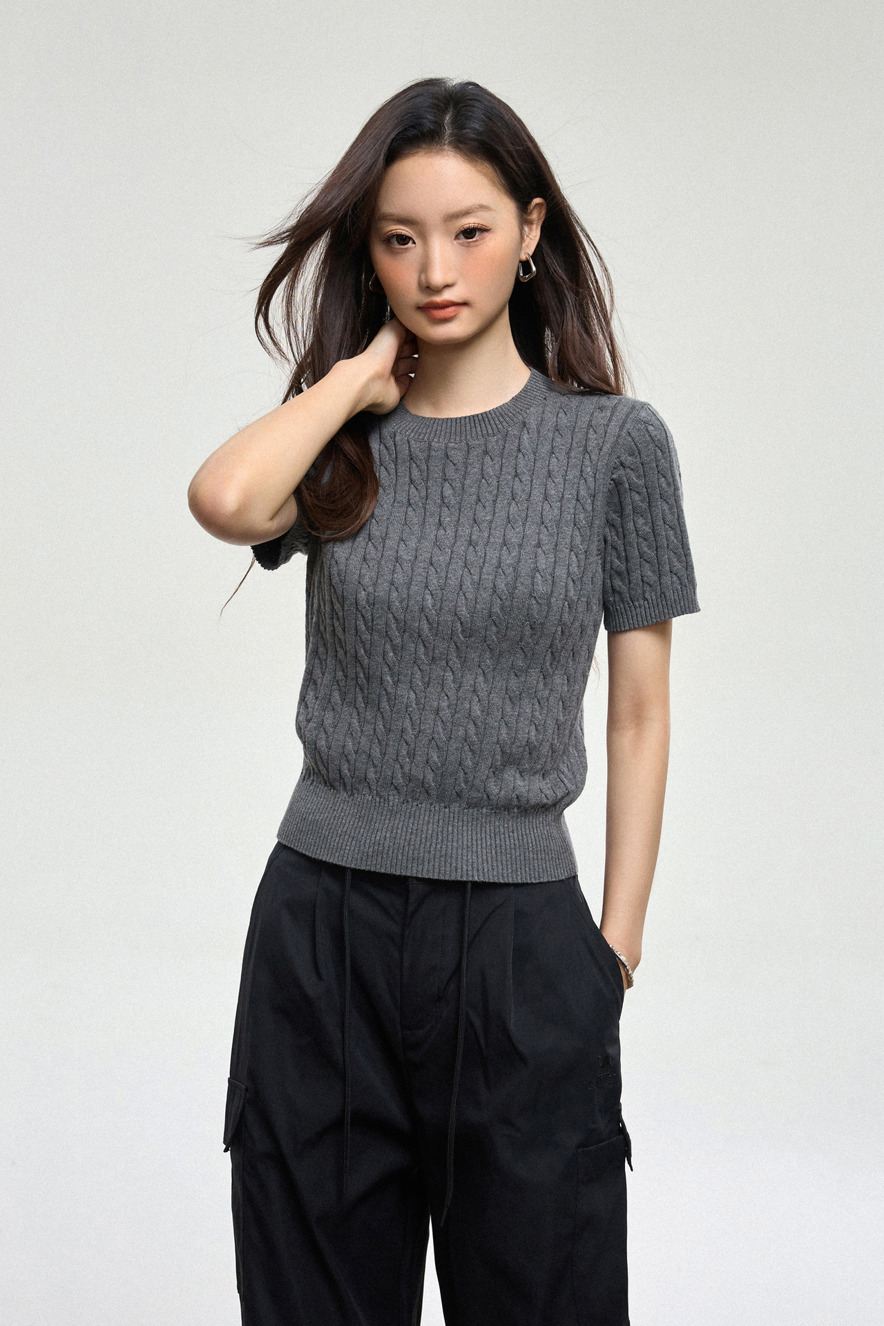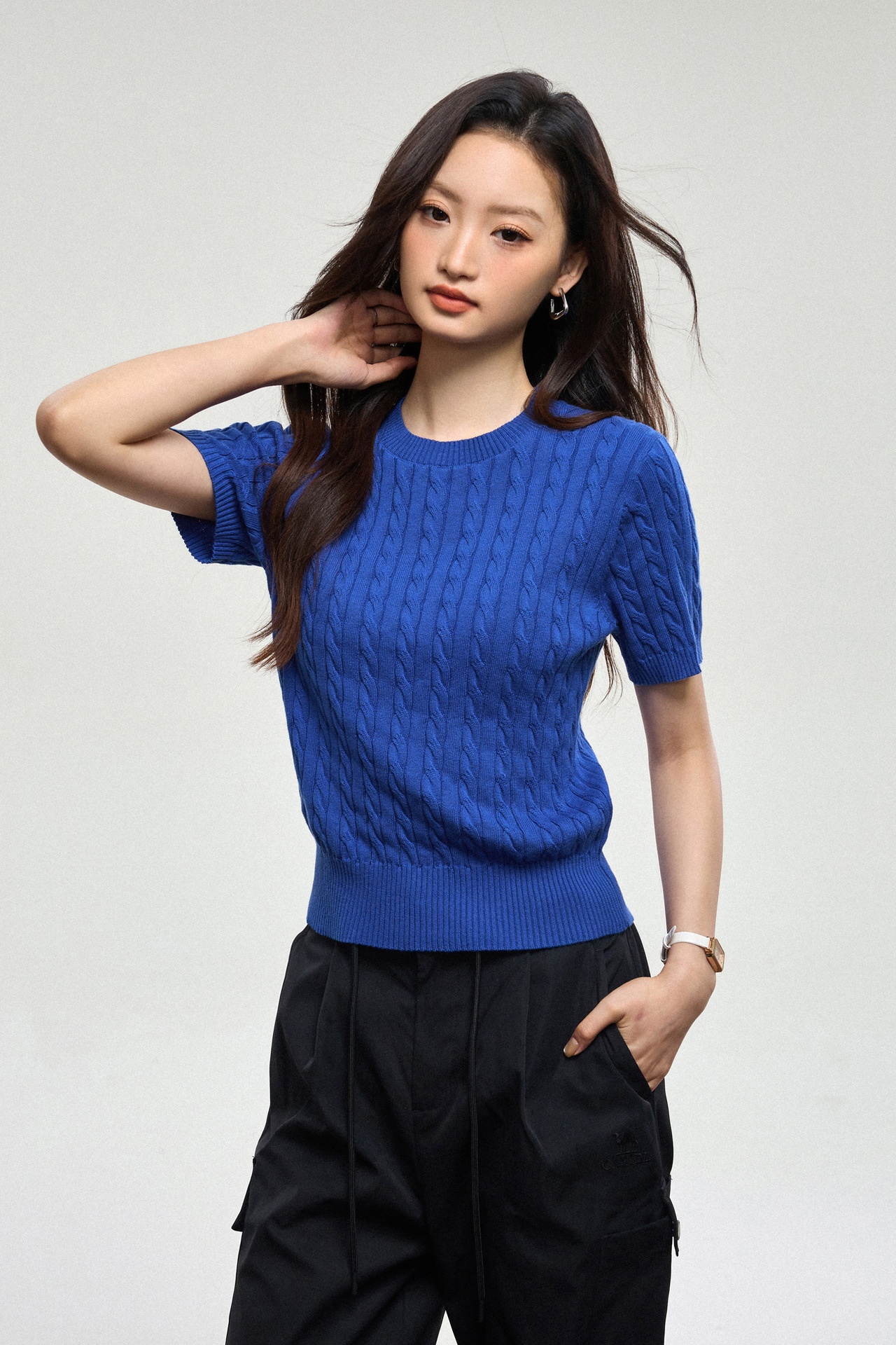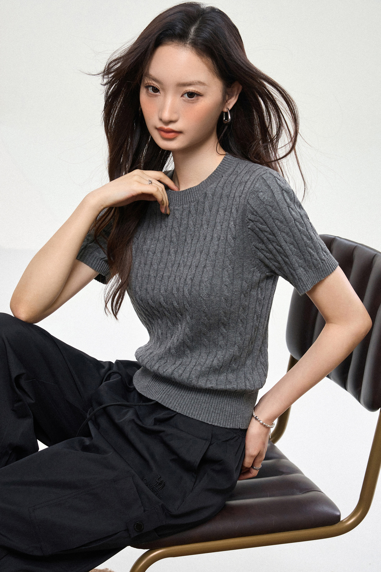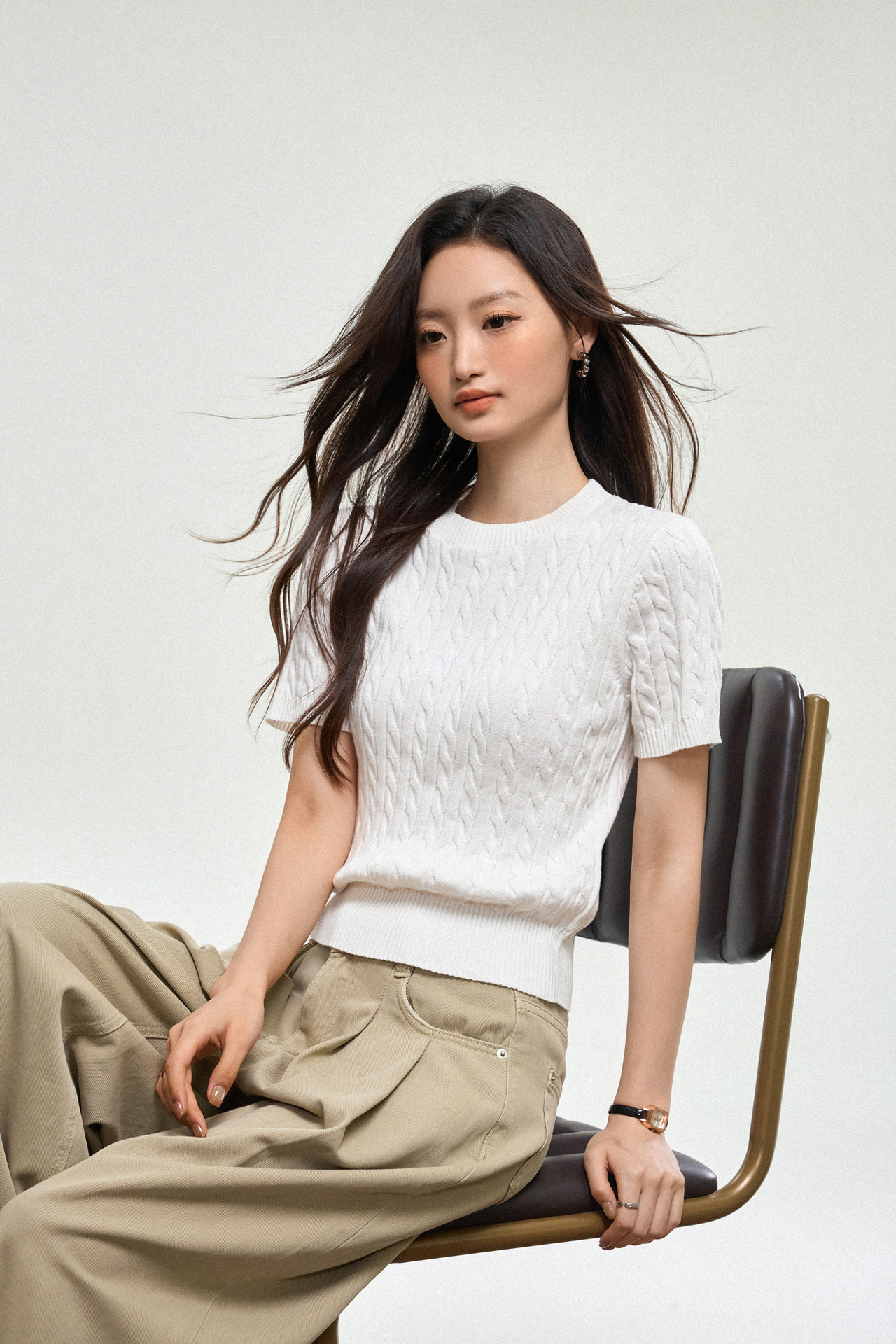 100% cotton knitted sweater women's summer new temperament high-end sense thin twist thin short-sleeved crew neck top thin
