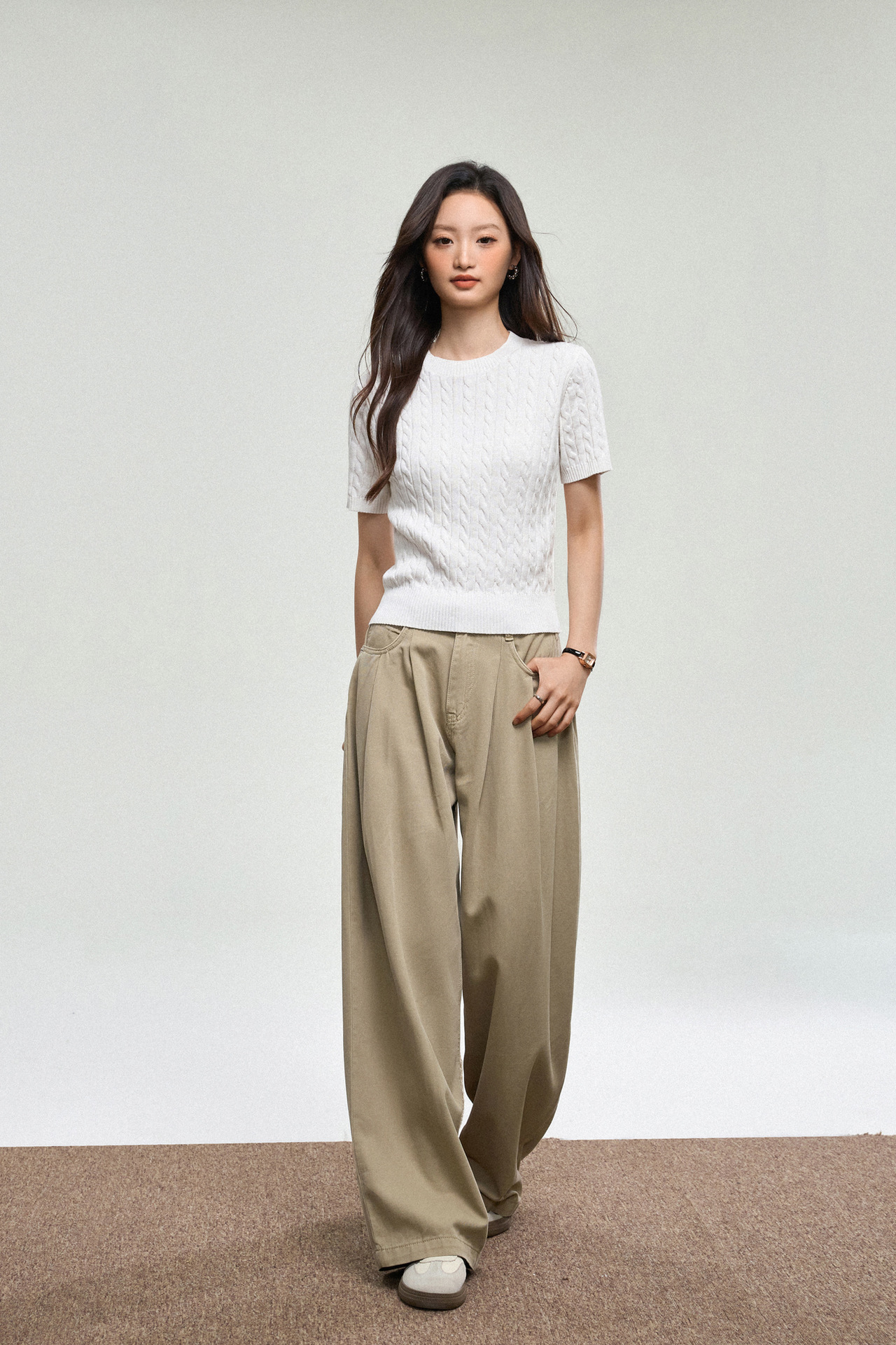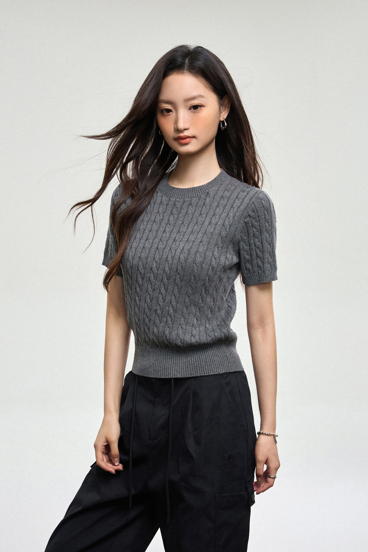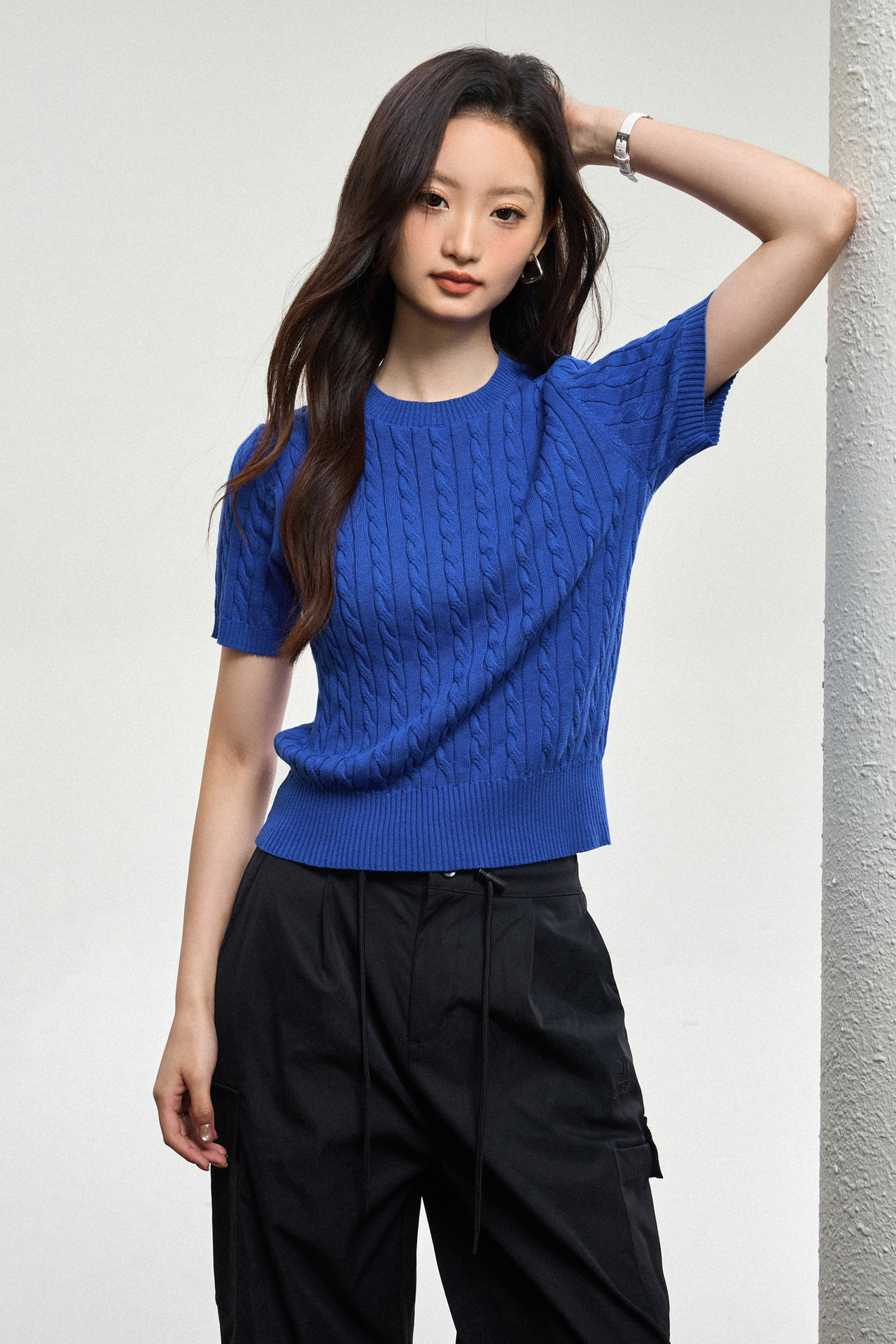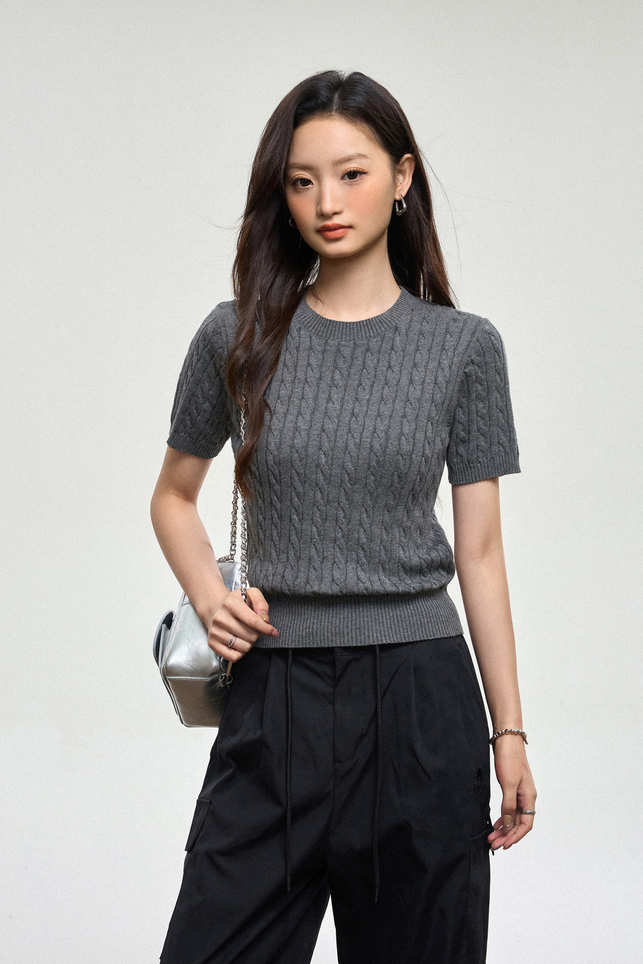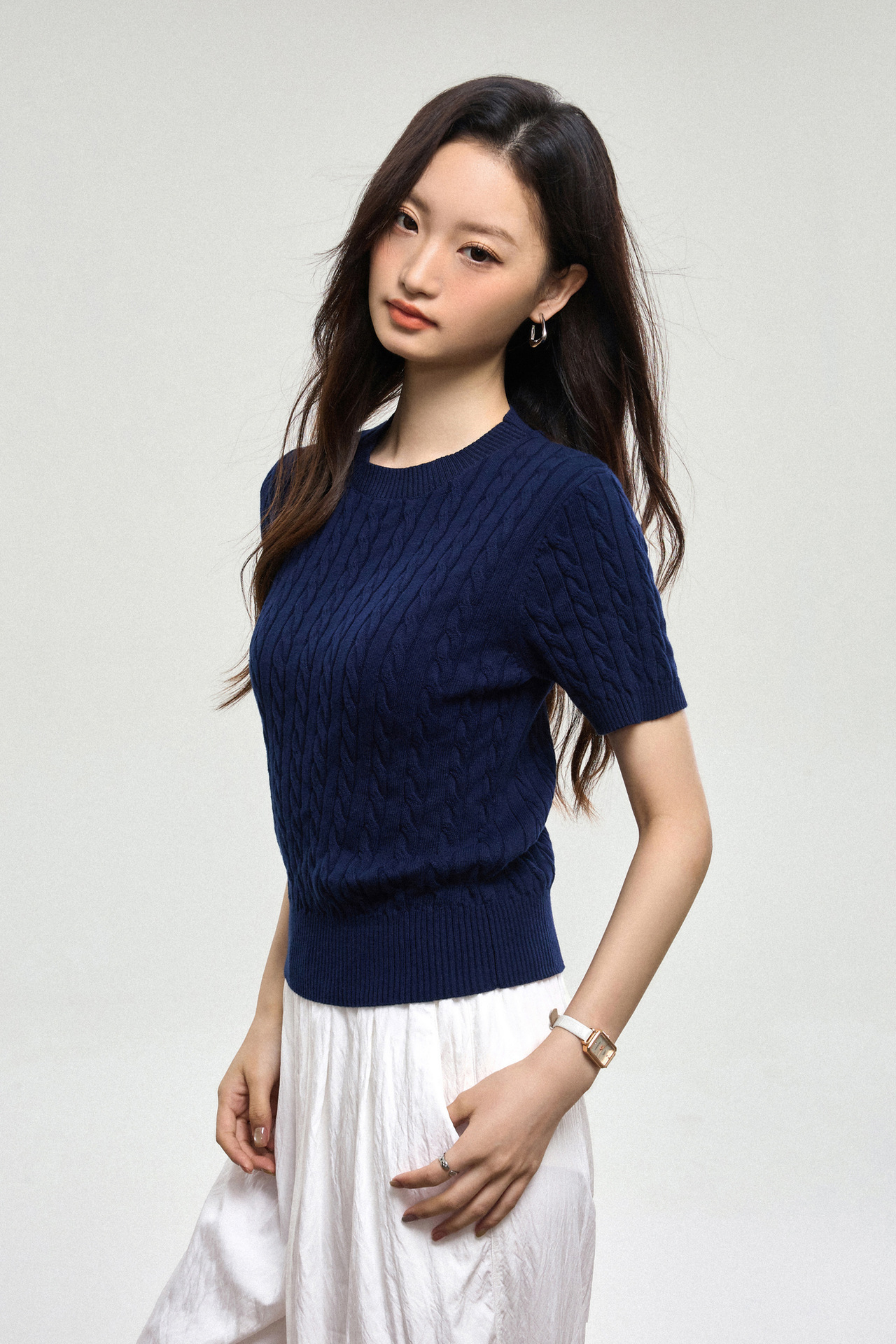 100% cotton knitted sweater women's summer new temperament high-end sense thin twist thin short-sleeved crew neck top thin