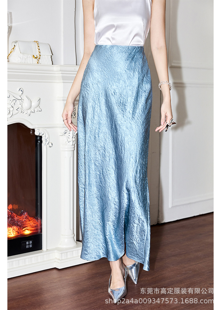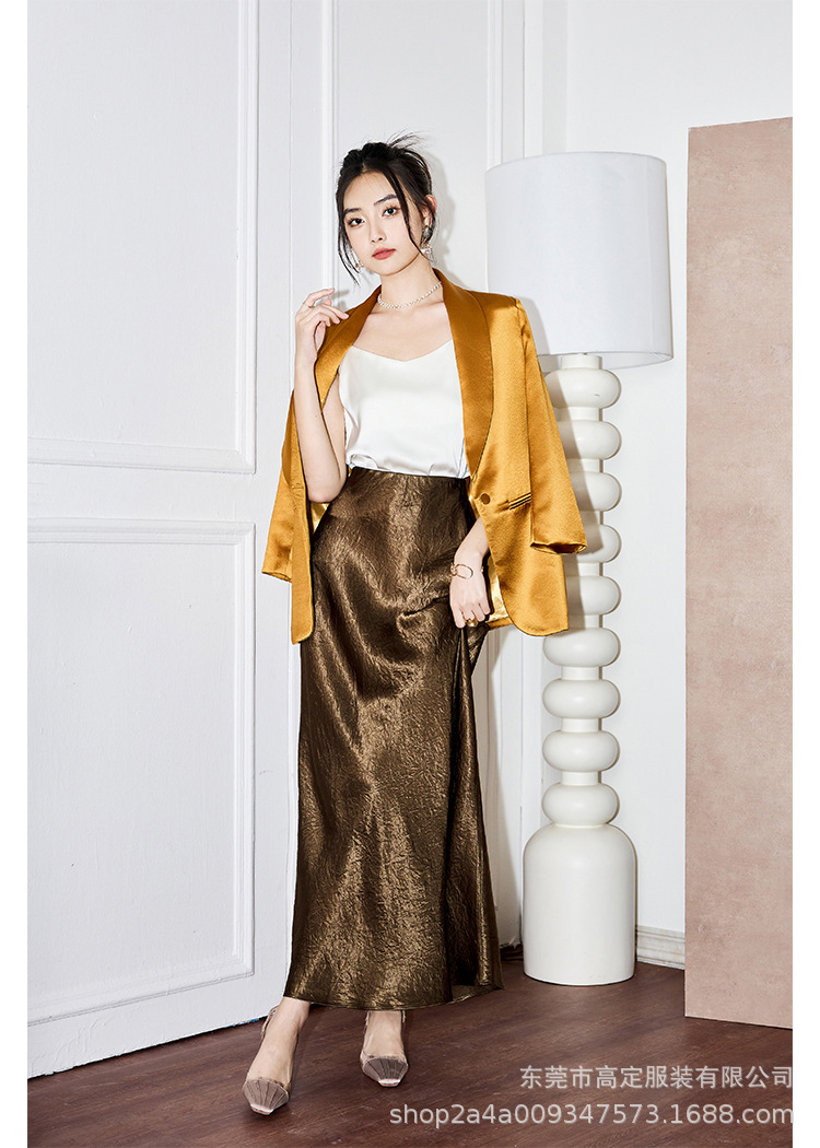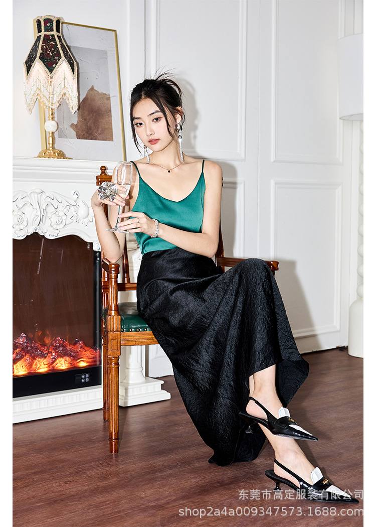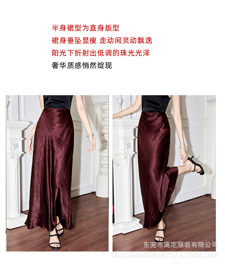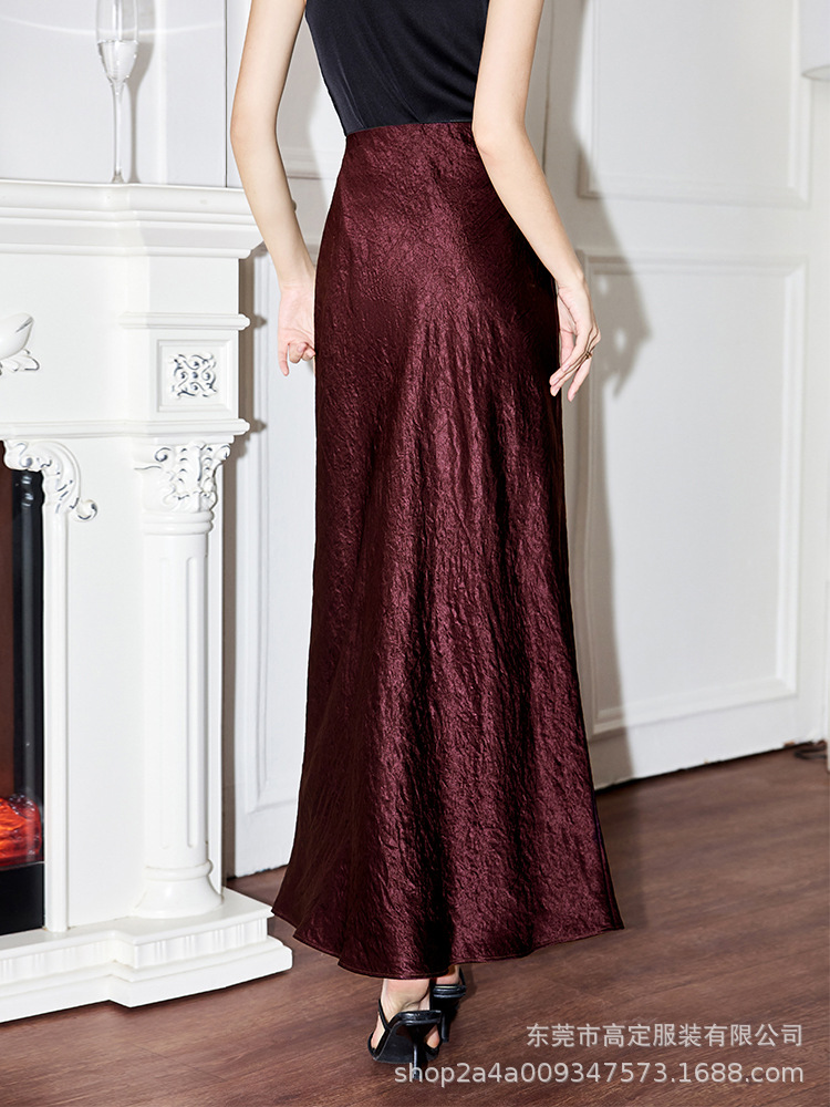 100 full acetic acid dark pattern high-end black skirt, spring and summer women's satin drape dress, thin new Chinese haute couture