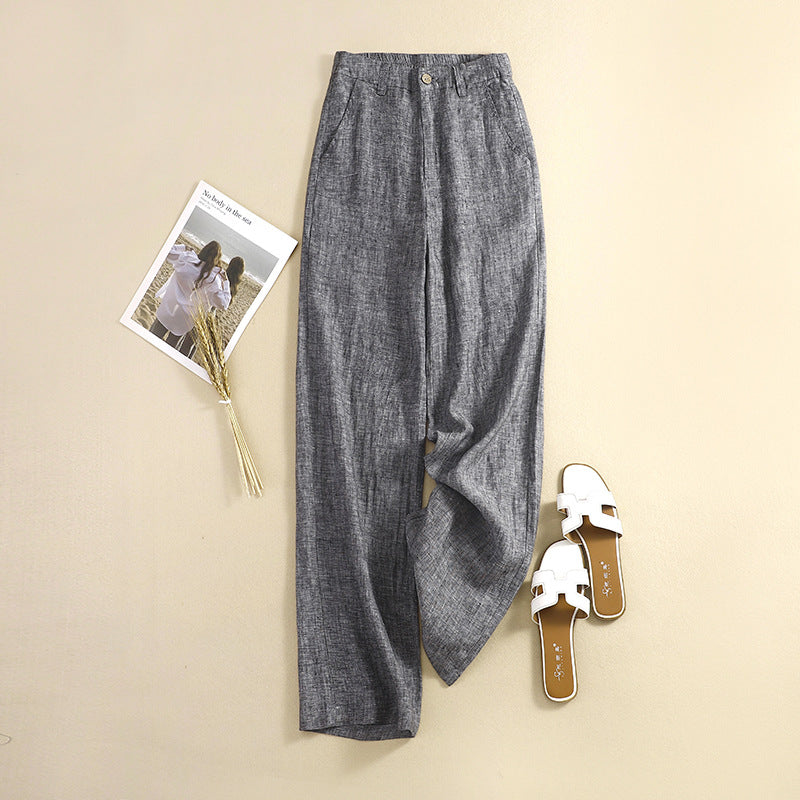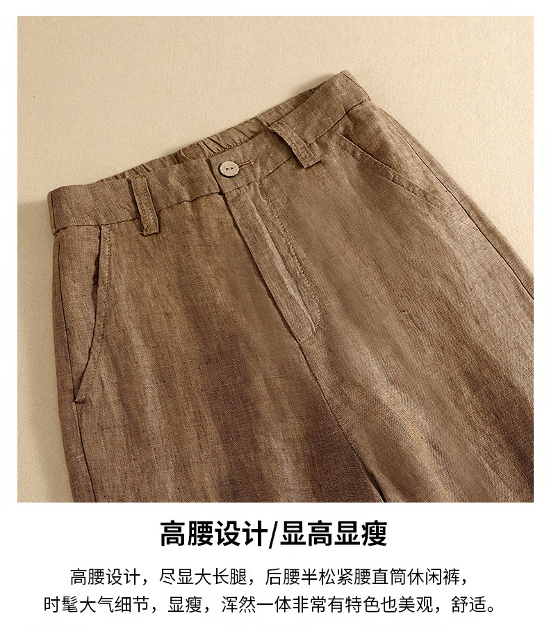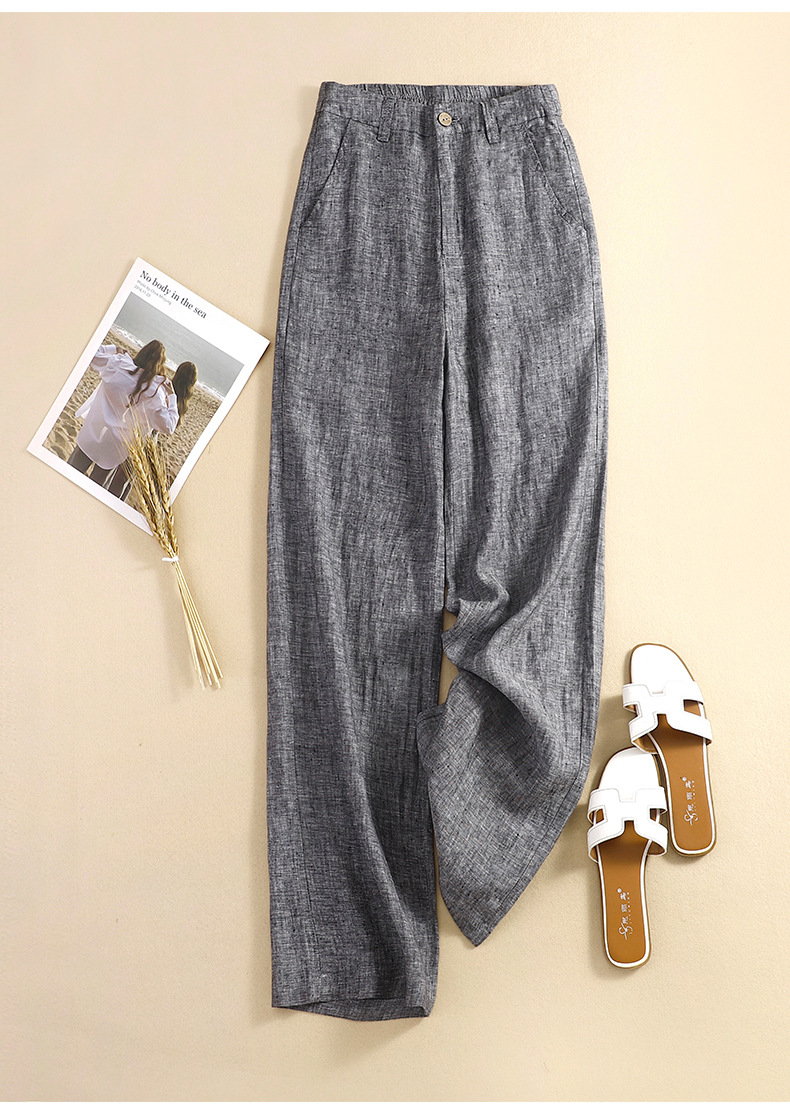 1273 #real shot in the spring of 2024, the new cotton and linen high waist drape literary and loose and thin straight trousers women