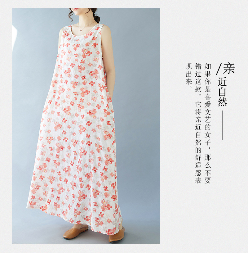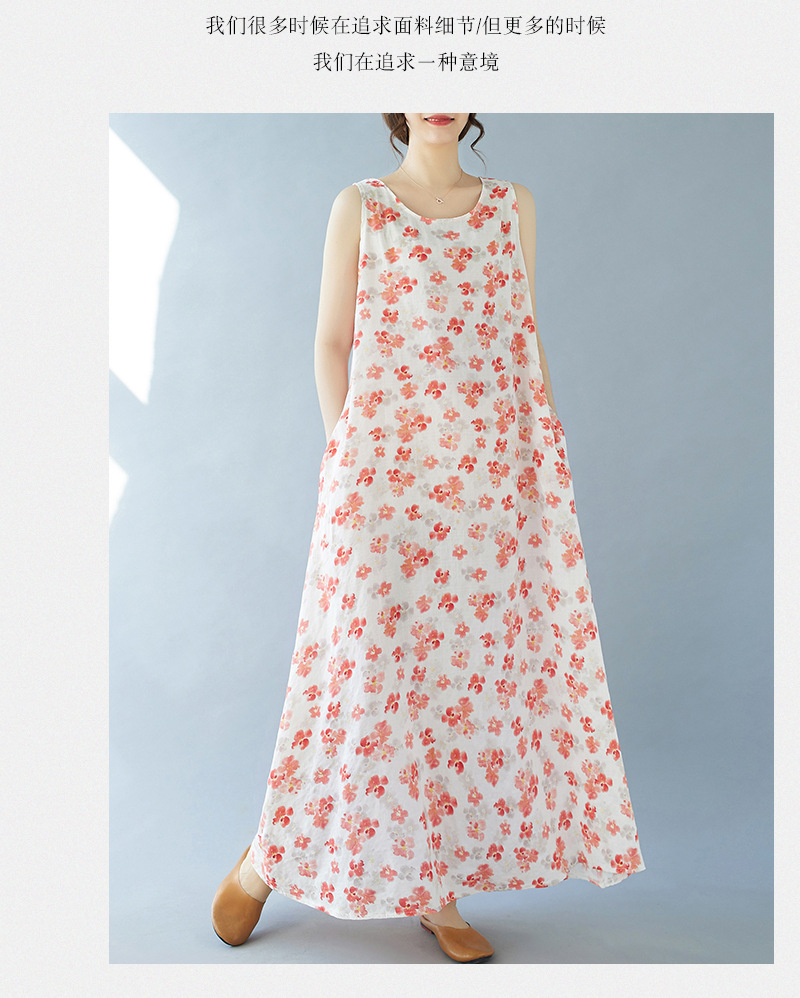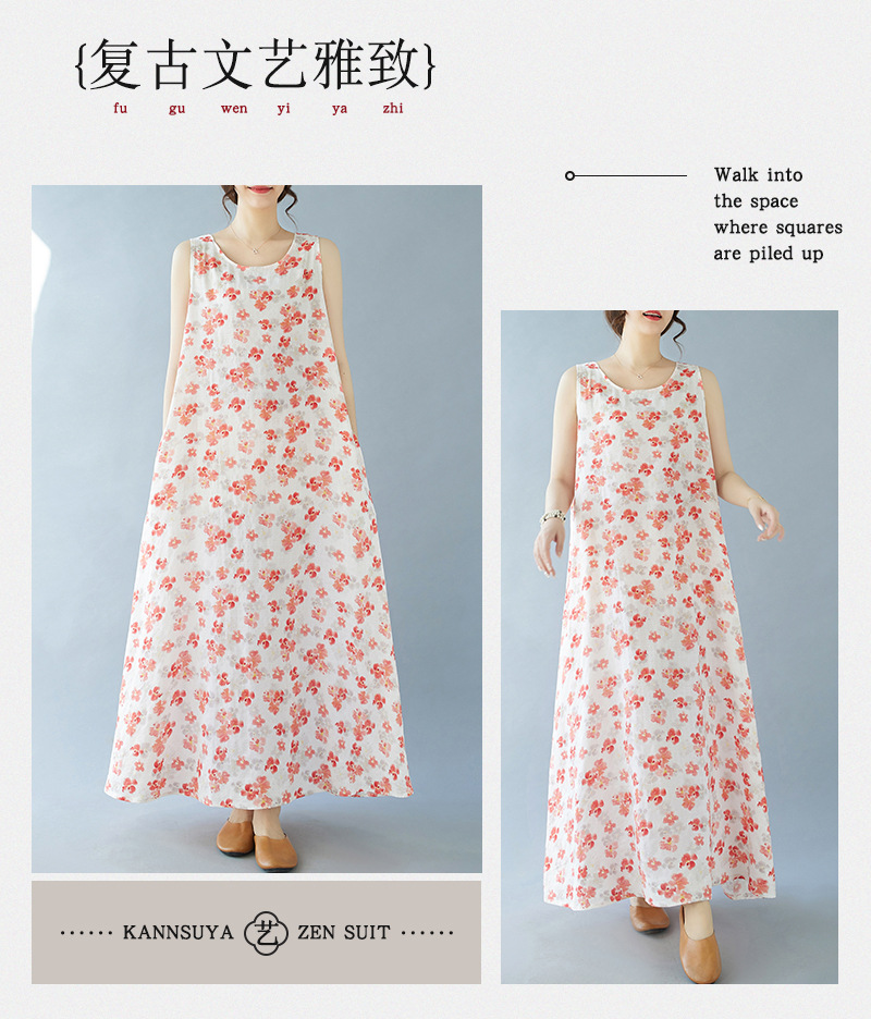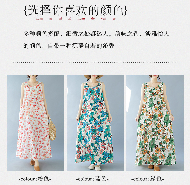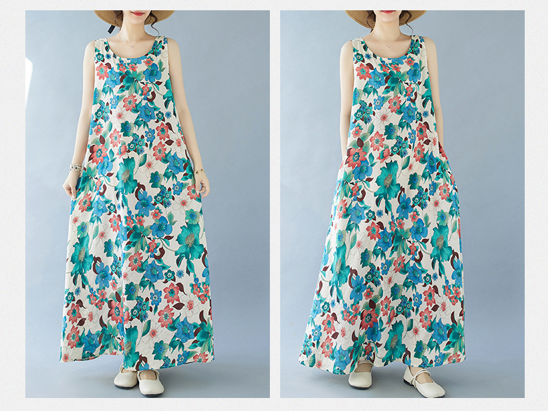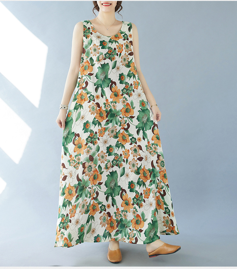 2024 real shot summer new bohemian fattened plus sleeveless crew neck printed medium and long dress women