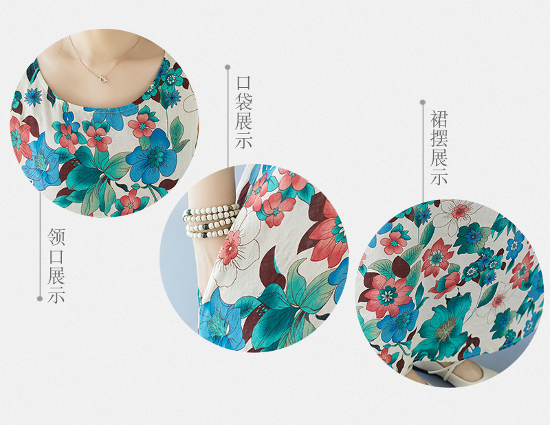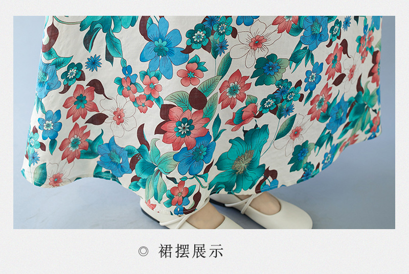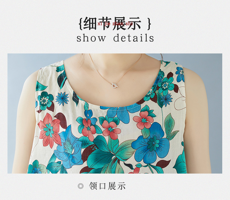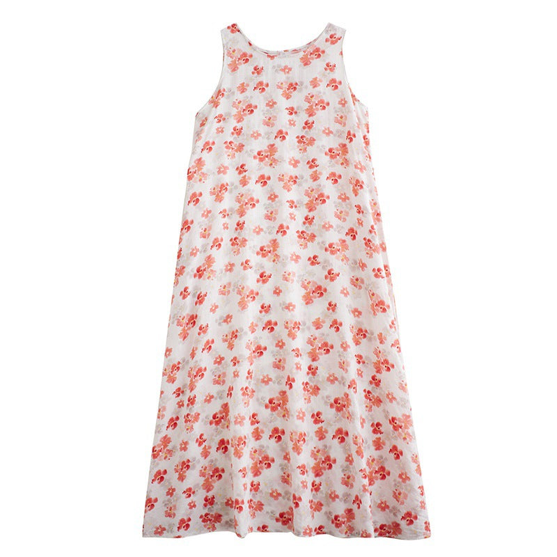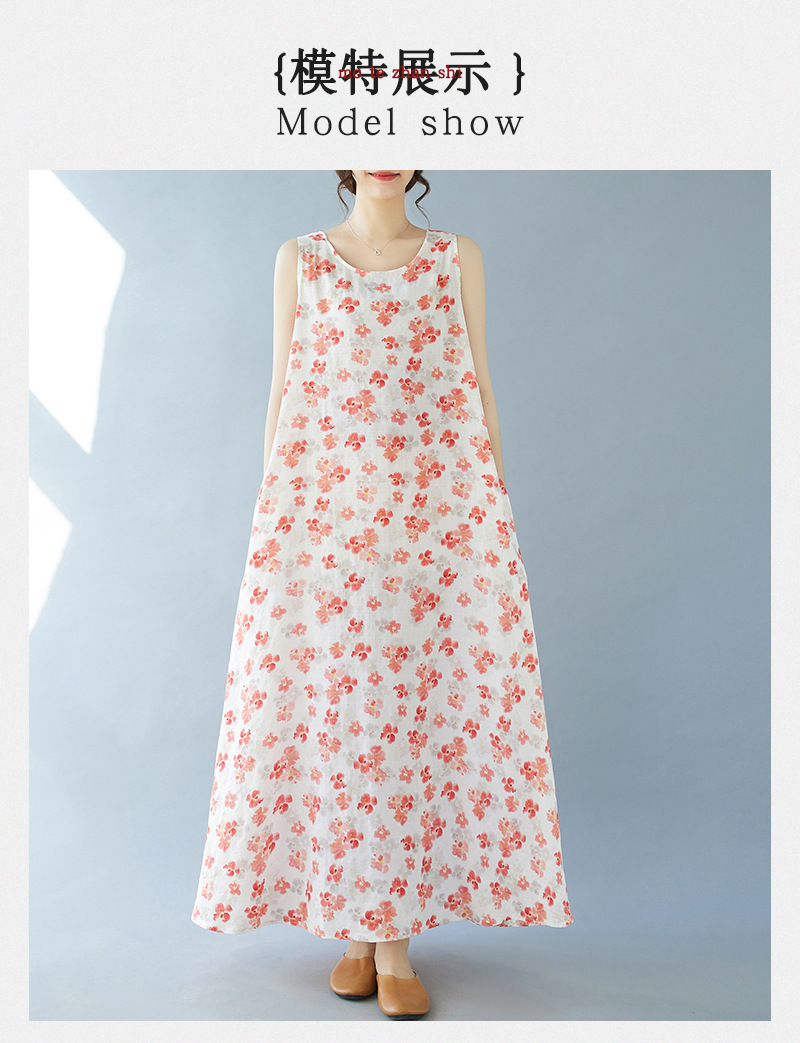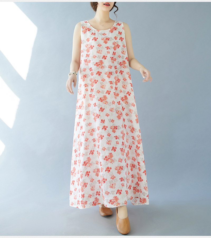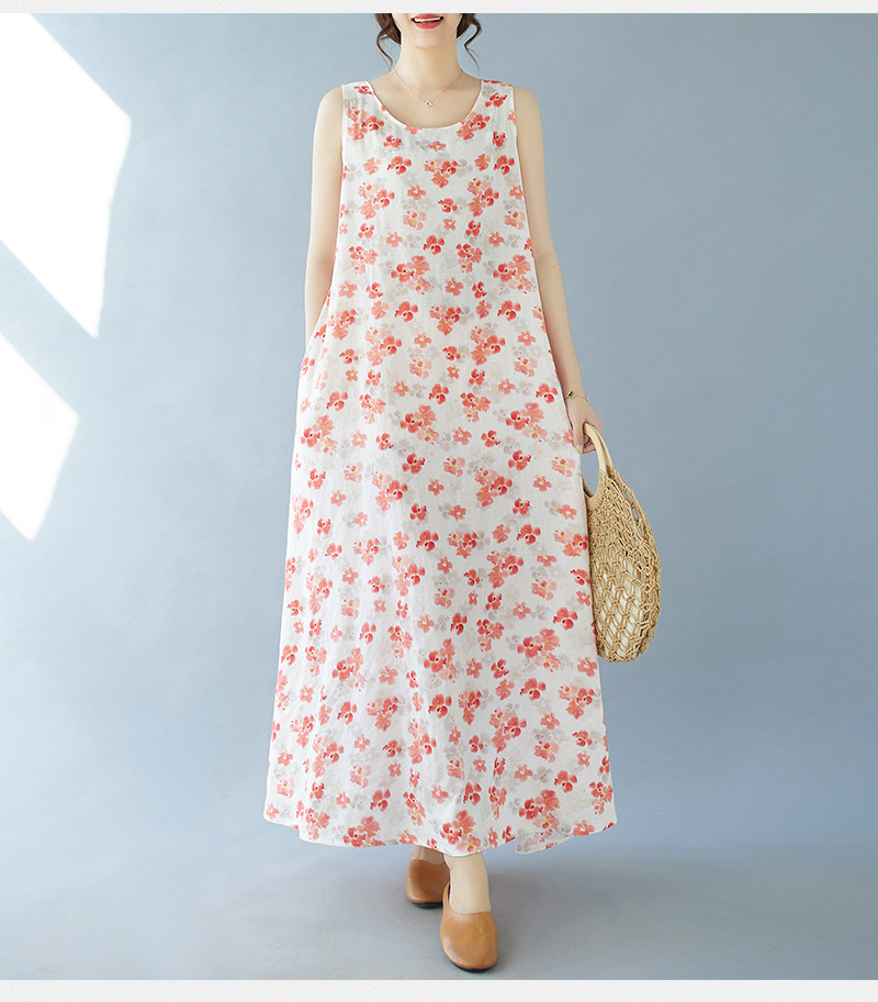 2024 real shot summer new bohemian fattened plus sleeveless crew neck printed medium and long dress women