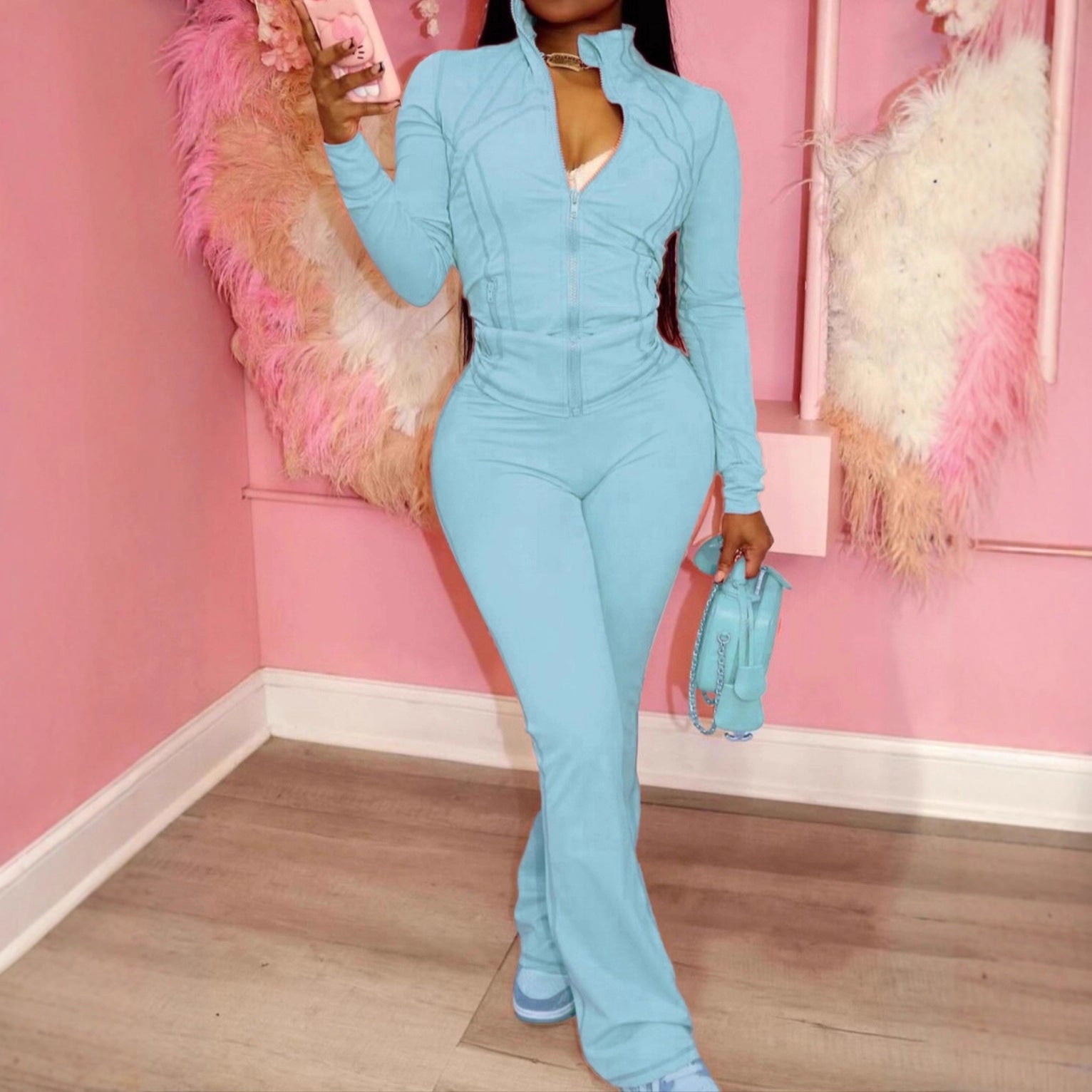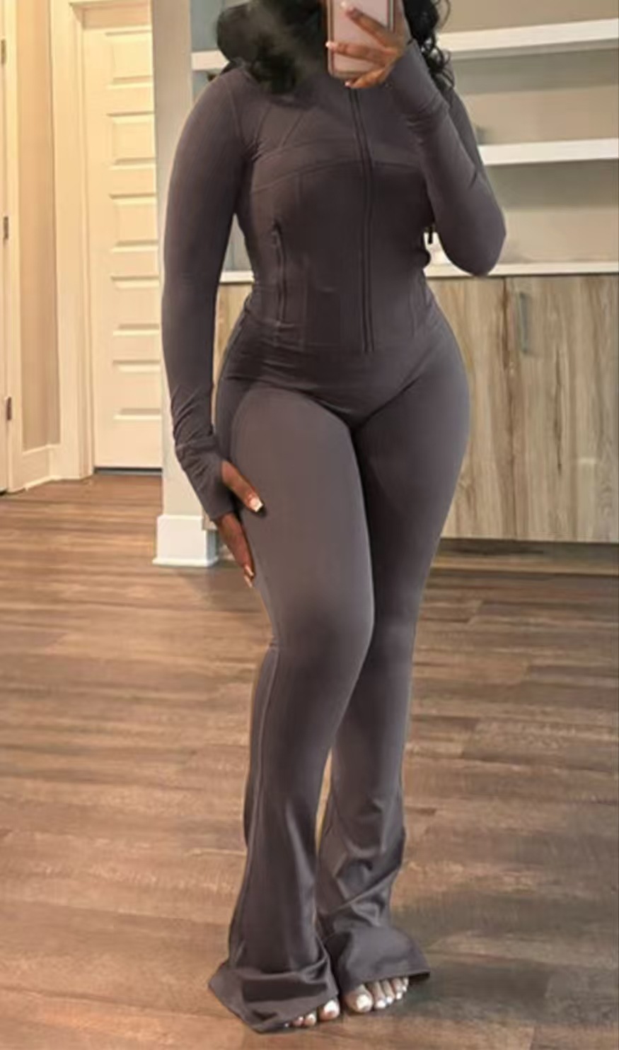 2025 Amazon, Europe, America, spring and summer cross-border sports and leisure women's clothing, sexy tight-fitting long-sleeved micro-speaker two-piece set