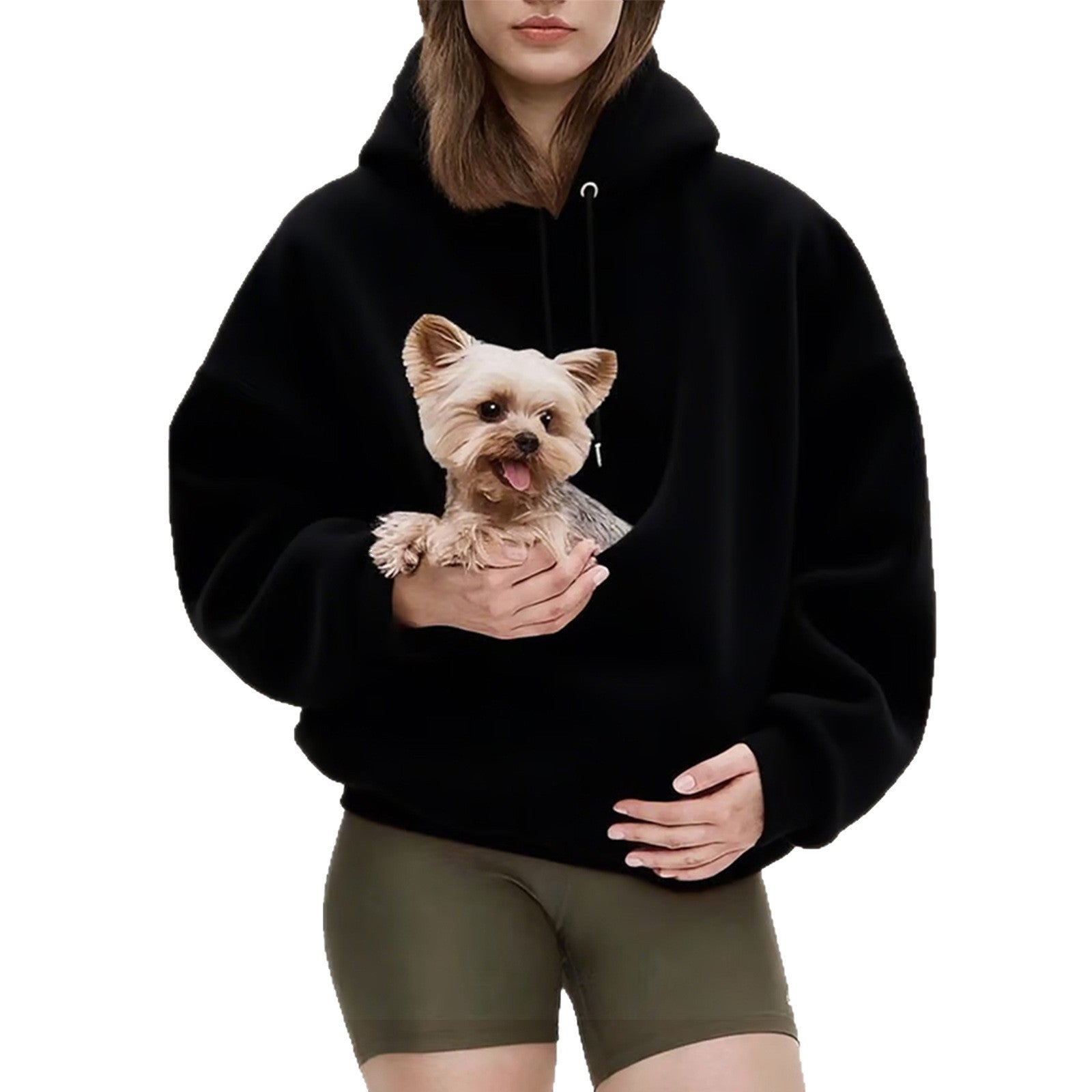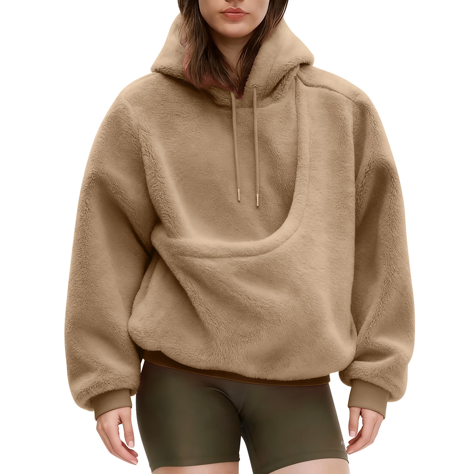 2025 Amazon new model, European, American autumn and winter cross-border solid color hooded plush pet pocket loose pullover sweater women