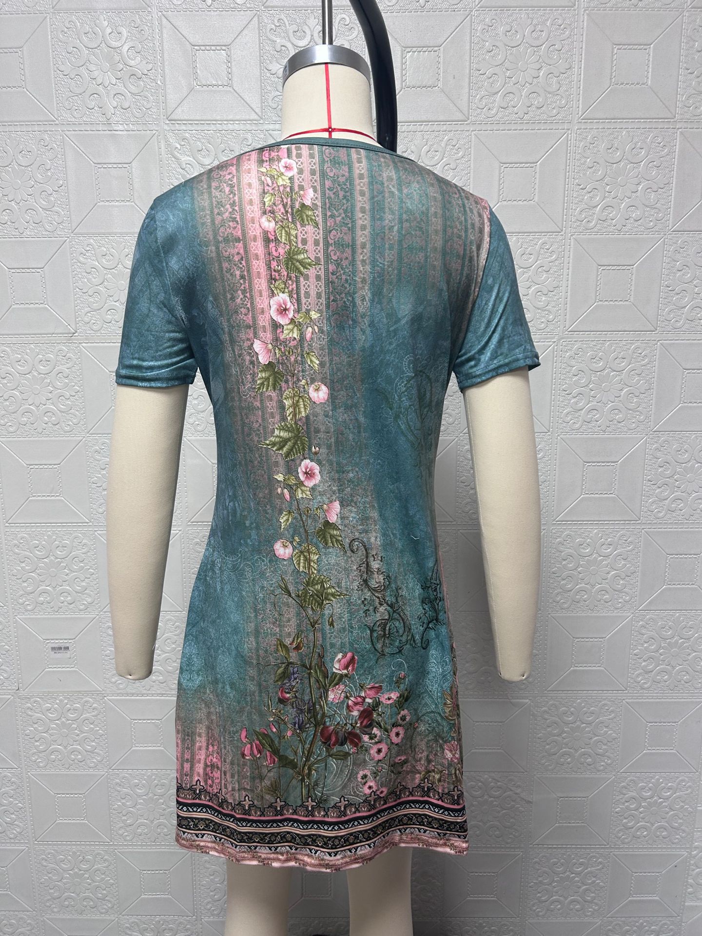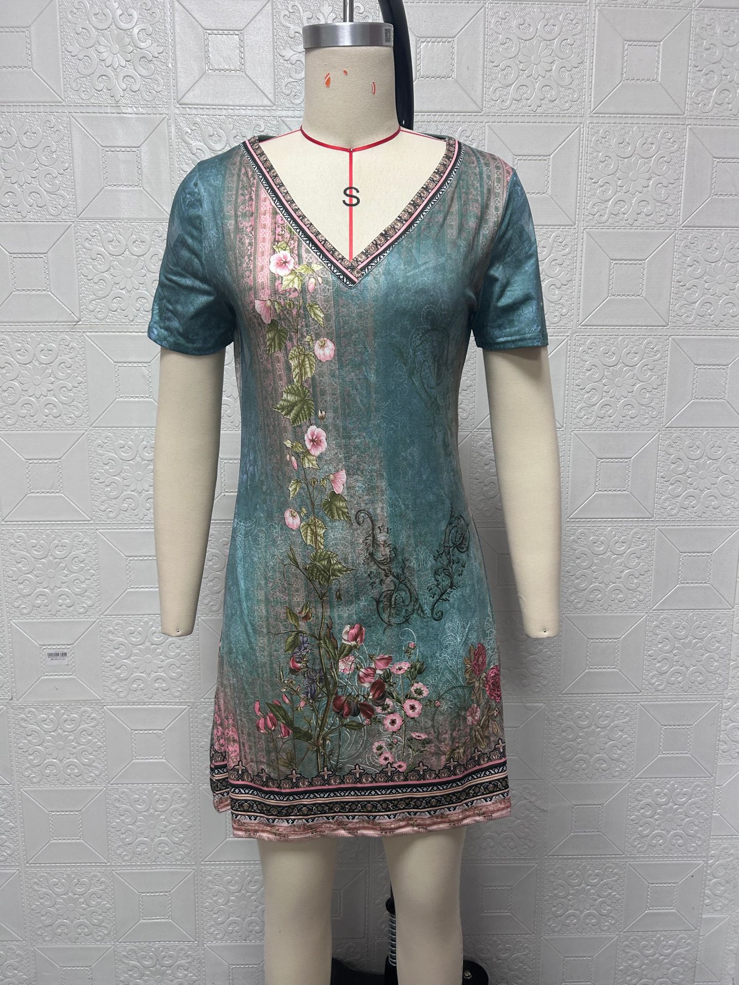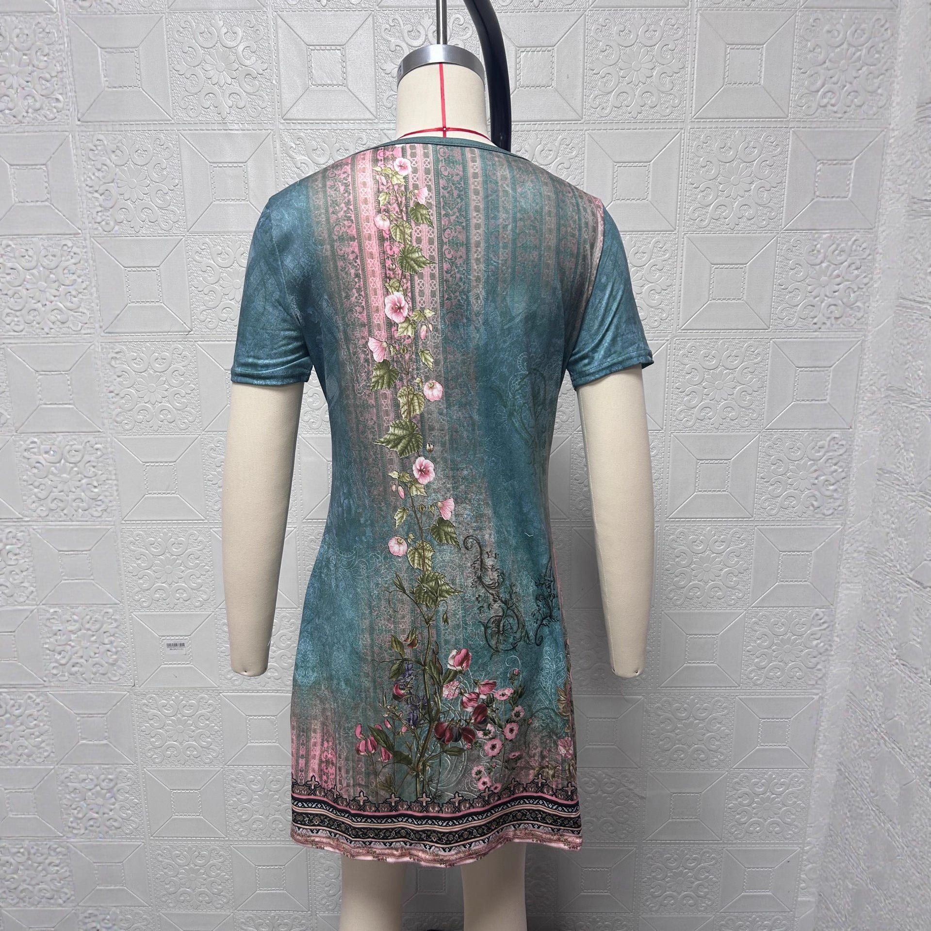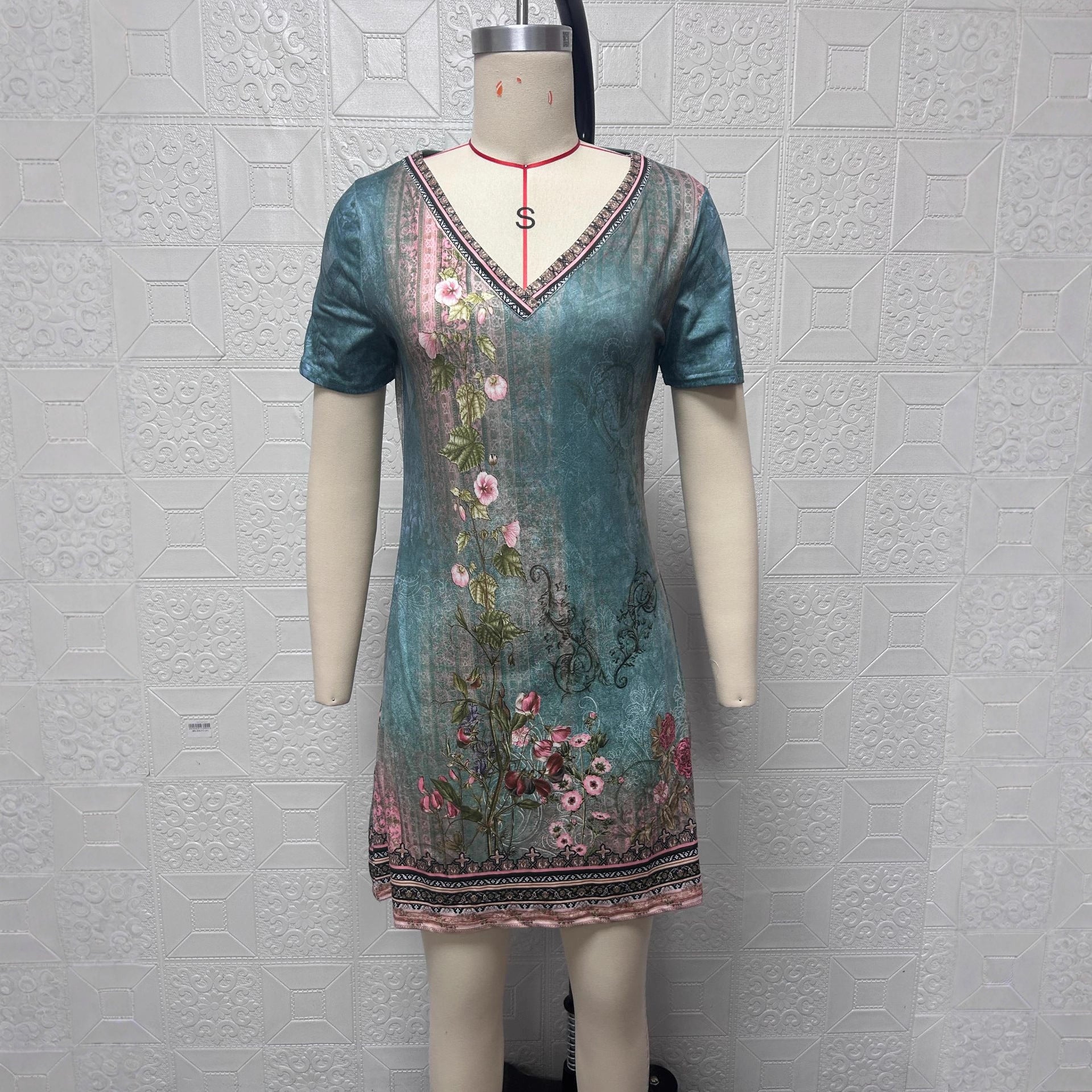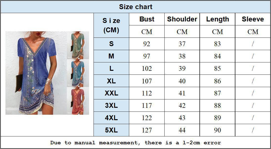 2025 Amazon Temu spring and summer European and American cross-border women's clothing new celebrity style printing casual V-neck short-sleeved dress
