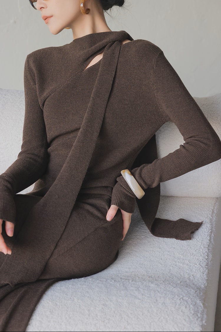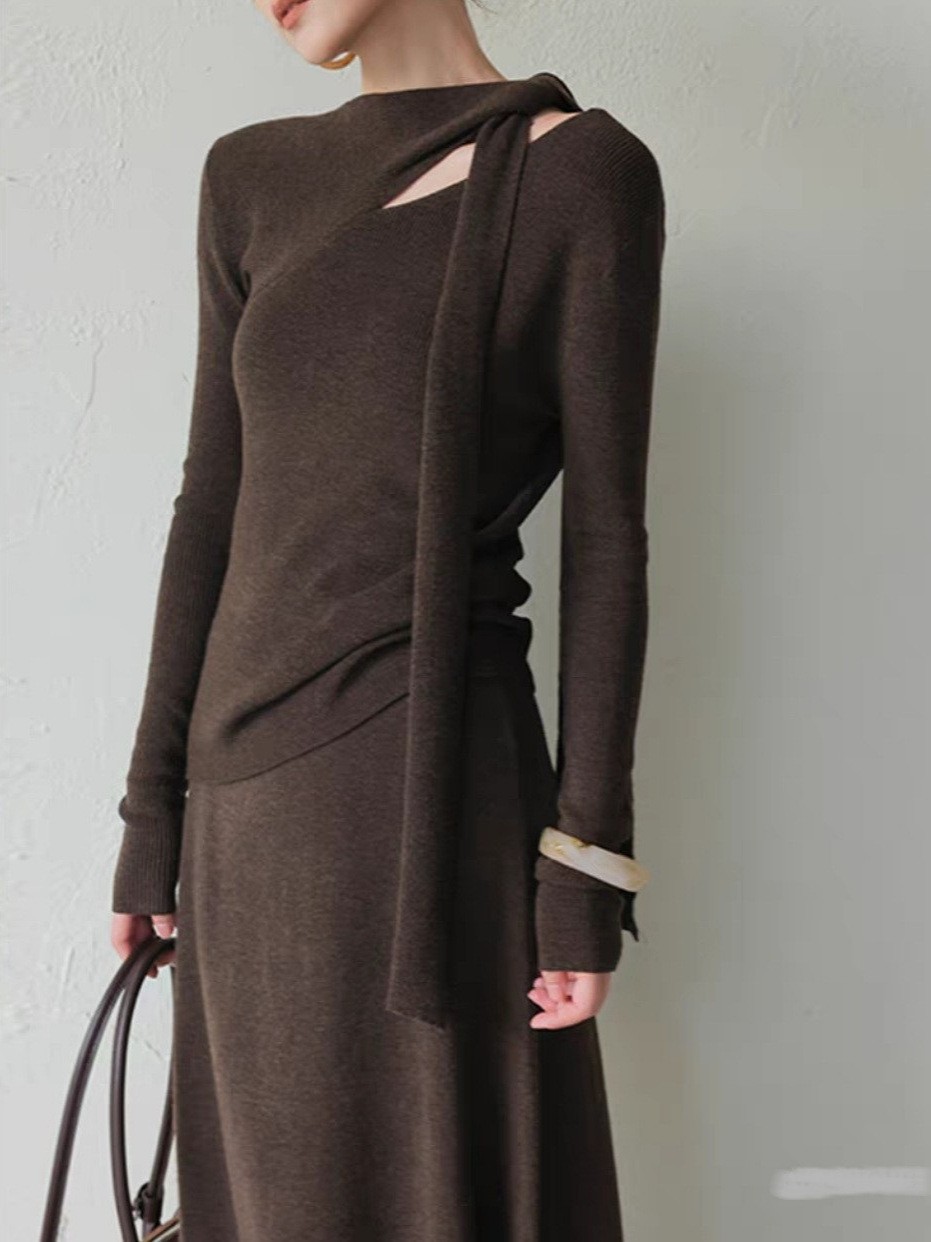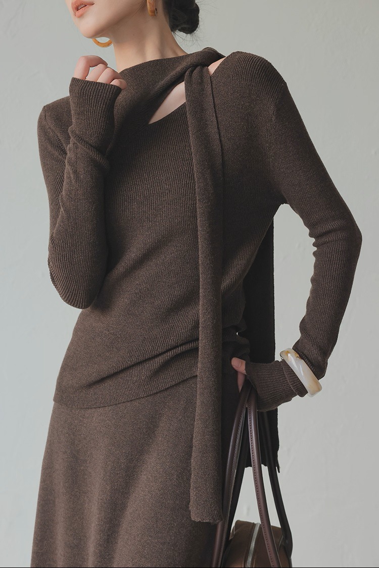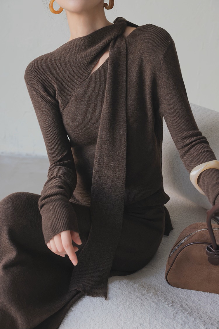 2025 autumn and winter senior feeling super good-looking soft waxy lazy wind age reduction unique chic small fragrant style coffee color knitted sweater women