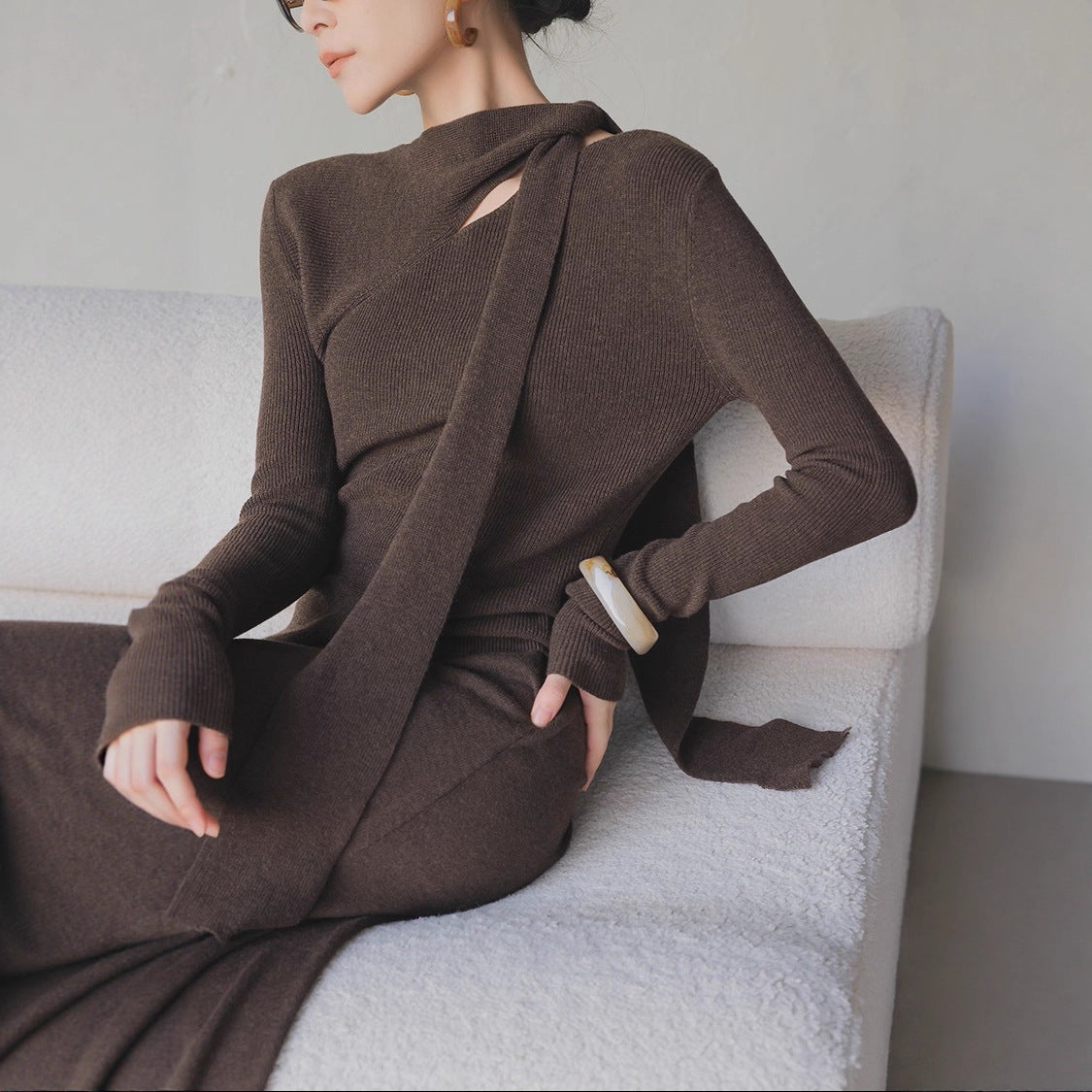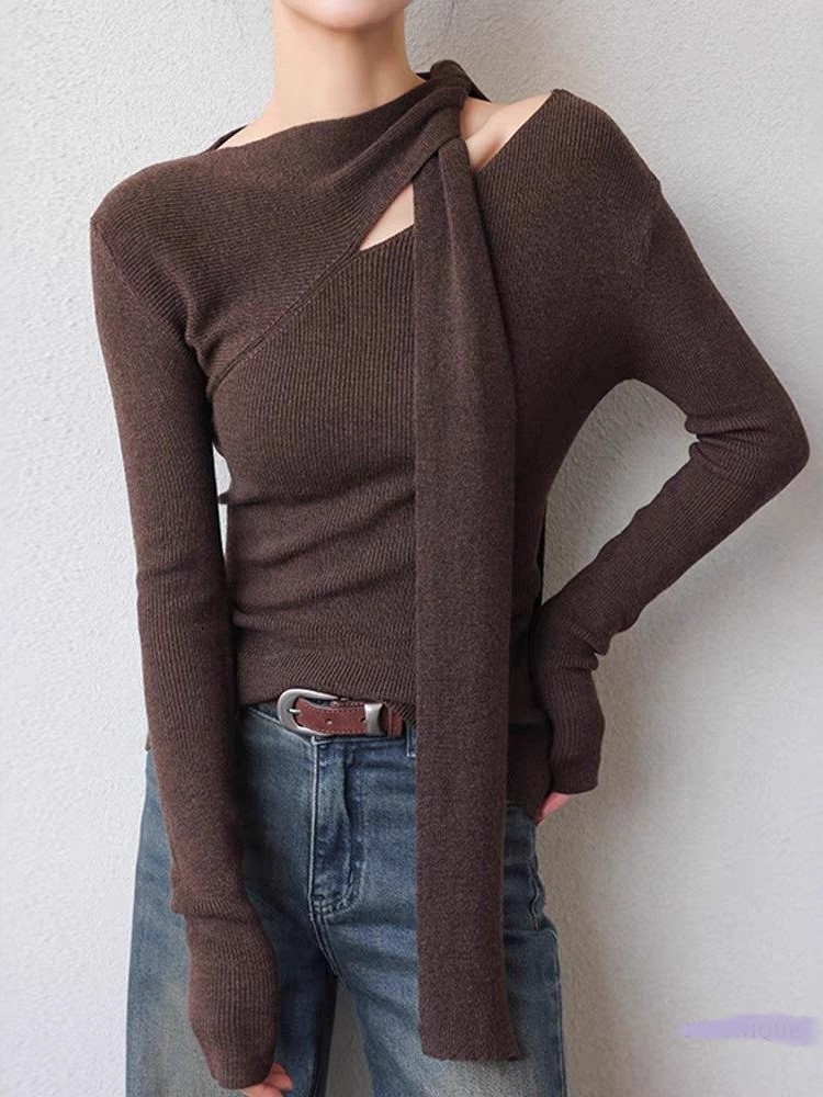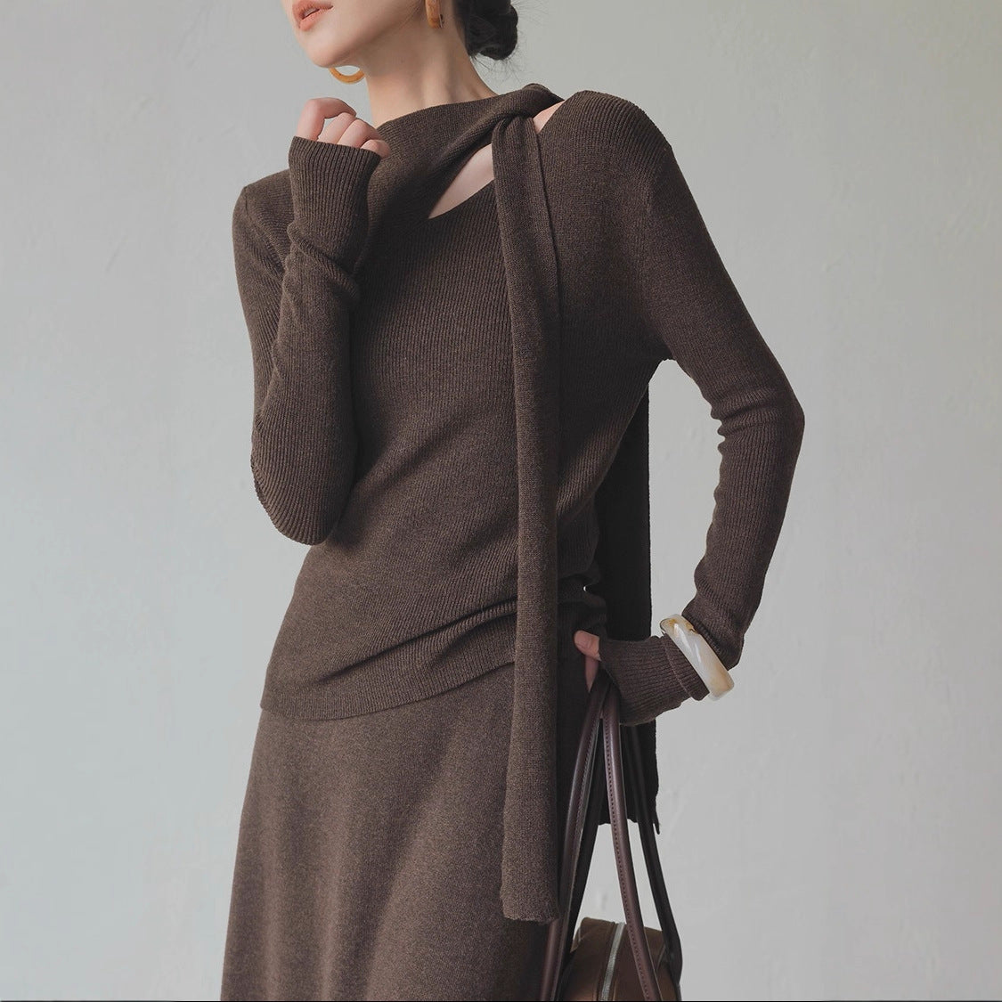 2025 autumn and winter senior feeling super good-looking soft waxy lazy wind age reduction unique chic small fragrant style coffee color knitted sweater women
