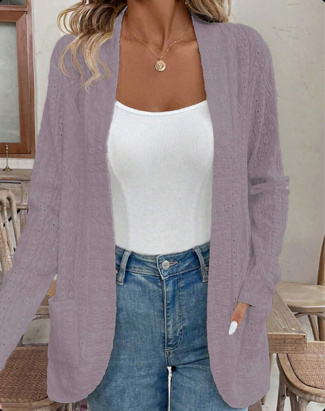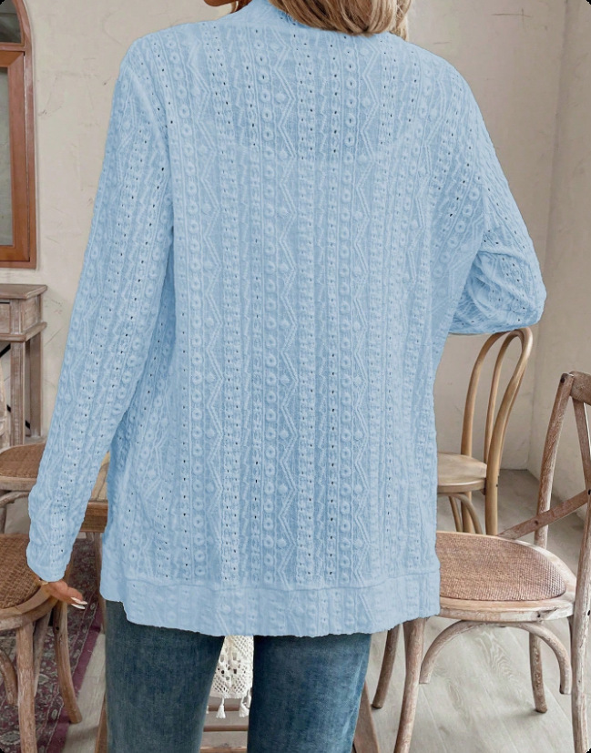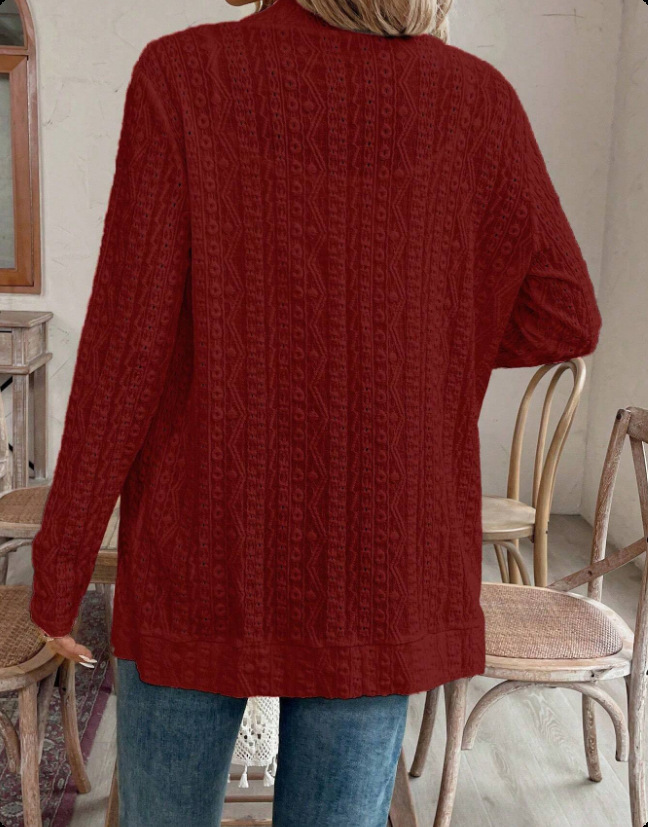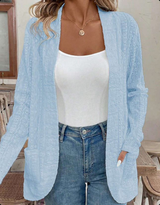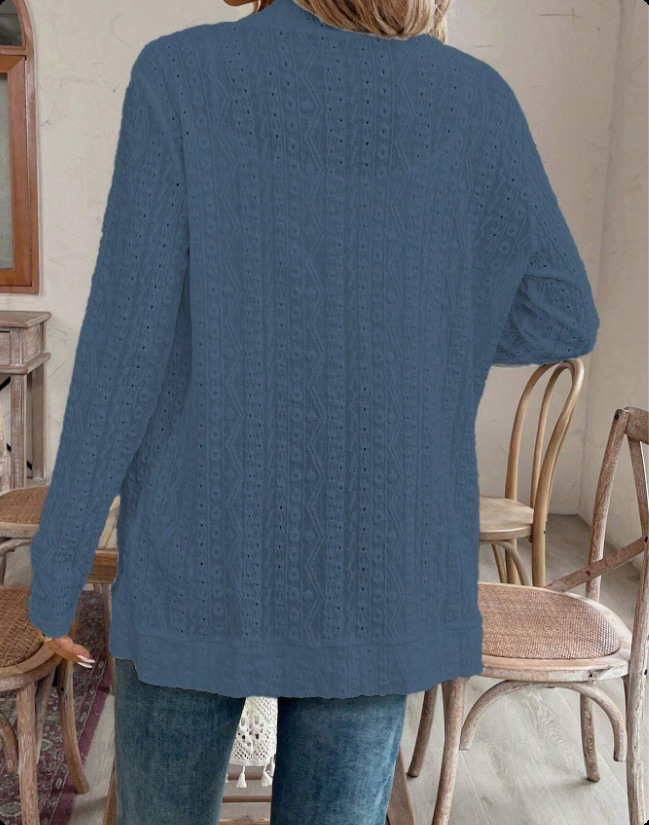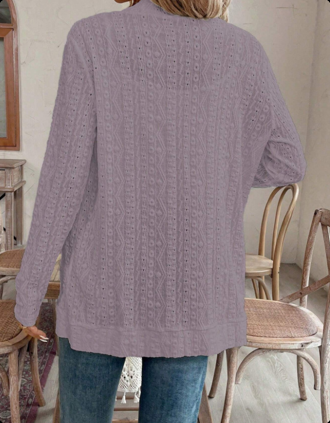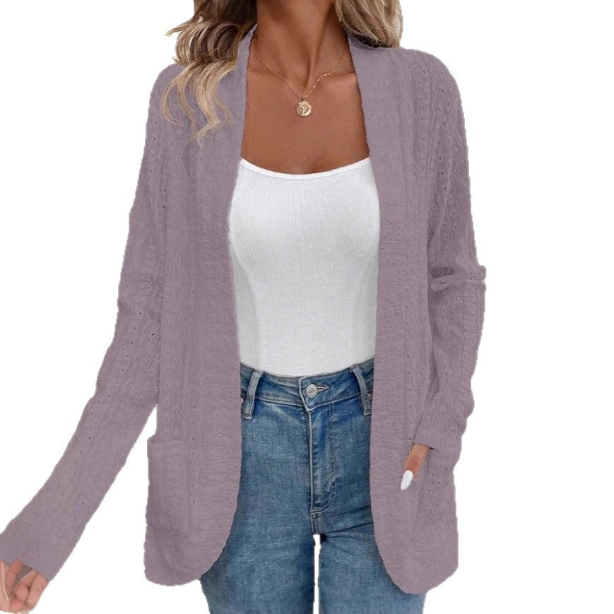 2025 autumn European and American women's clothing cross-border Amazon independent station solid color jacquard hollow casual long-sleeved cardigan