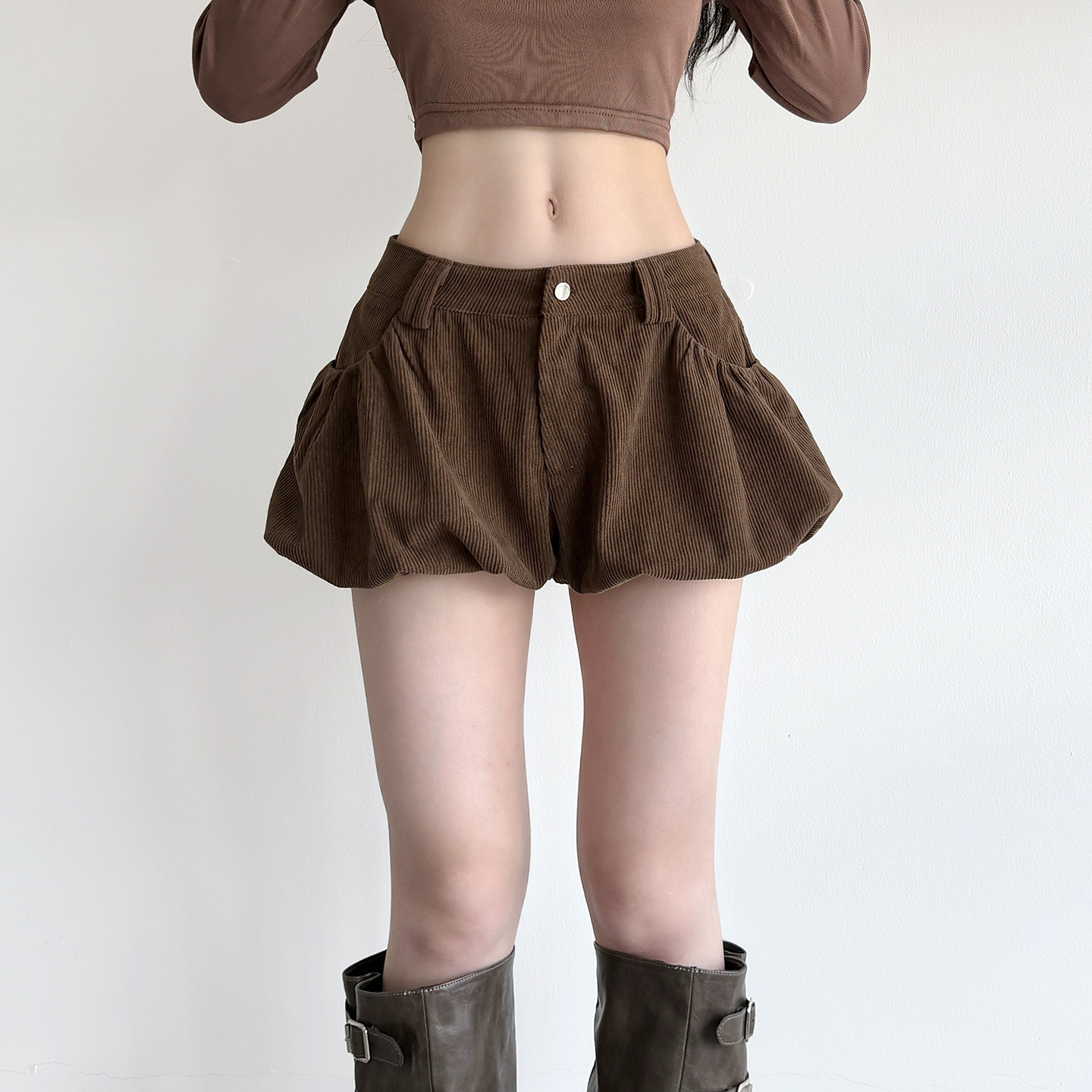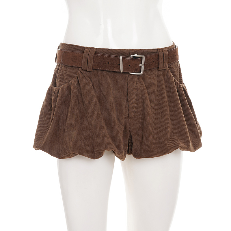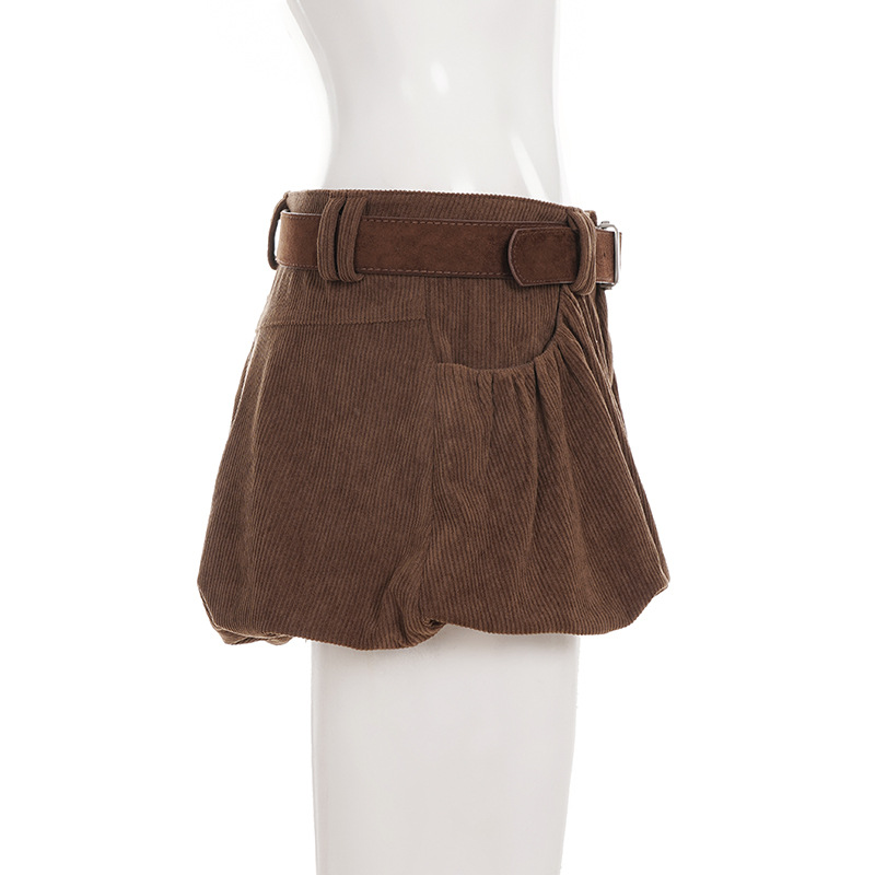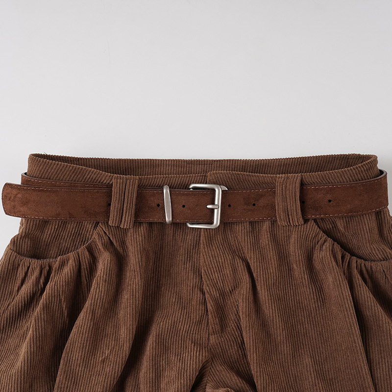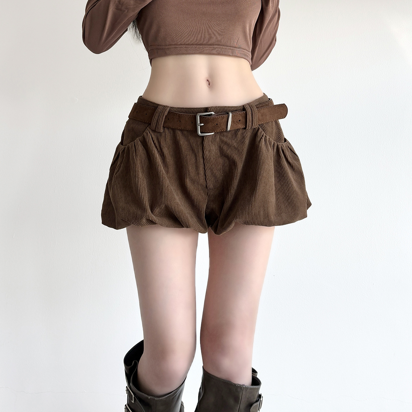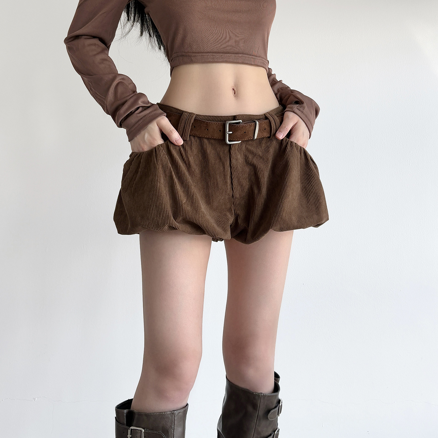 2025 autumn Korean style sweet and spicy new corduroy bud culottes low waist design suede belt accessories shorts