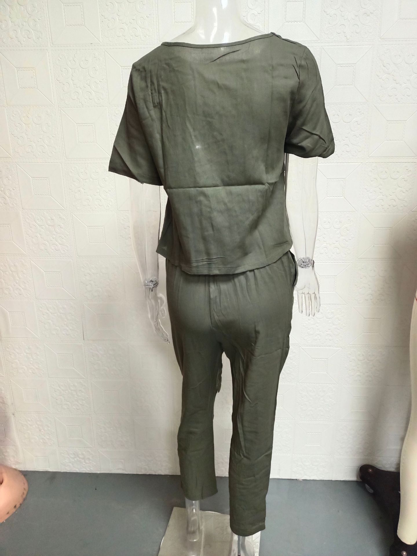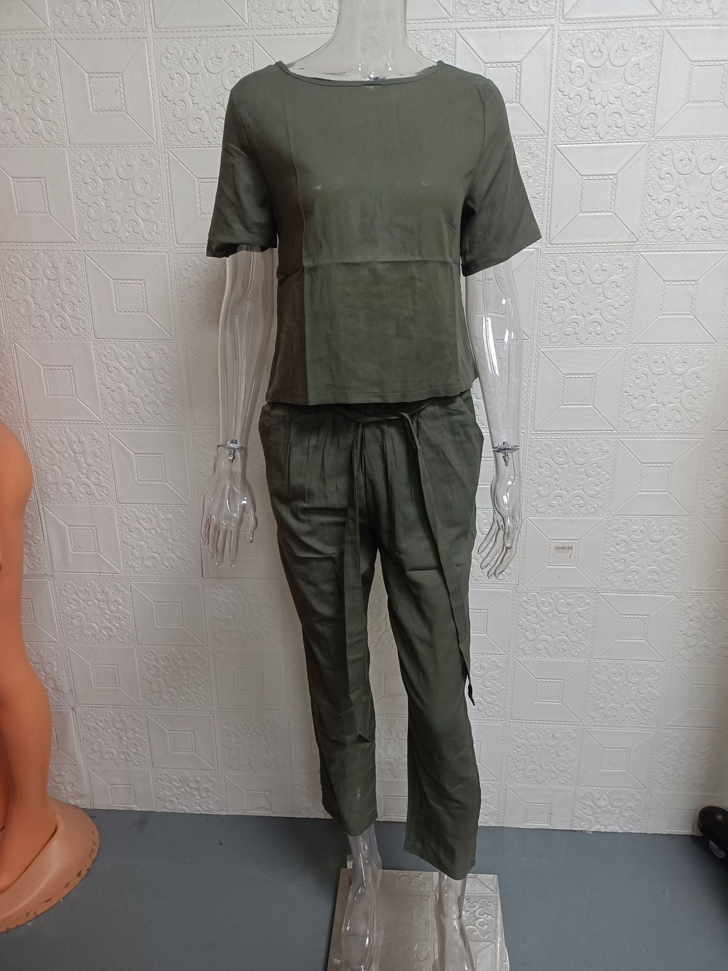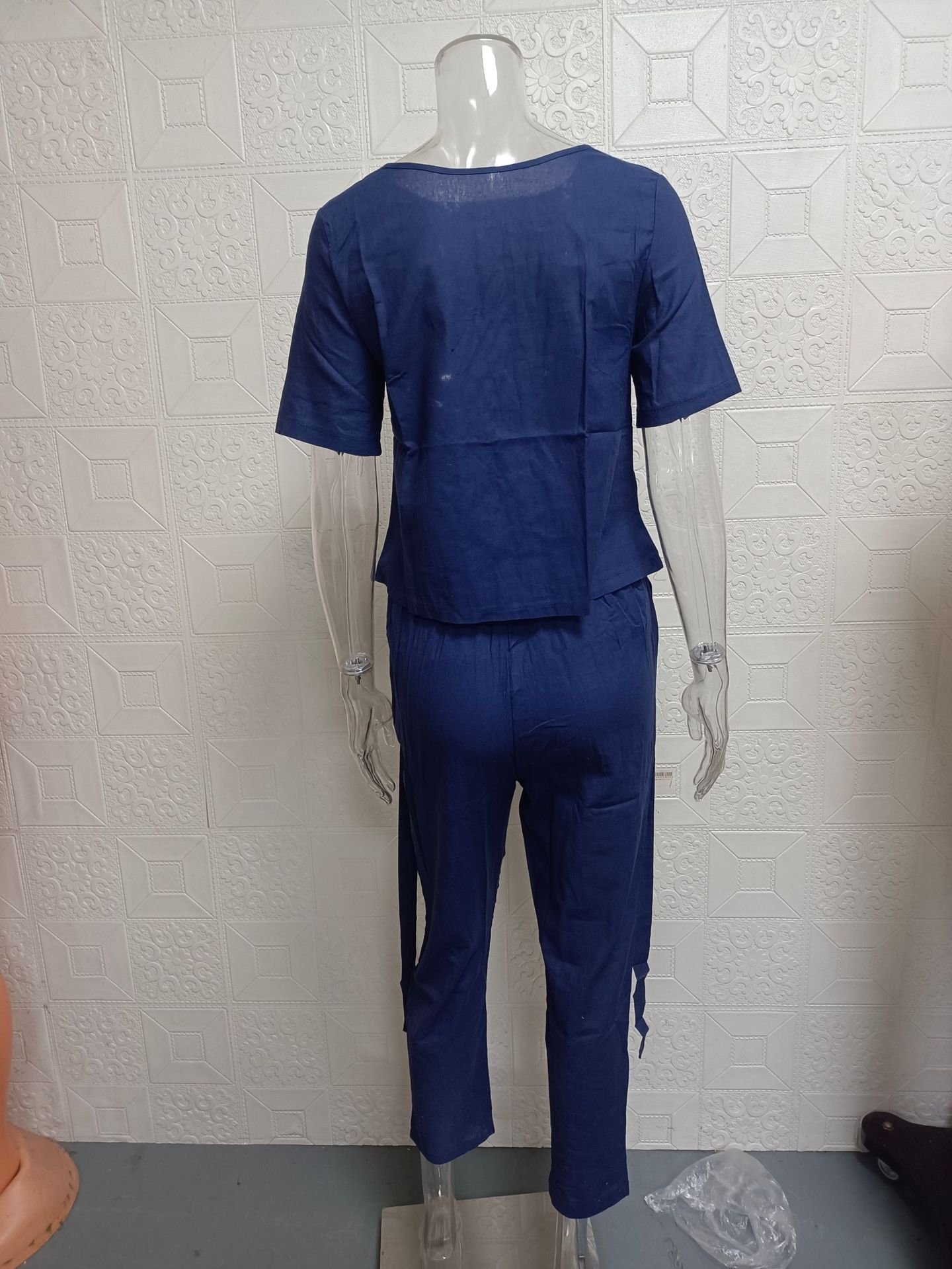 2025 cross-border women's clothing cotton and linen summer commuting matching set half-sleeved O-neck oversized blouse retro two-piece set