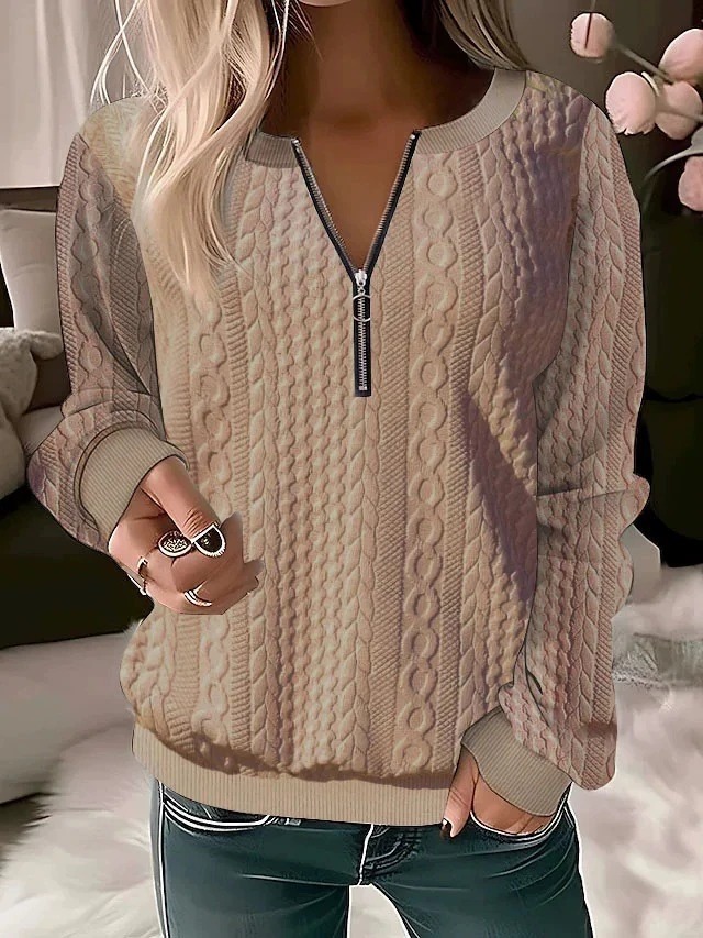 2025 European and American cross-border Amazon independent station autumn and winter new women's clothing long-sleeved solid color V-neck zipper T-shirt top