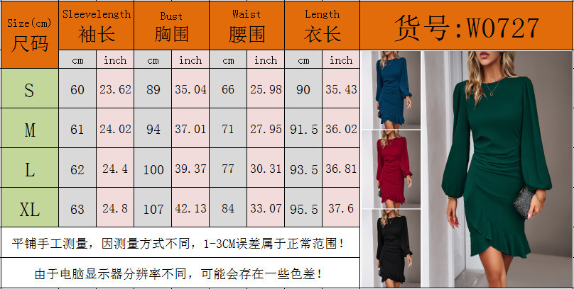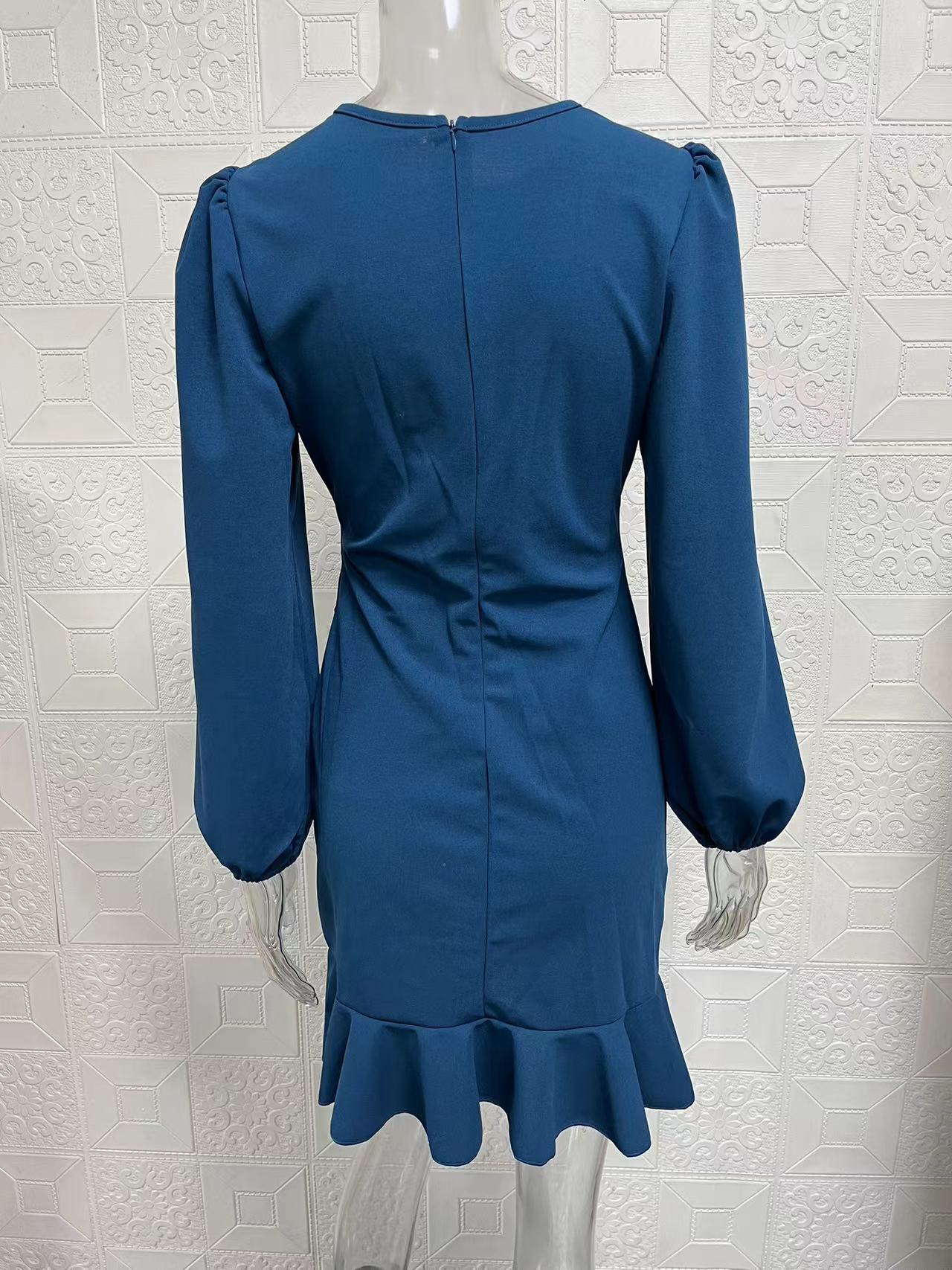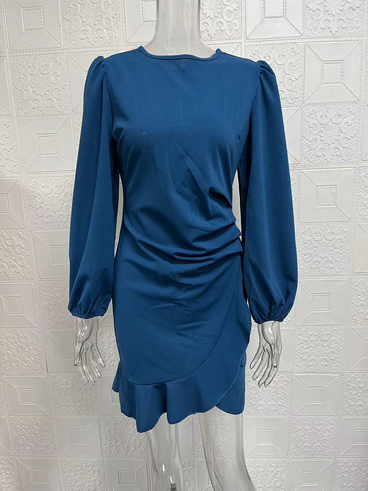 2025 European and American foreign trade women's clothing Amazon temperament bubble sleeves solid color hip-wrapped dress showing thin temperament commuting