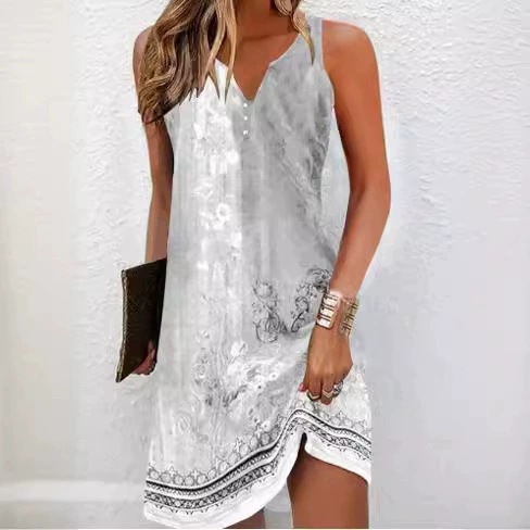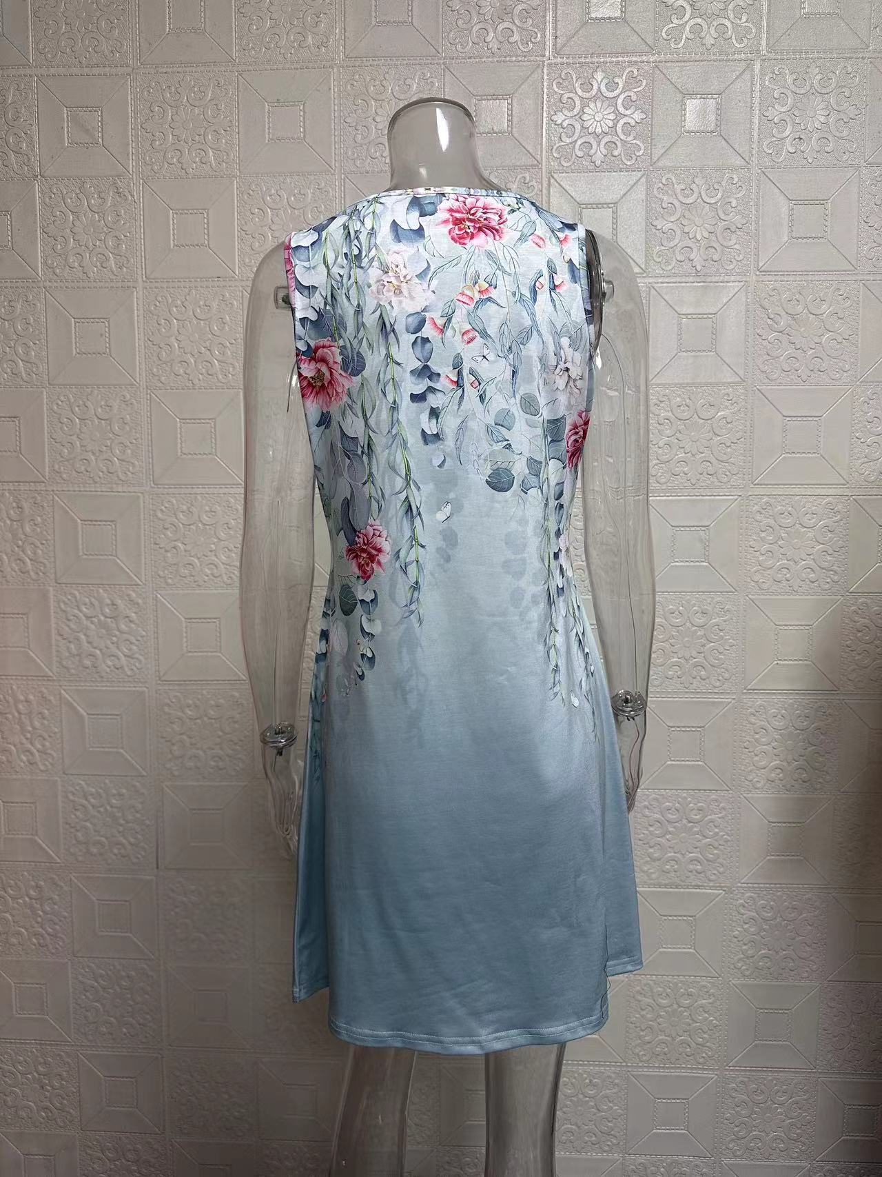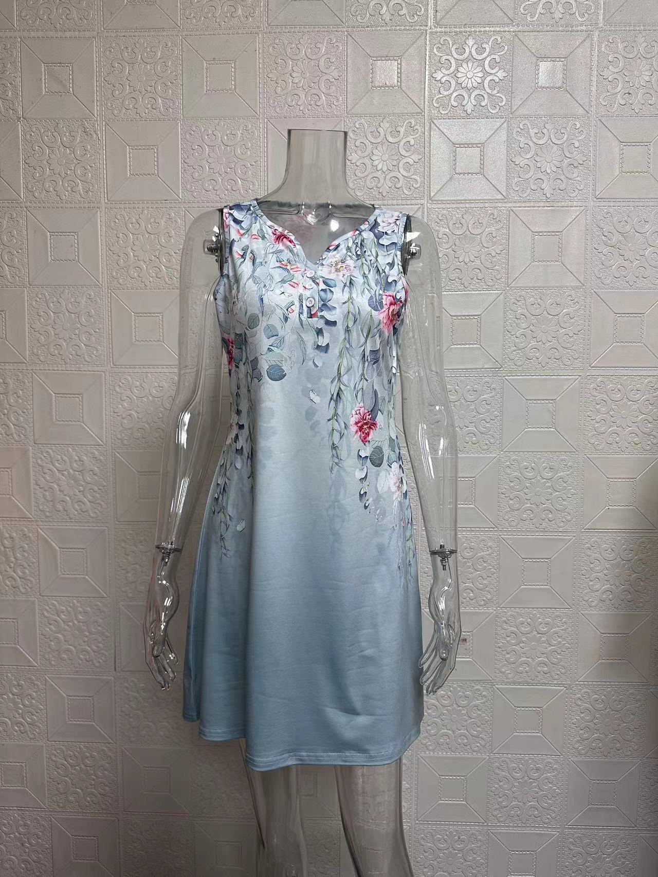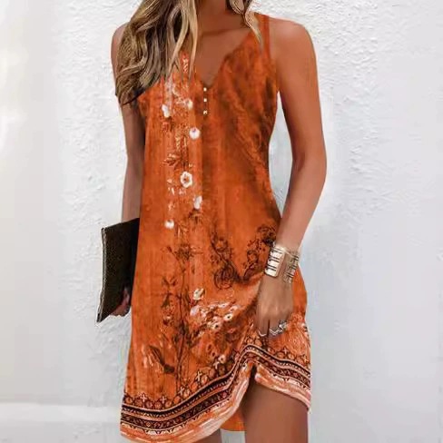 2025 European and American women's clothing Amazon flower button casual style A-shaped skirt sleeveless V-neck dress three-dimensional pattern