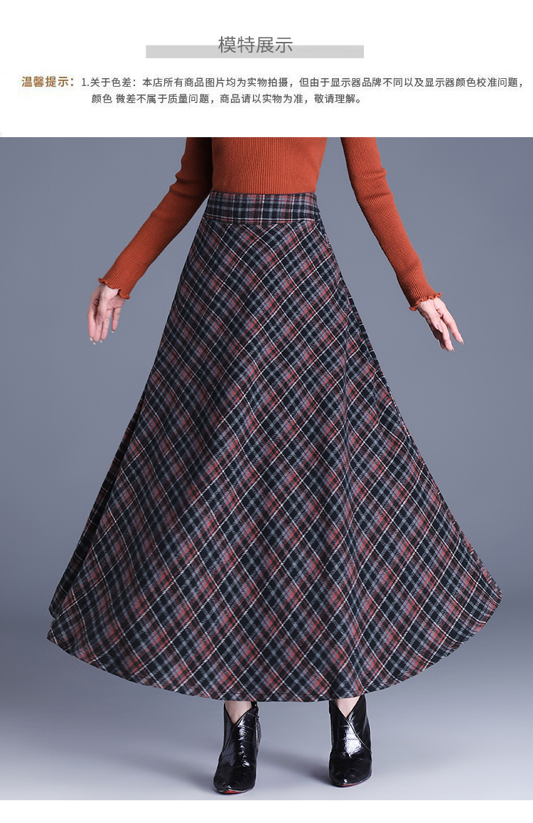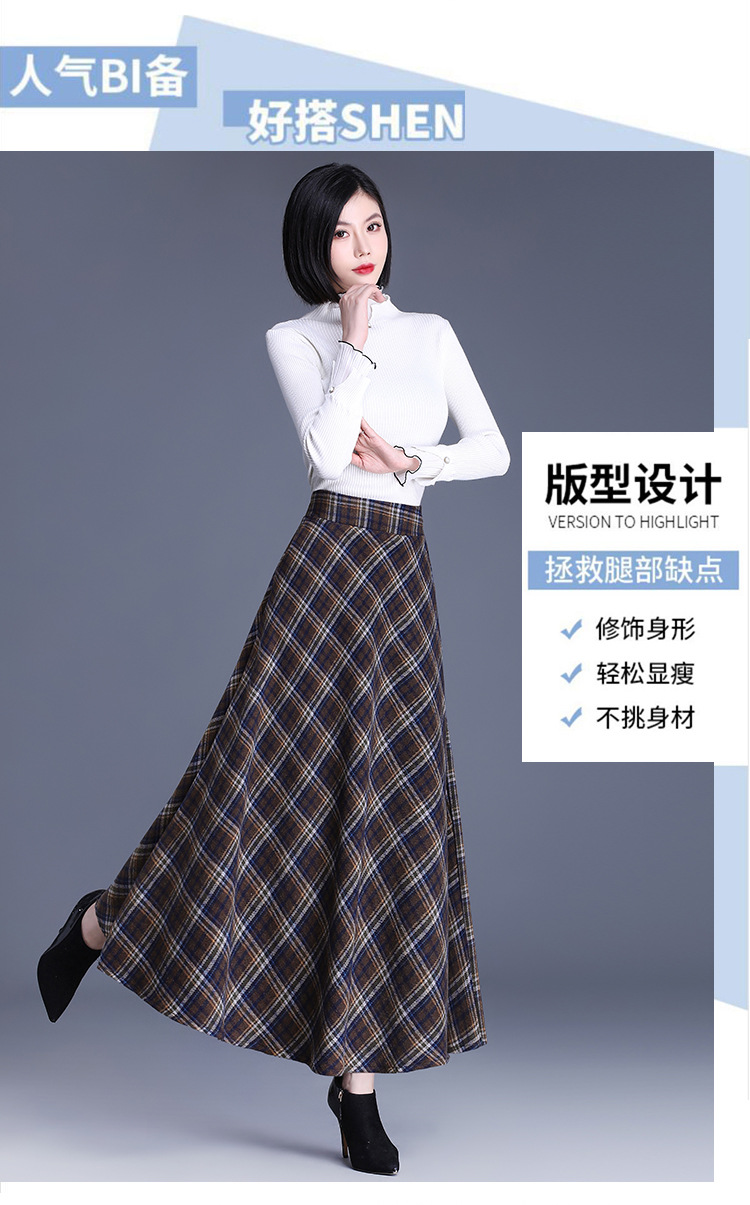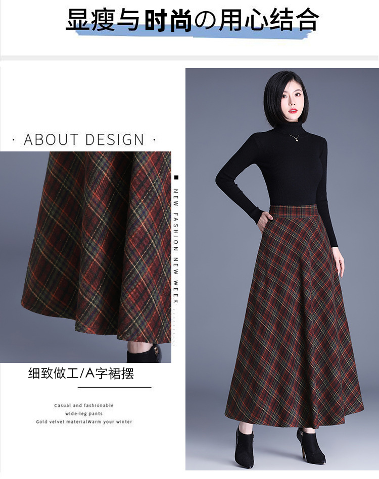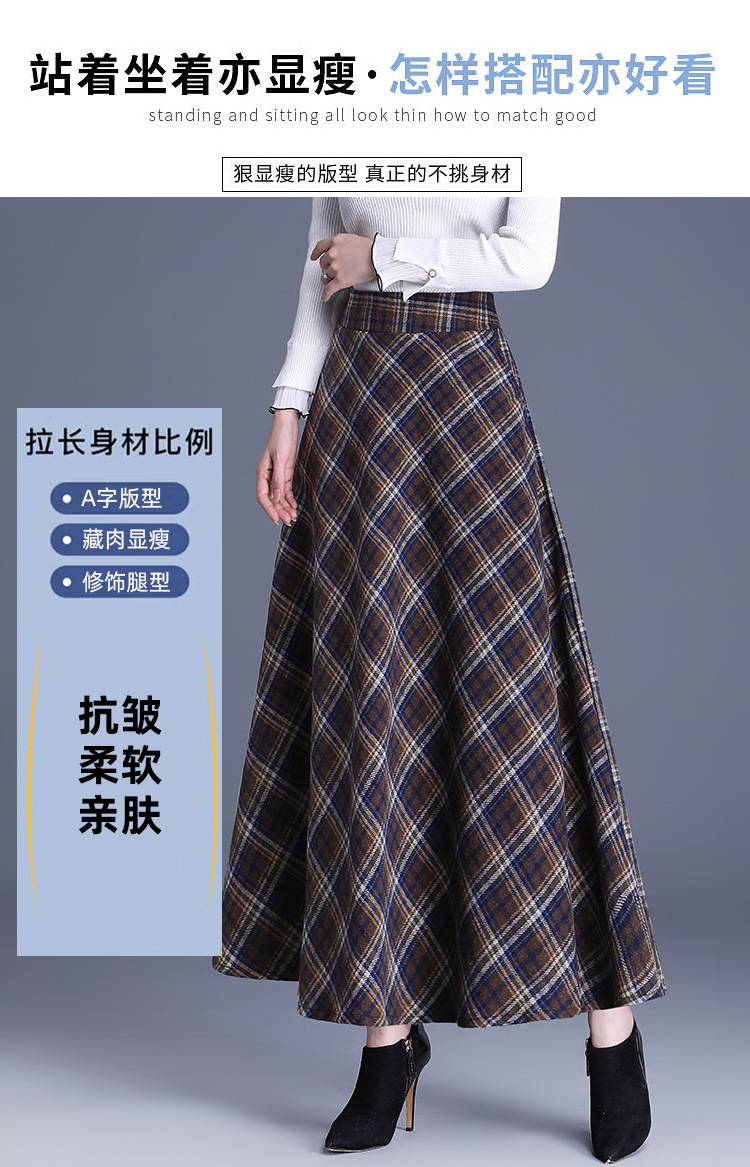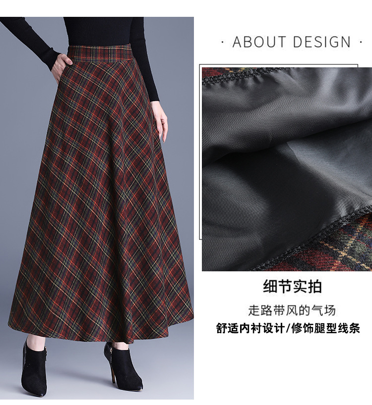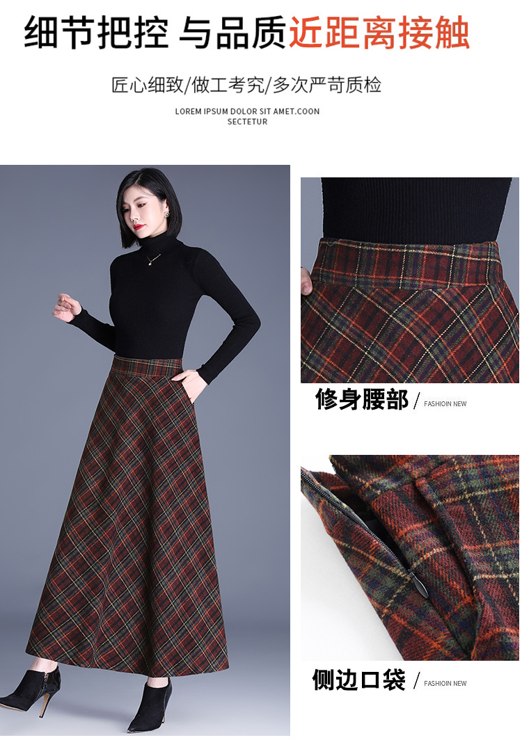 2025 medium and long woolen plaid skirt autumn and winter Korean version thin pleated skirt thickened woolen swinging A-shaped skirt