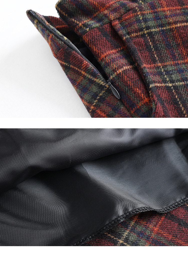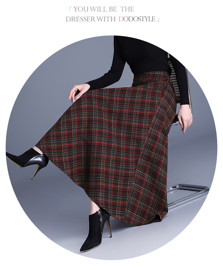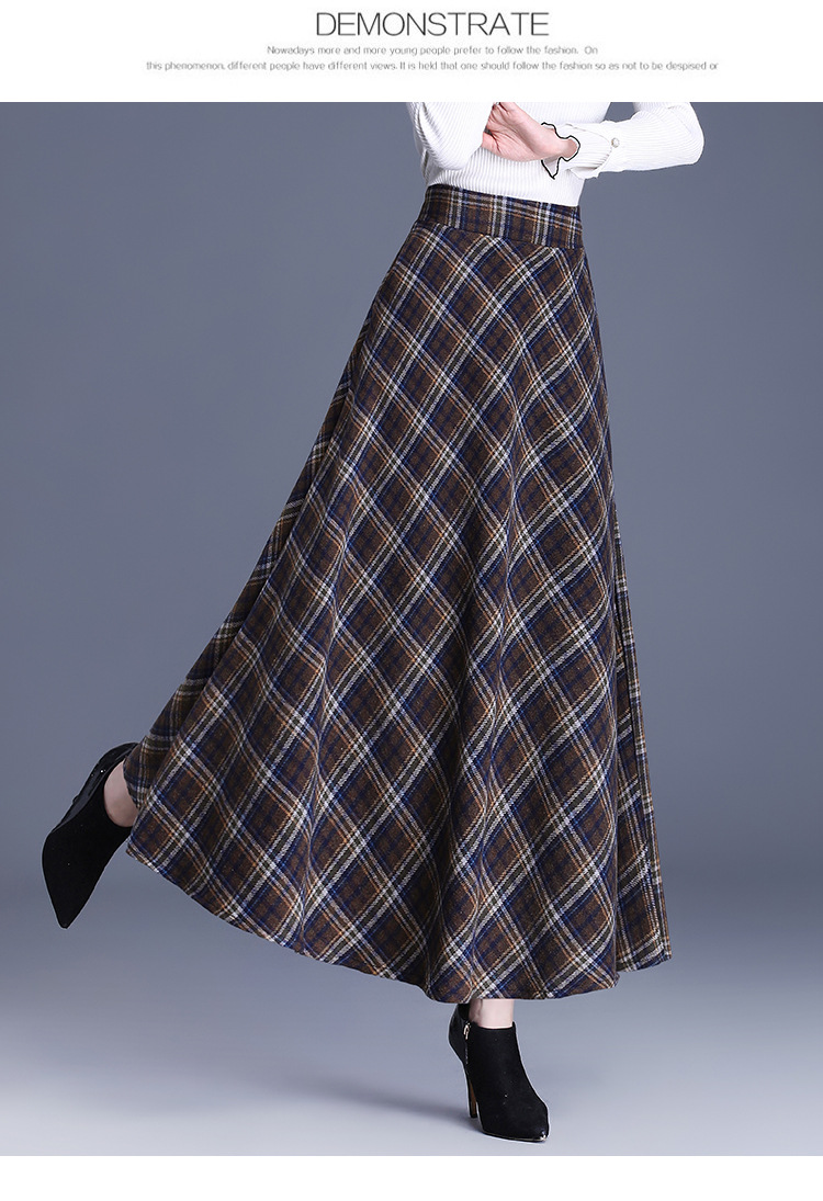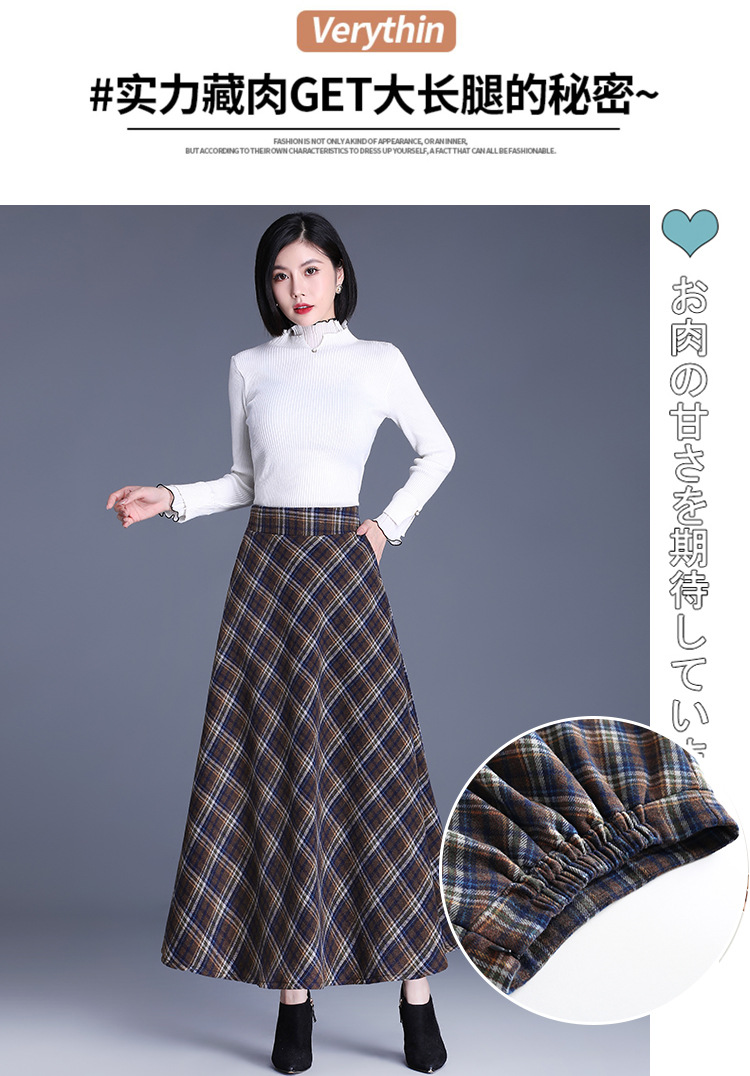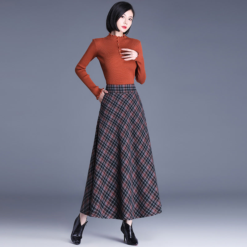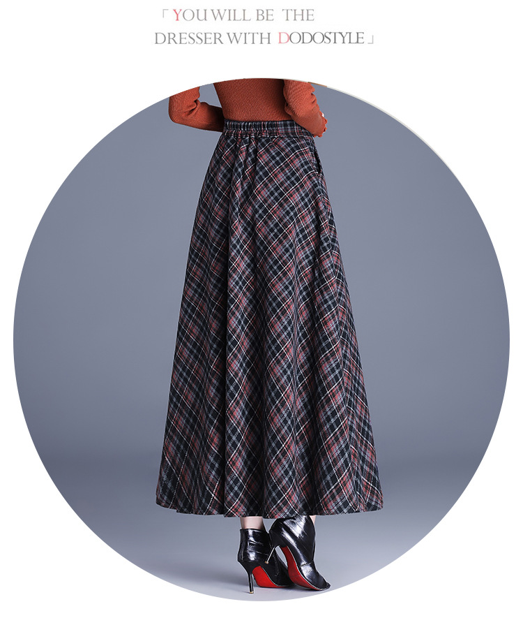 2025 medium and long woolen plaid skirt autumn and winter Korean version thin pleated skirt thickened woolen swinging A-shaped skirt