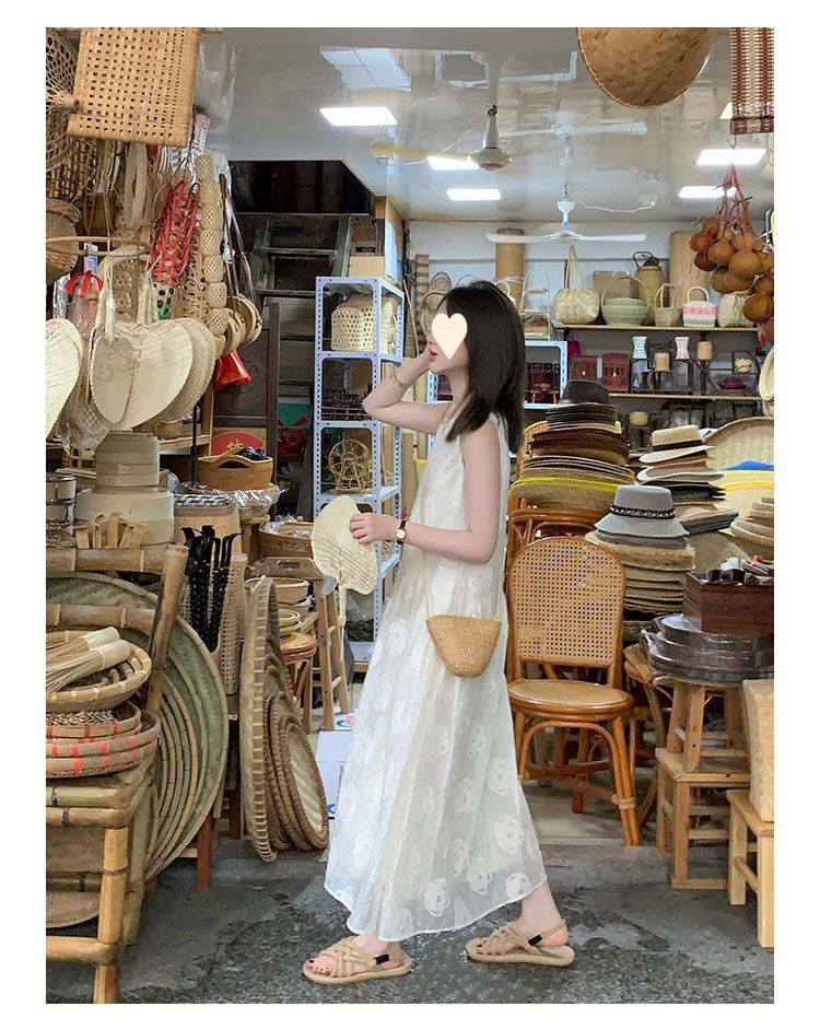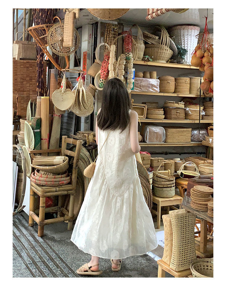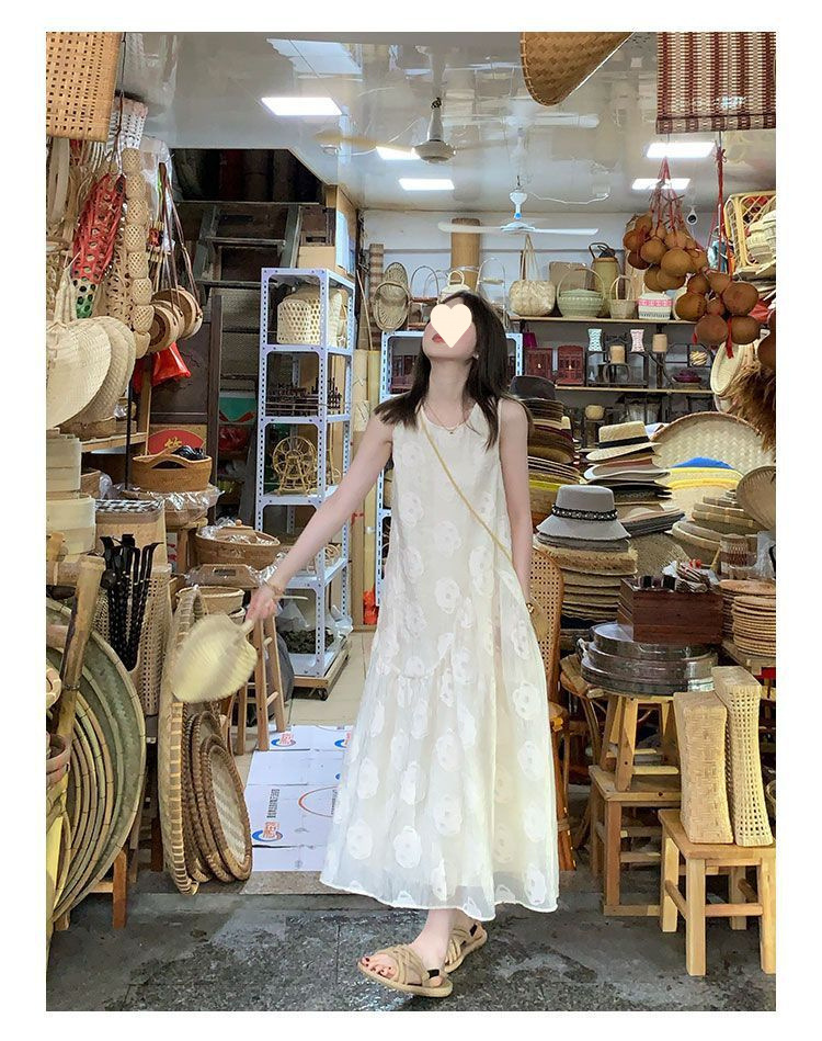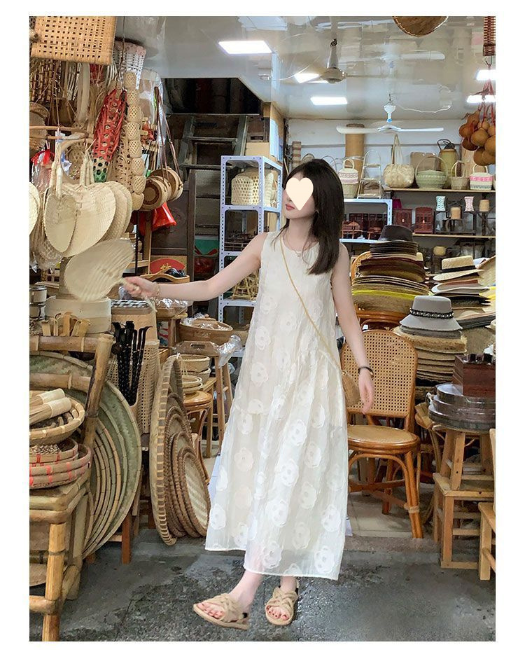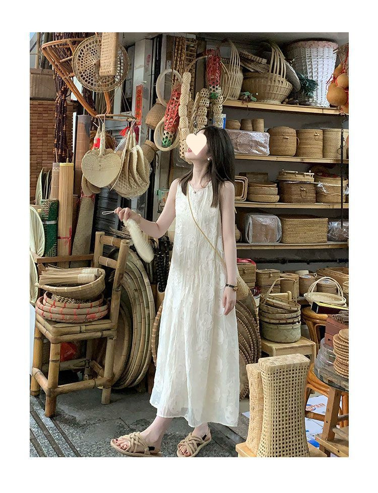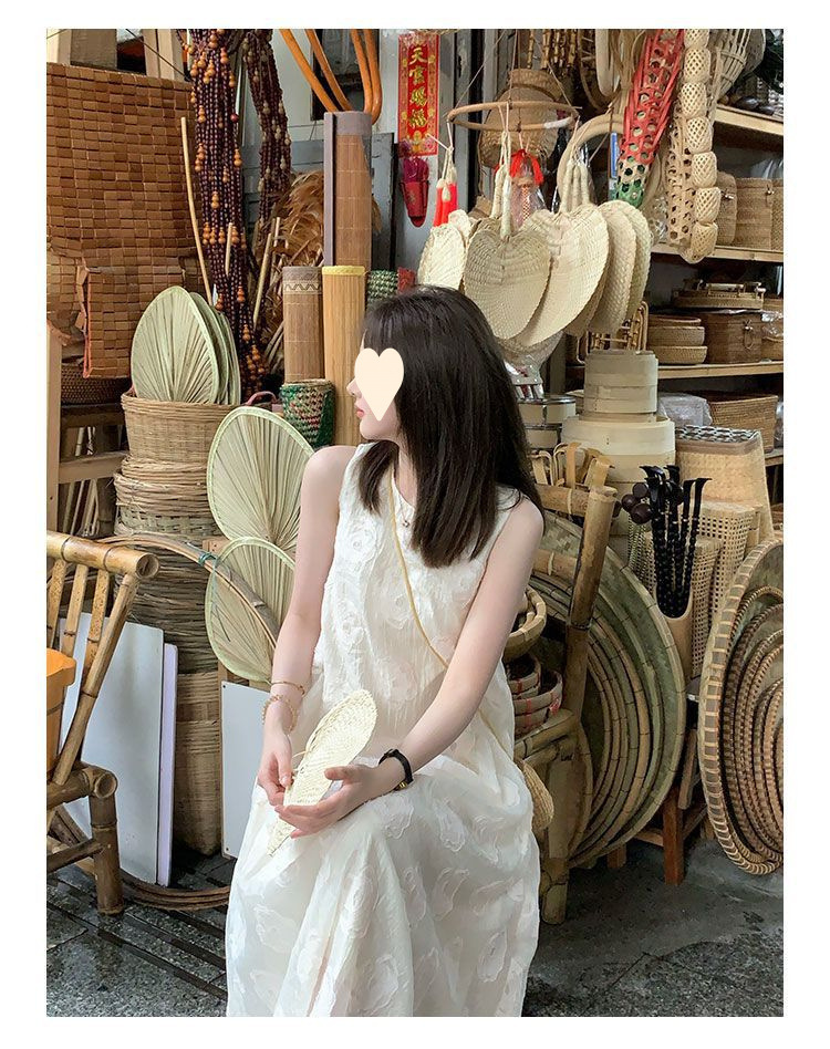 2025 new French solid color sleeveless vest dress women's summer niche design apricot dress