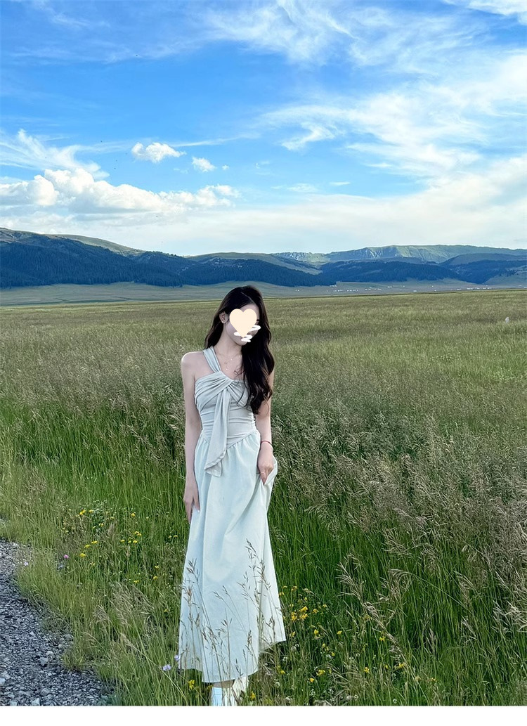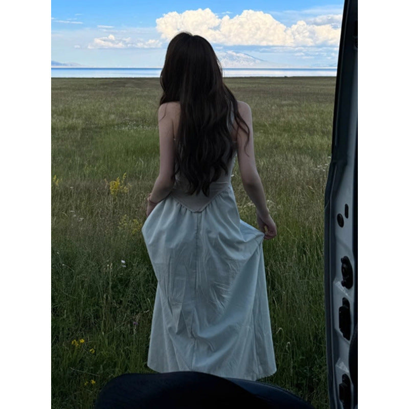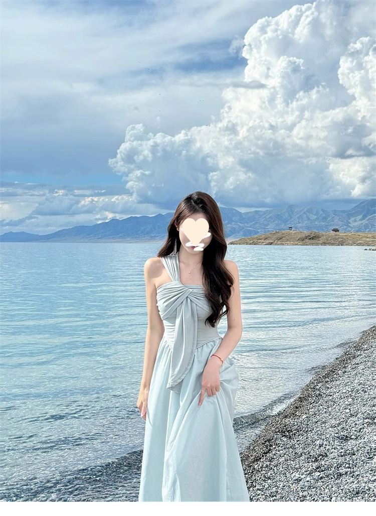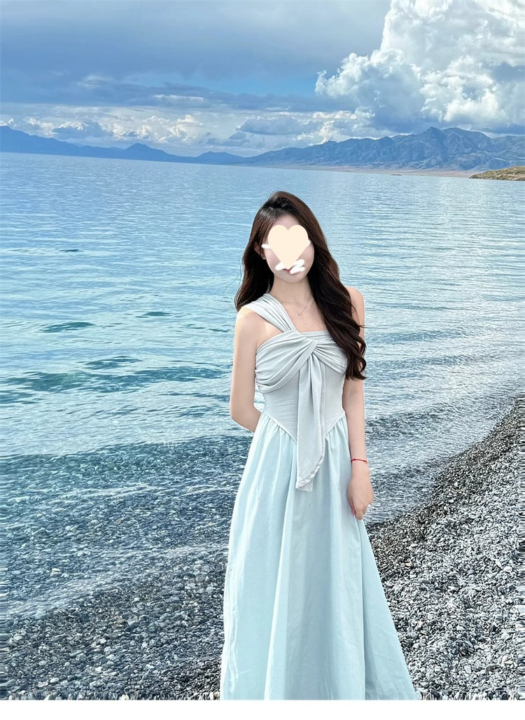2025 new high-end irregular design seaside vacation tube top dress children's summer French temperament long dress