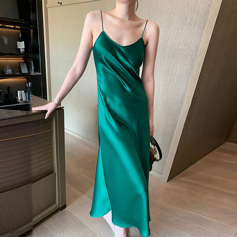 2025 spring new acetic acid suspender dress satin silky high-end Internet celebrity dress spot one