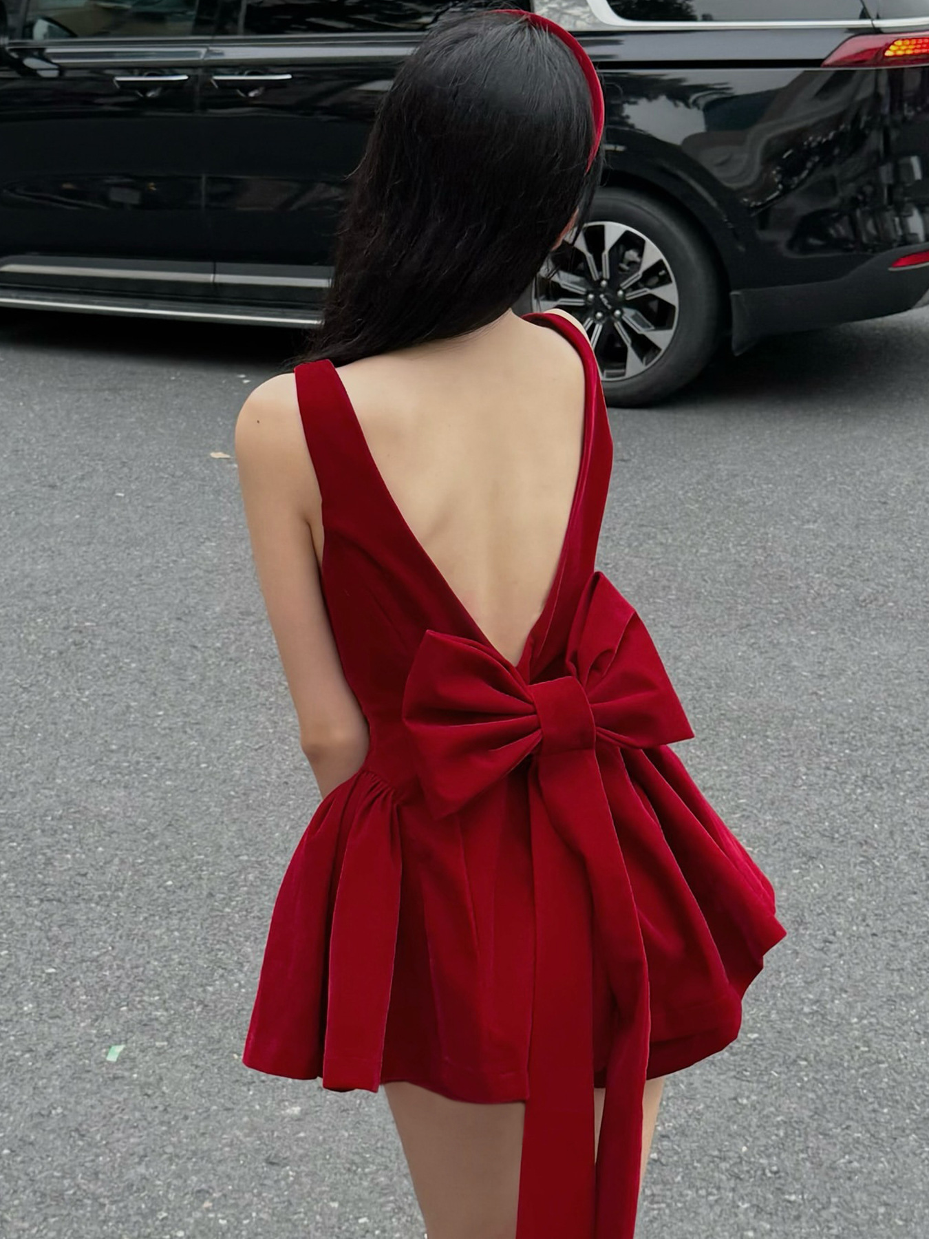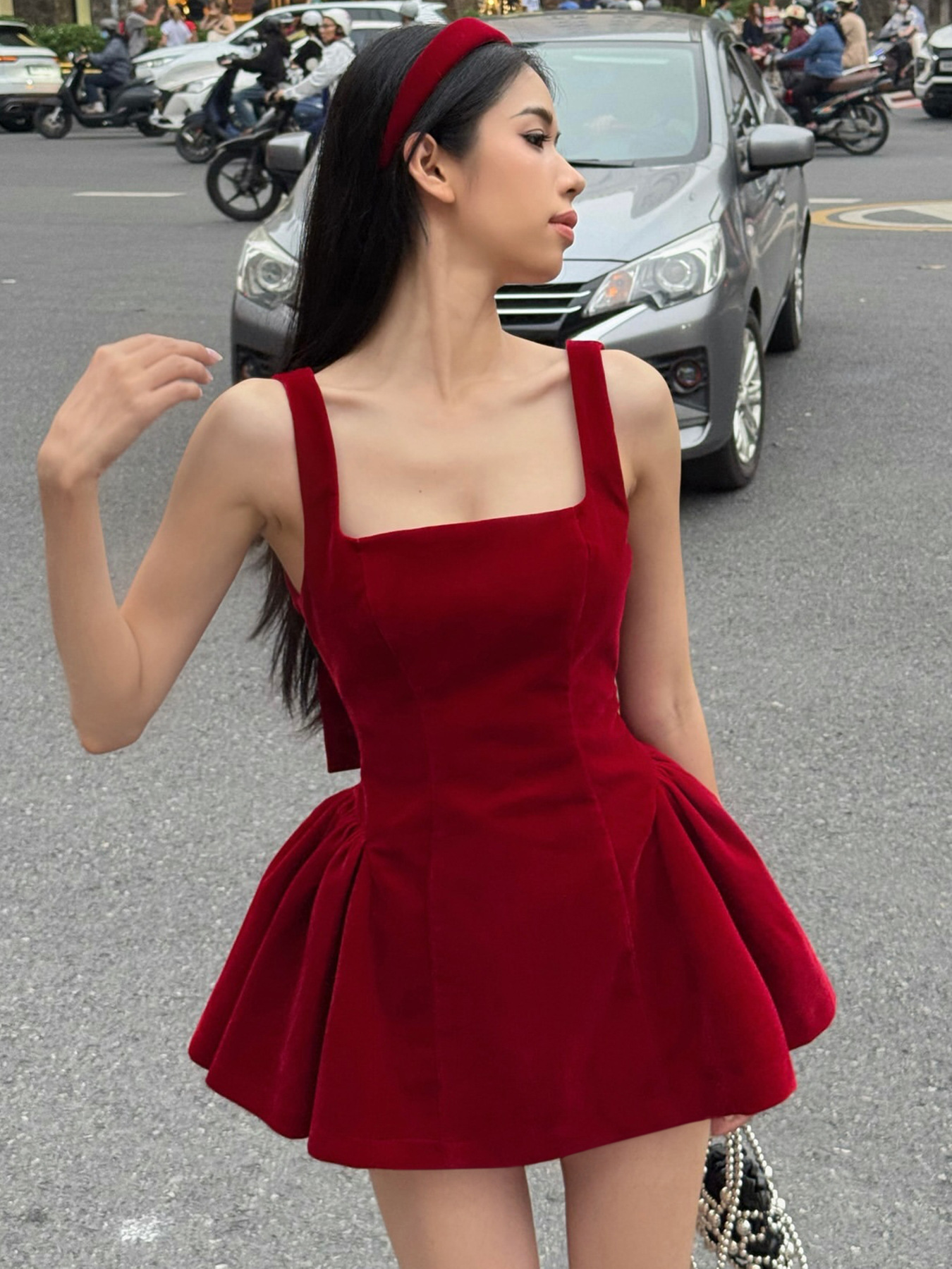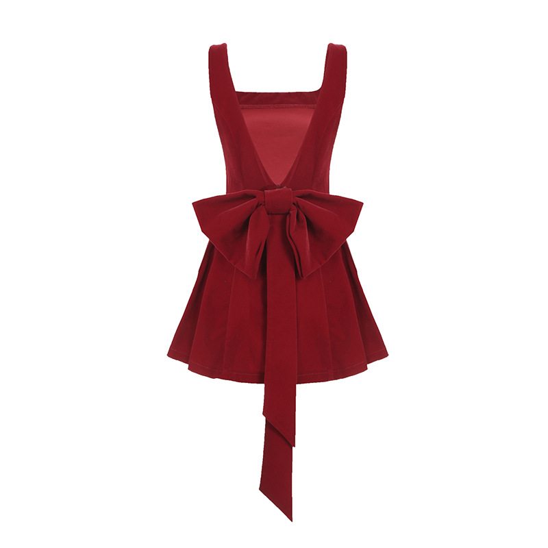2025 spring new French red suspender design sense halter bow tutu skirt girl versatile waist skirt