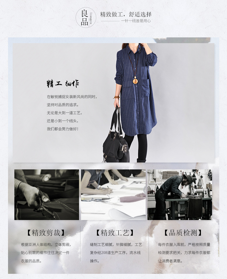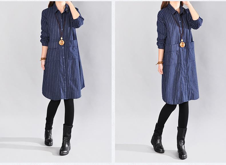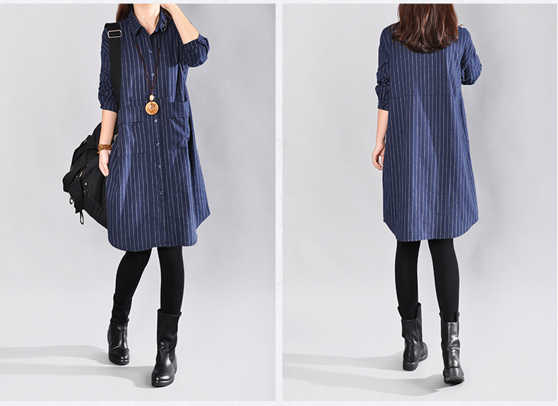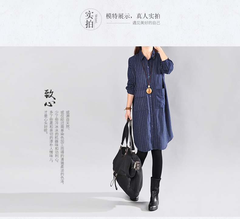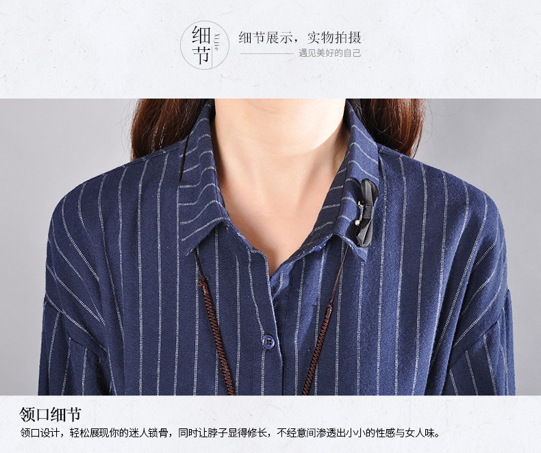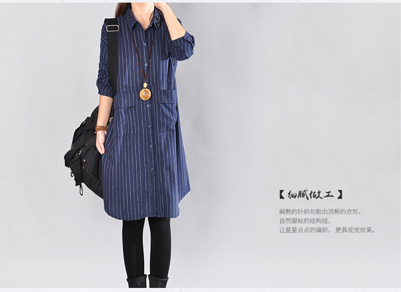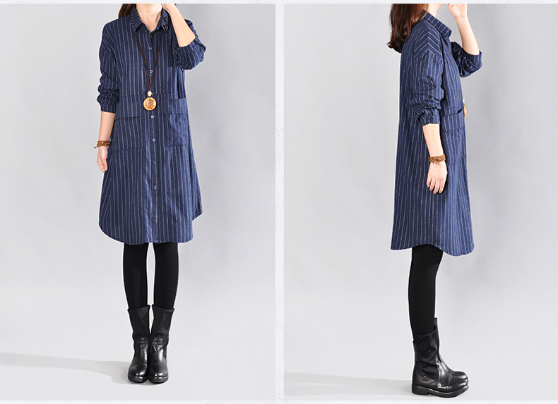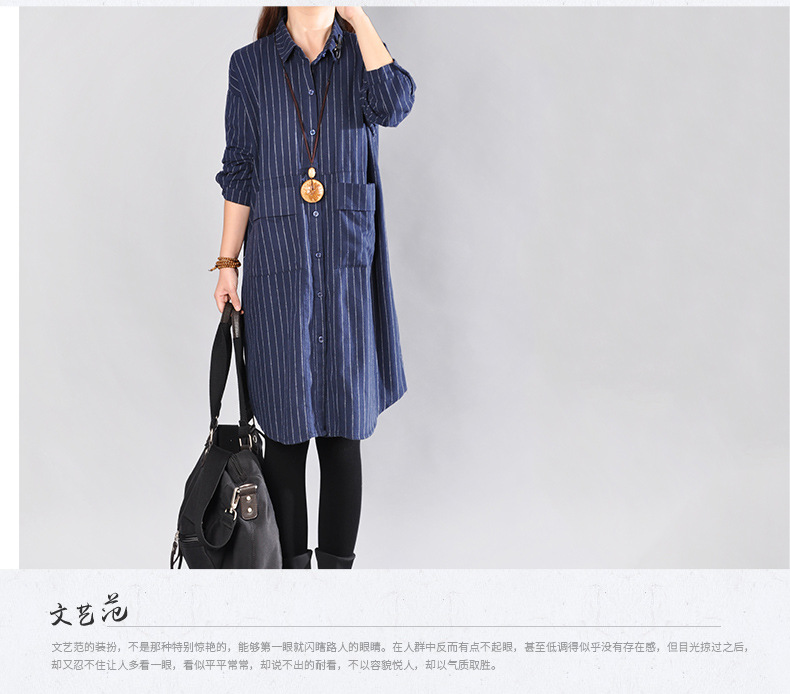 2025 Spring New Literary Loose Splicing Striped Lapel Long Sleeve Shirt Skirt Women's Medium and Long Shirt #9227 #