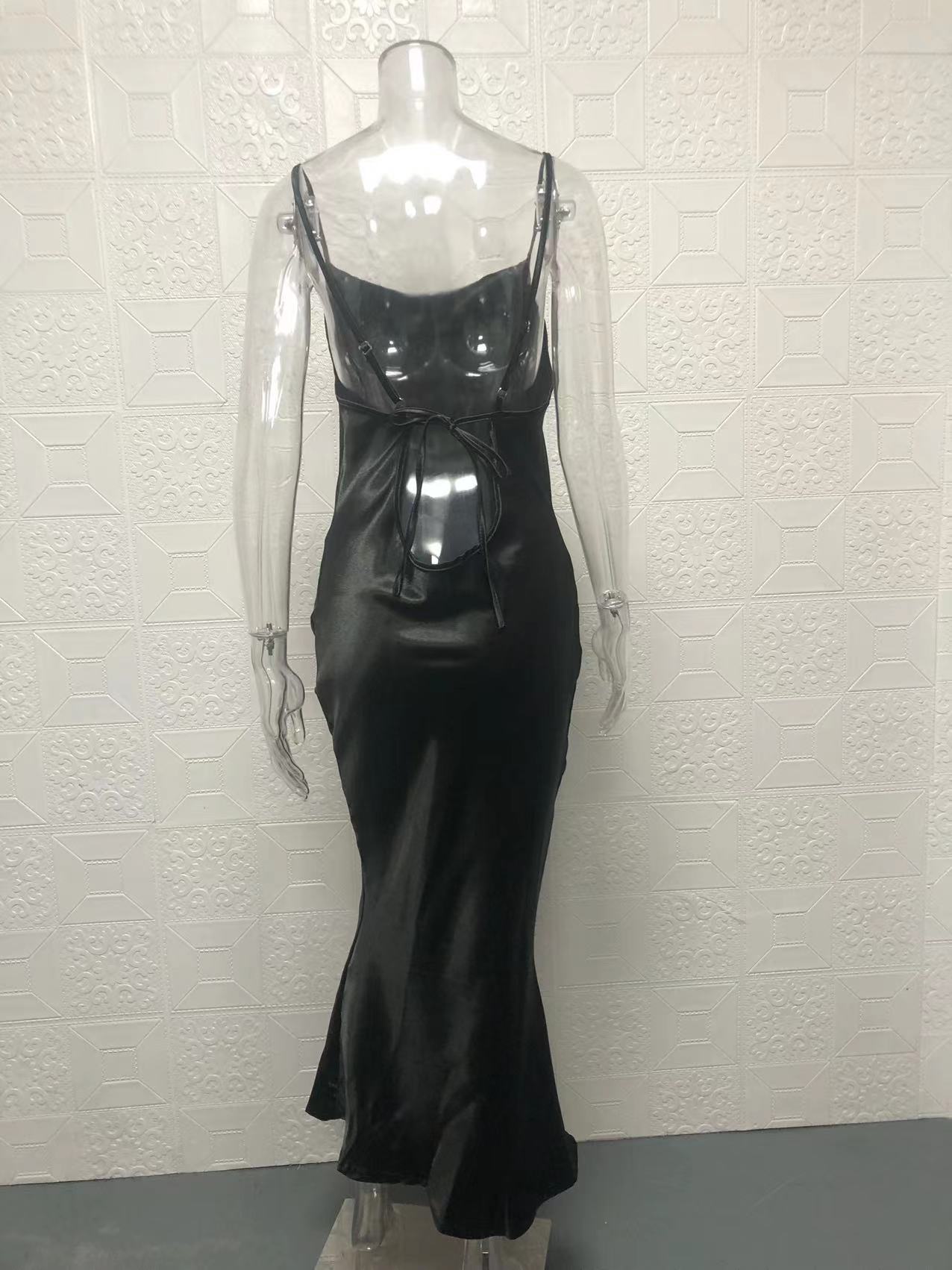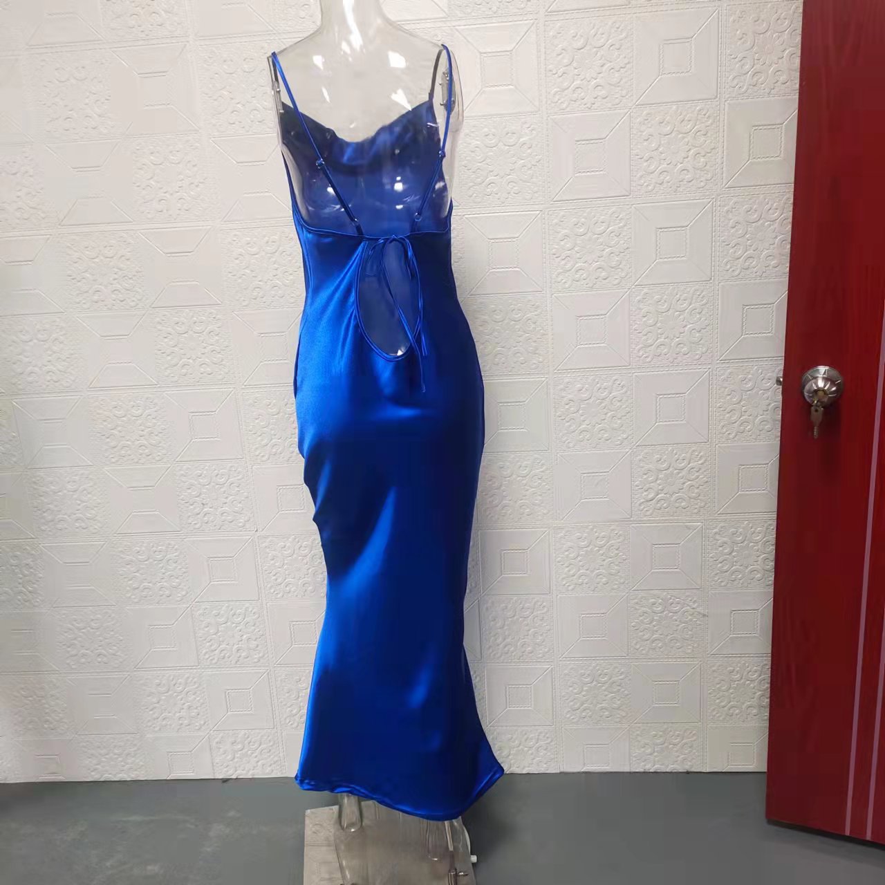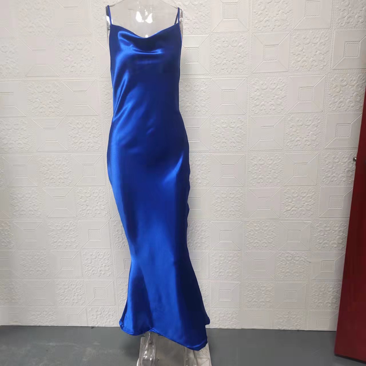 2025 Summer Amazon AliExpress Solid Color Satin Temperament Suspender Step Fishtail Dress Dress Female Elegance