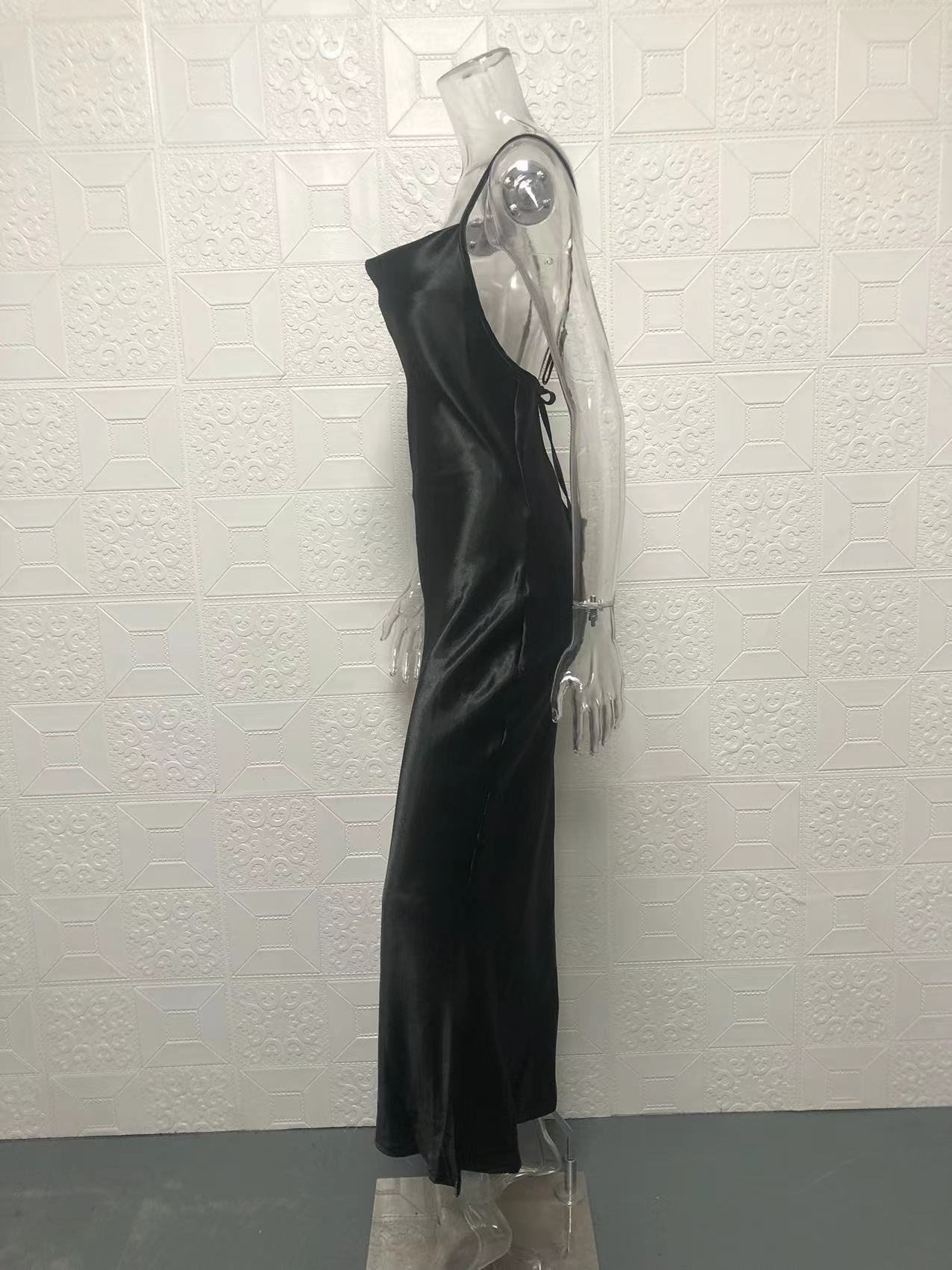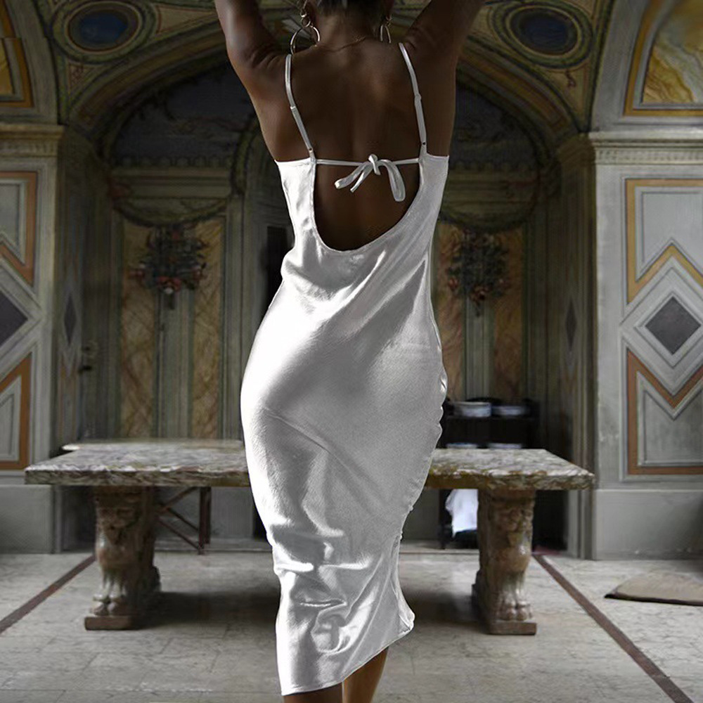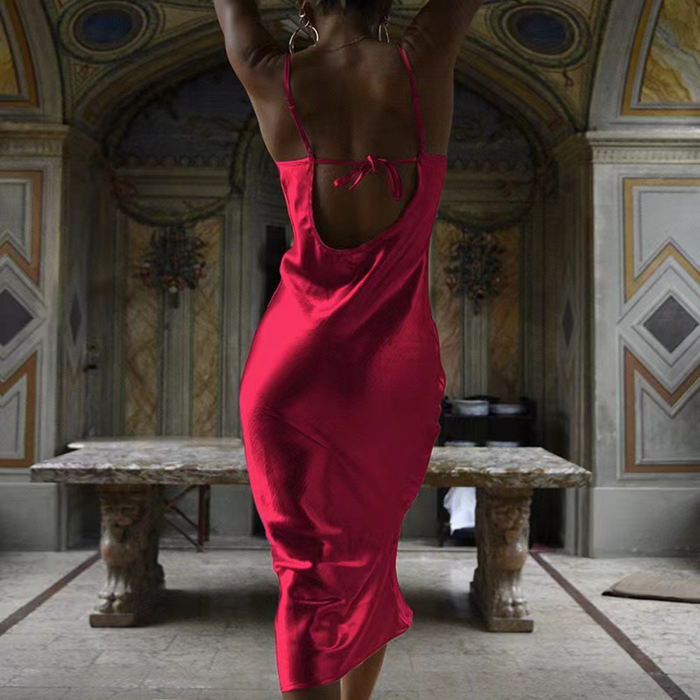 2025 Summer Amazon AliExpress Solid Color Satin Temperament Suspender Step Fishtail Dress Dress Female Elegance
