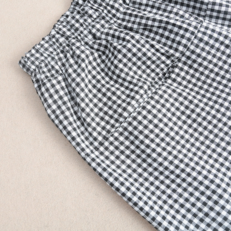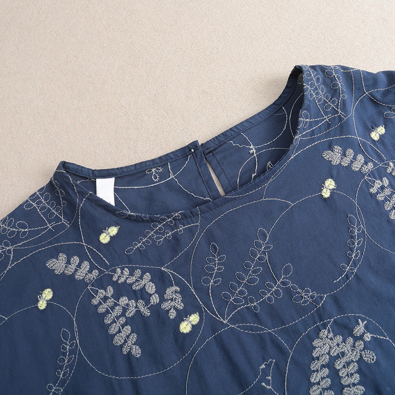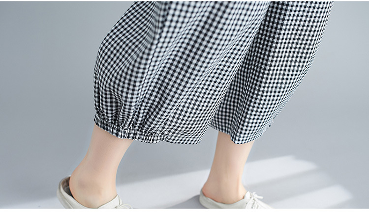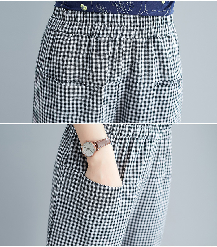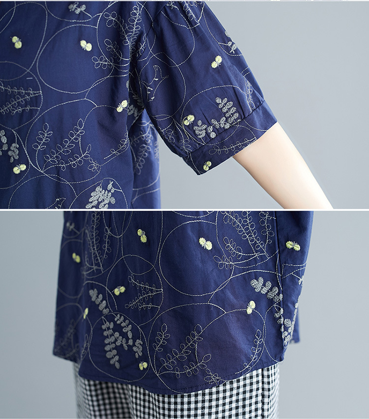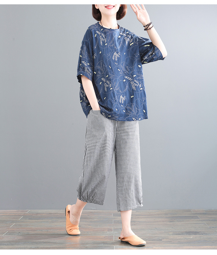 2025 summer new cotton and linen large size literary and retro loose embroidered top + plaid pants set #5541
