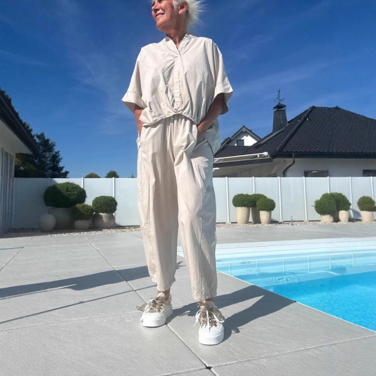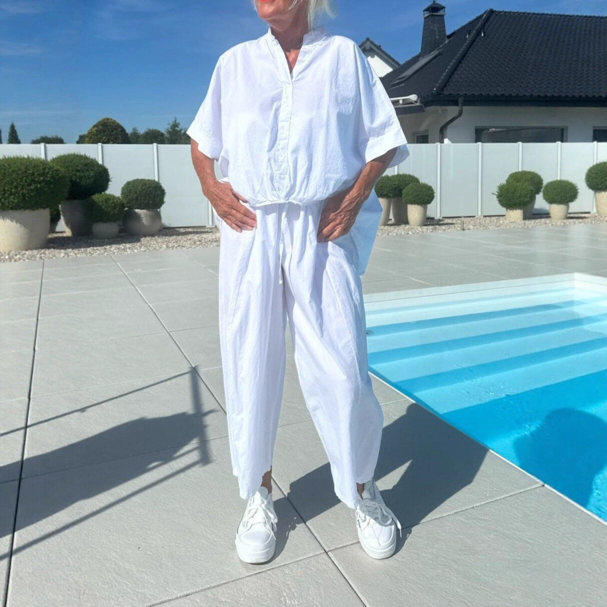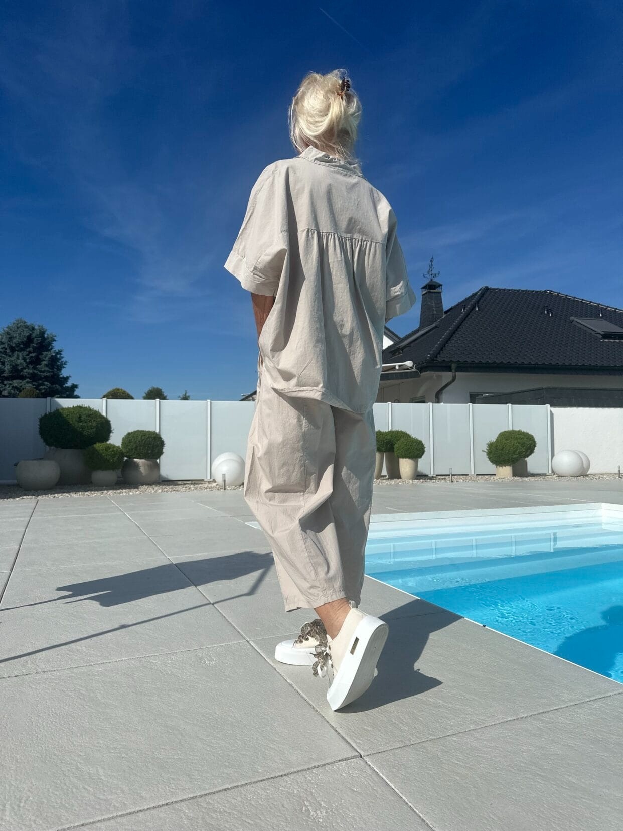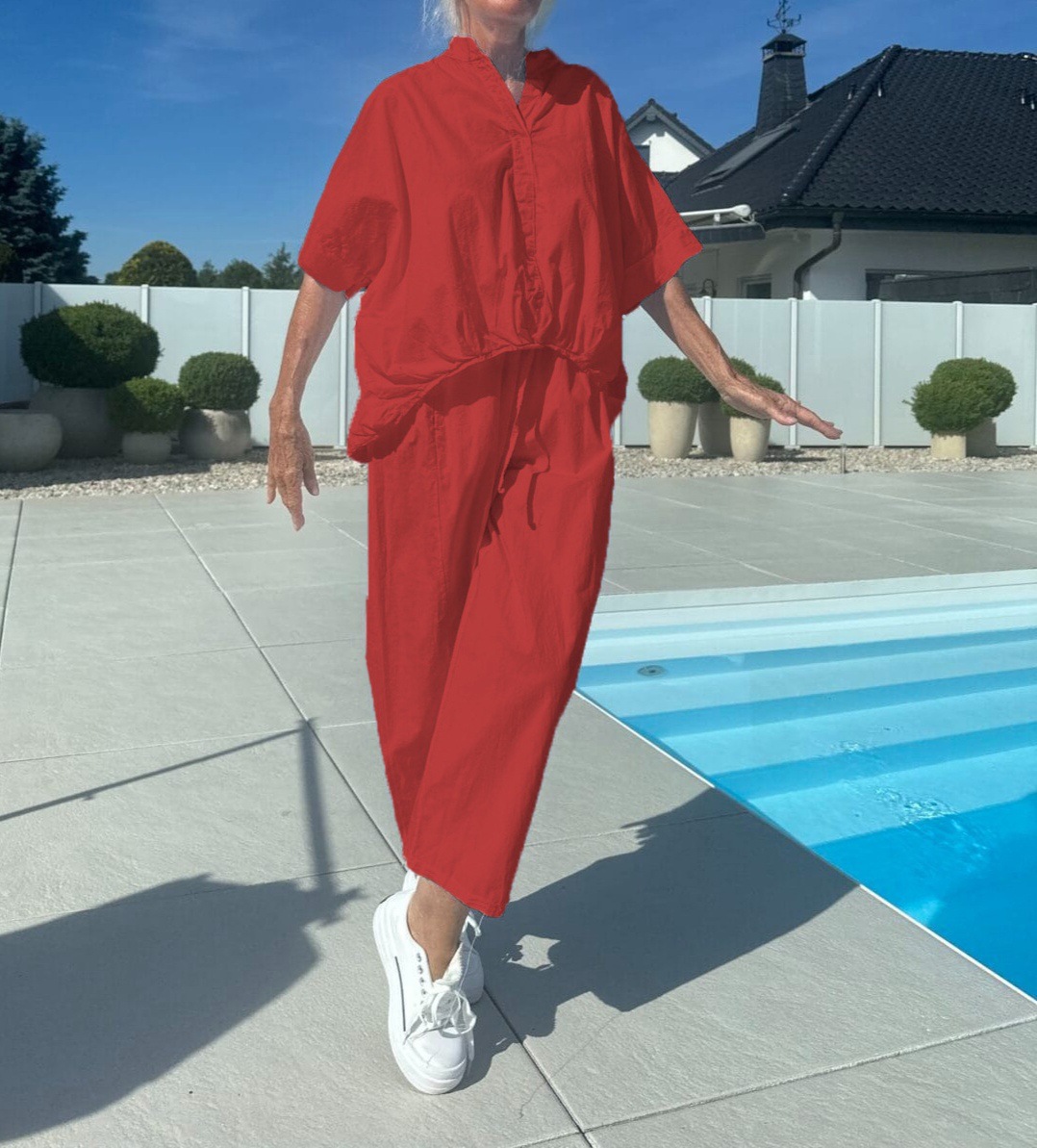 2025 summer new European and American cross-border Amazon simple solid color lapel short-sleeved fashion casual shirt set