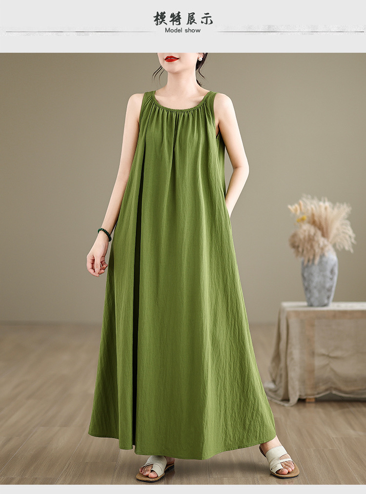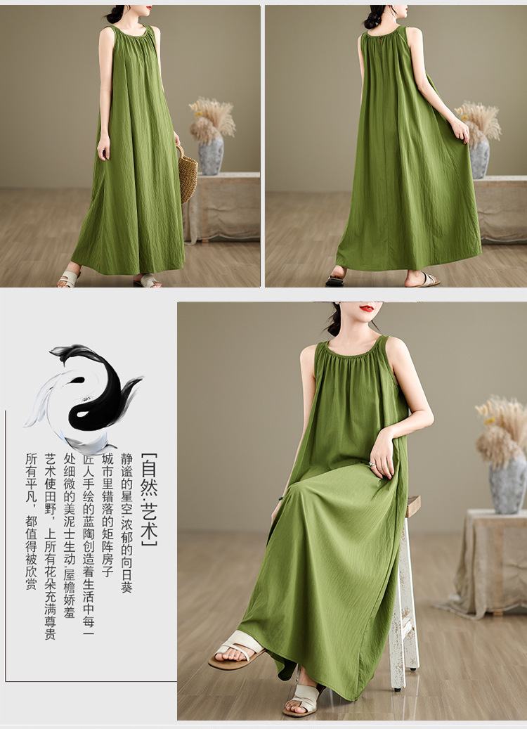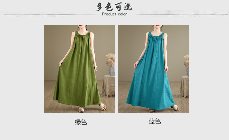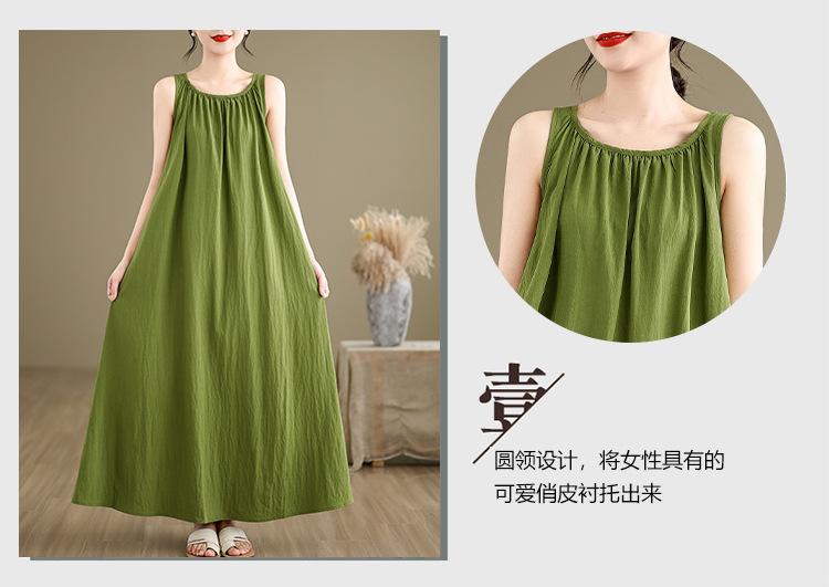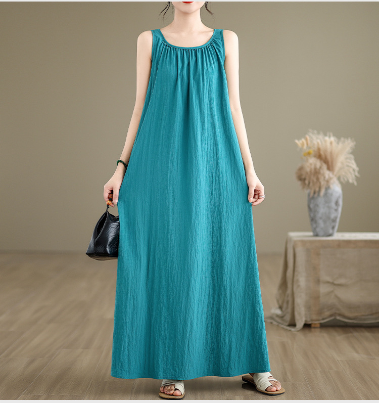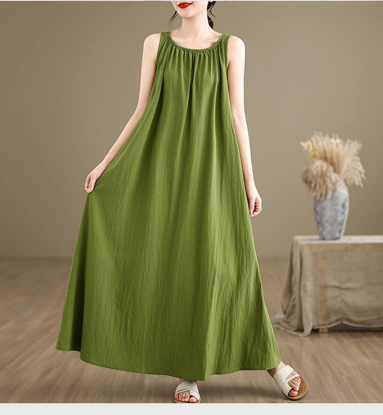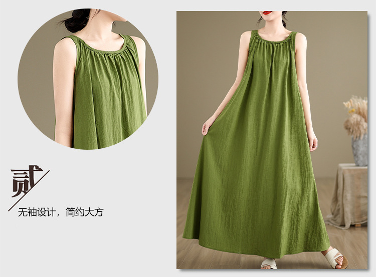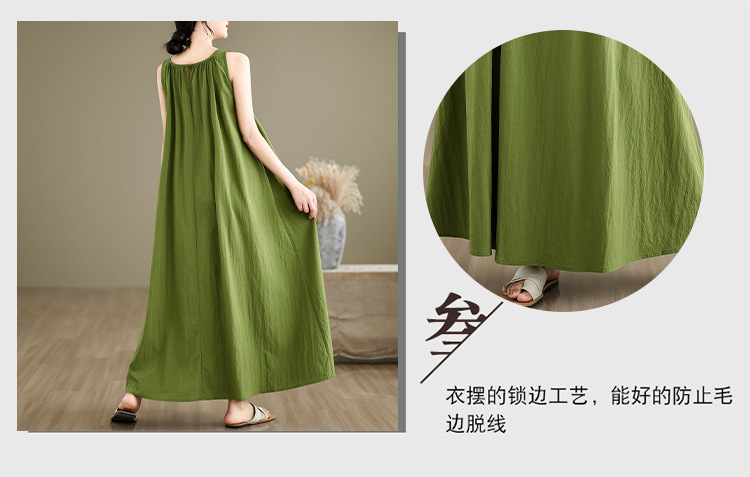 2025 summer new literary and retro loose sleeveless medium and long dress women