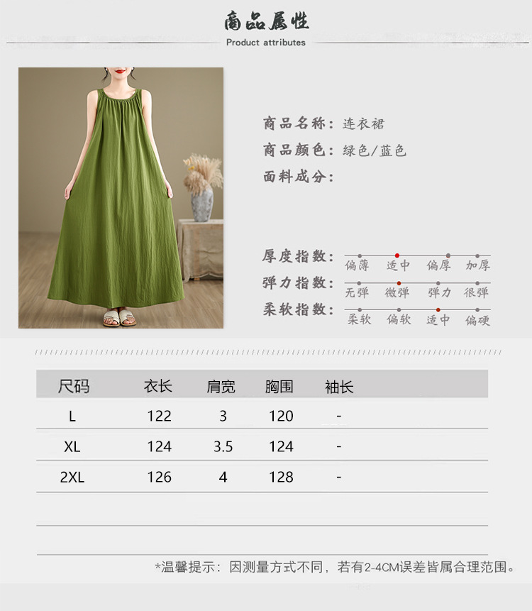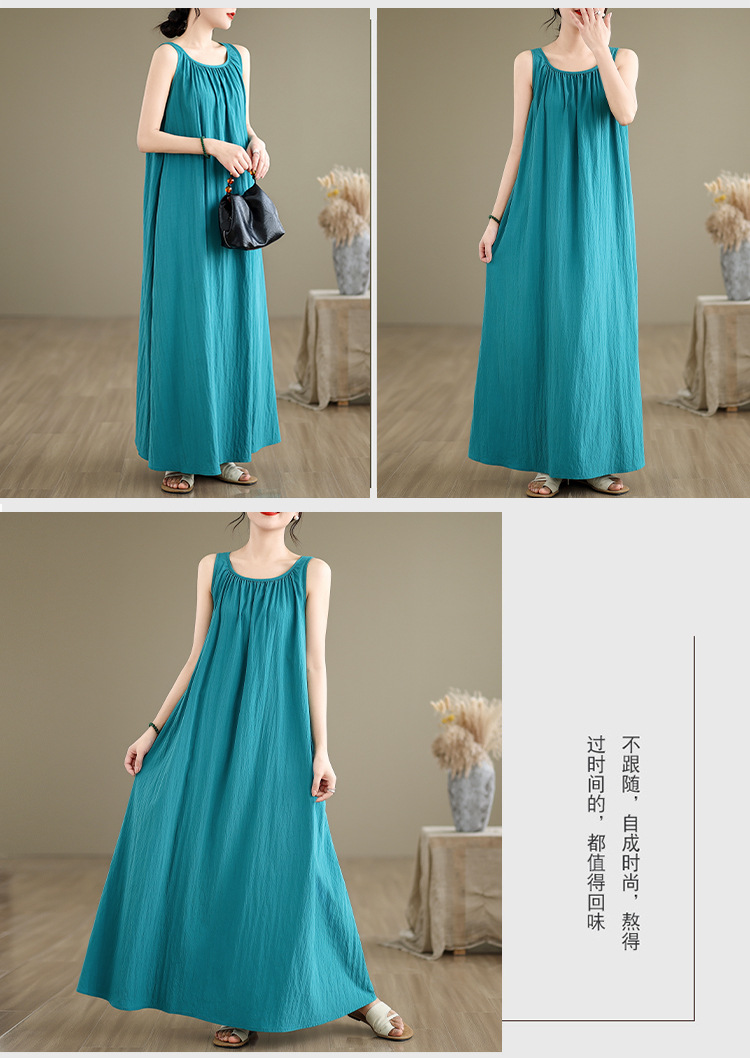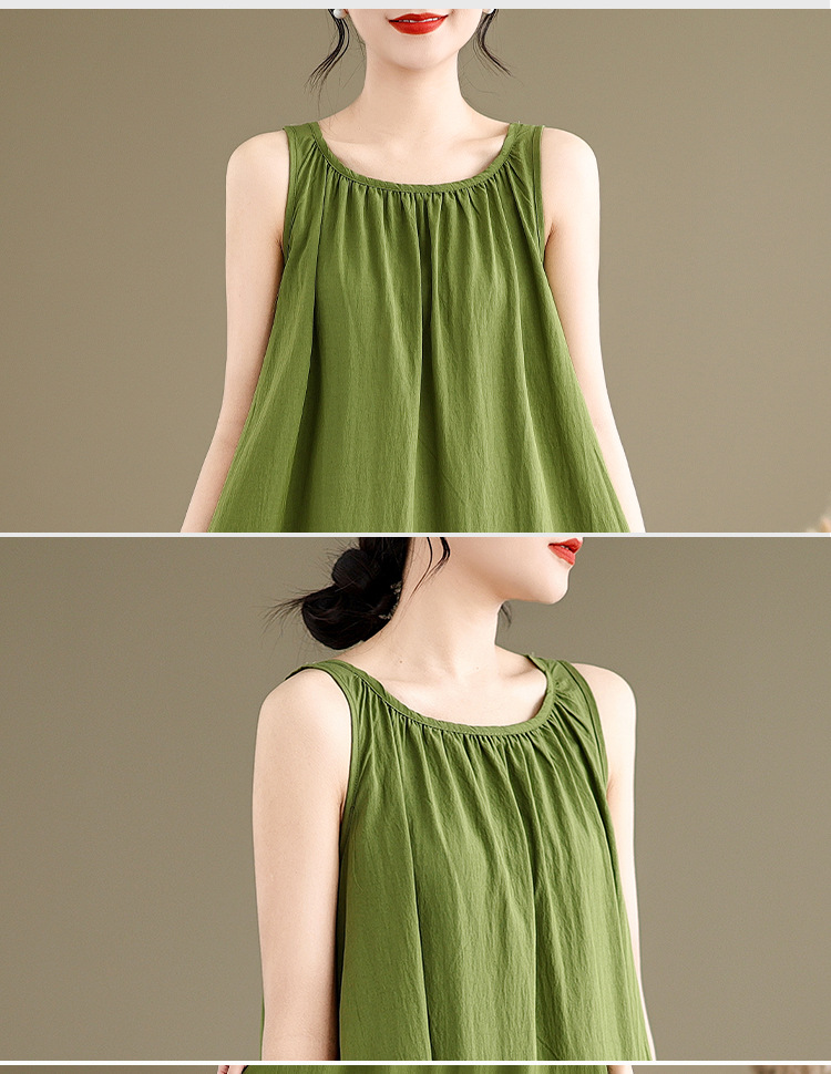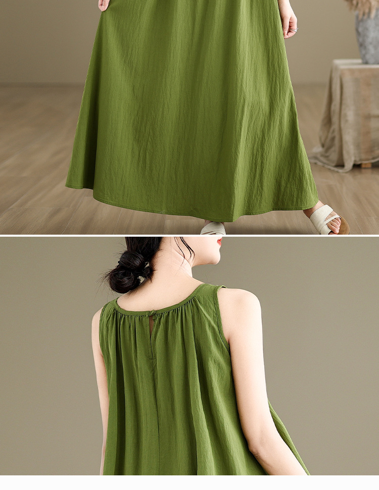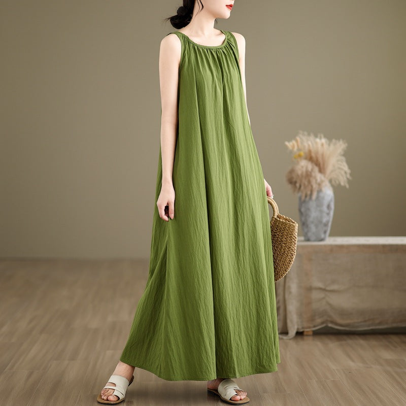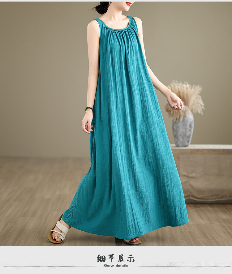 2025 summer new literary and retro loose sleeveless medium and long dress women
