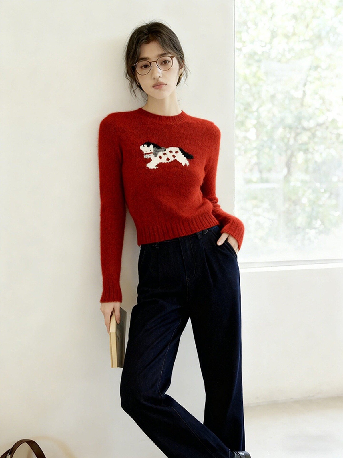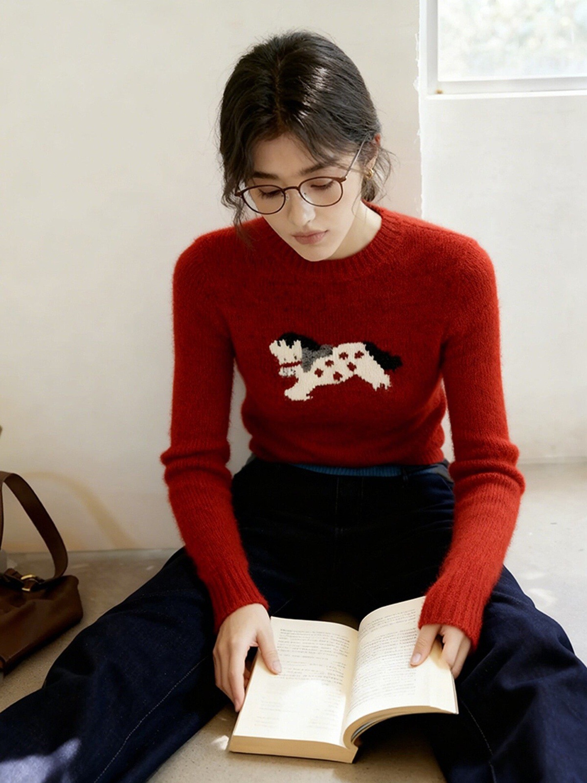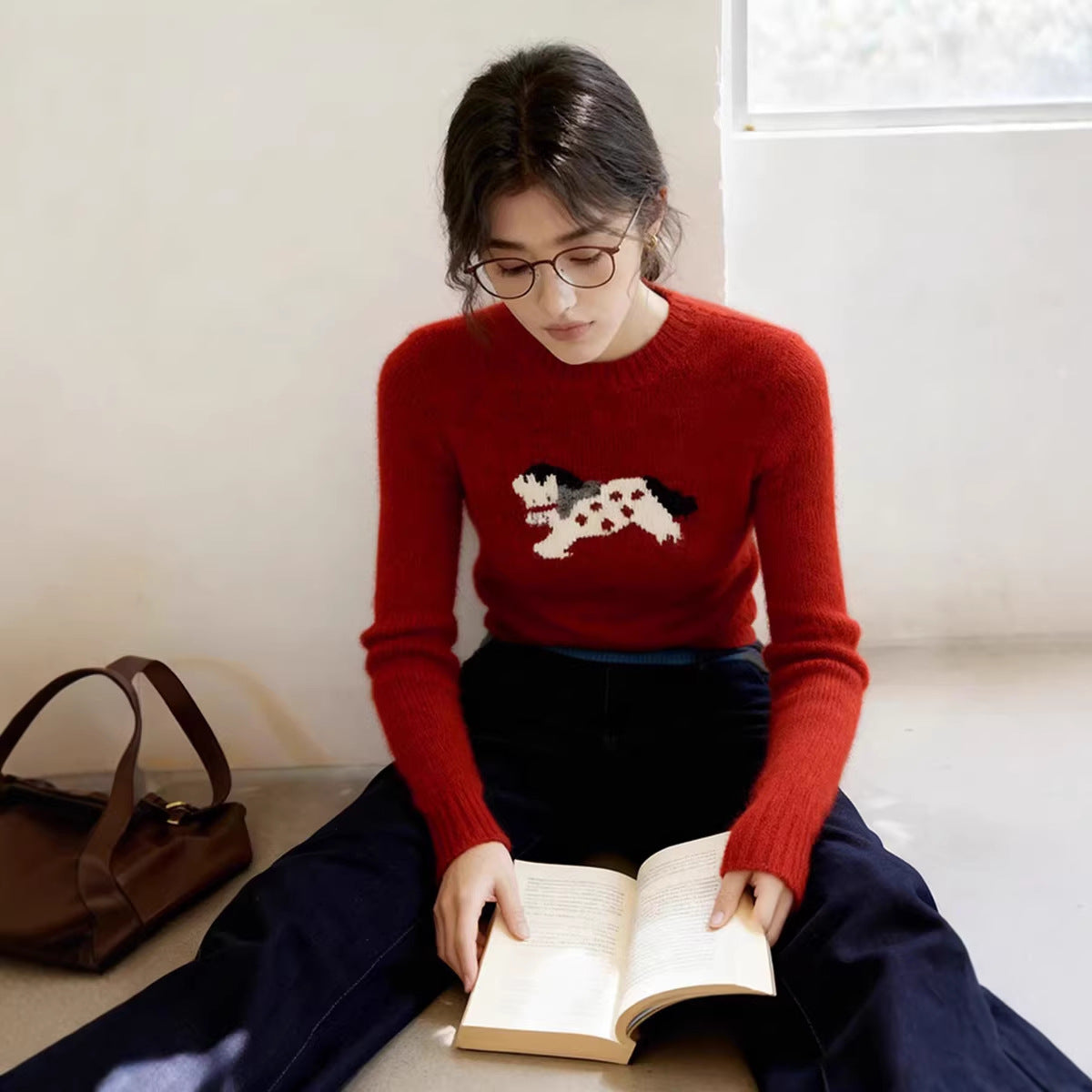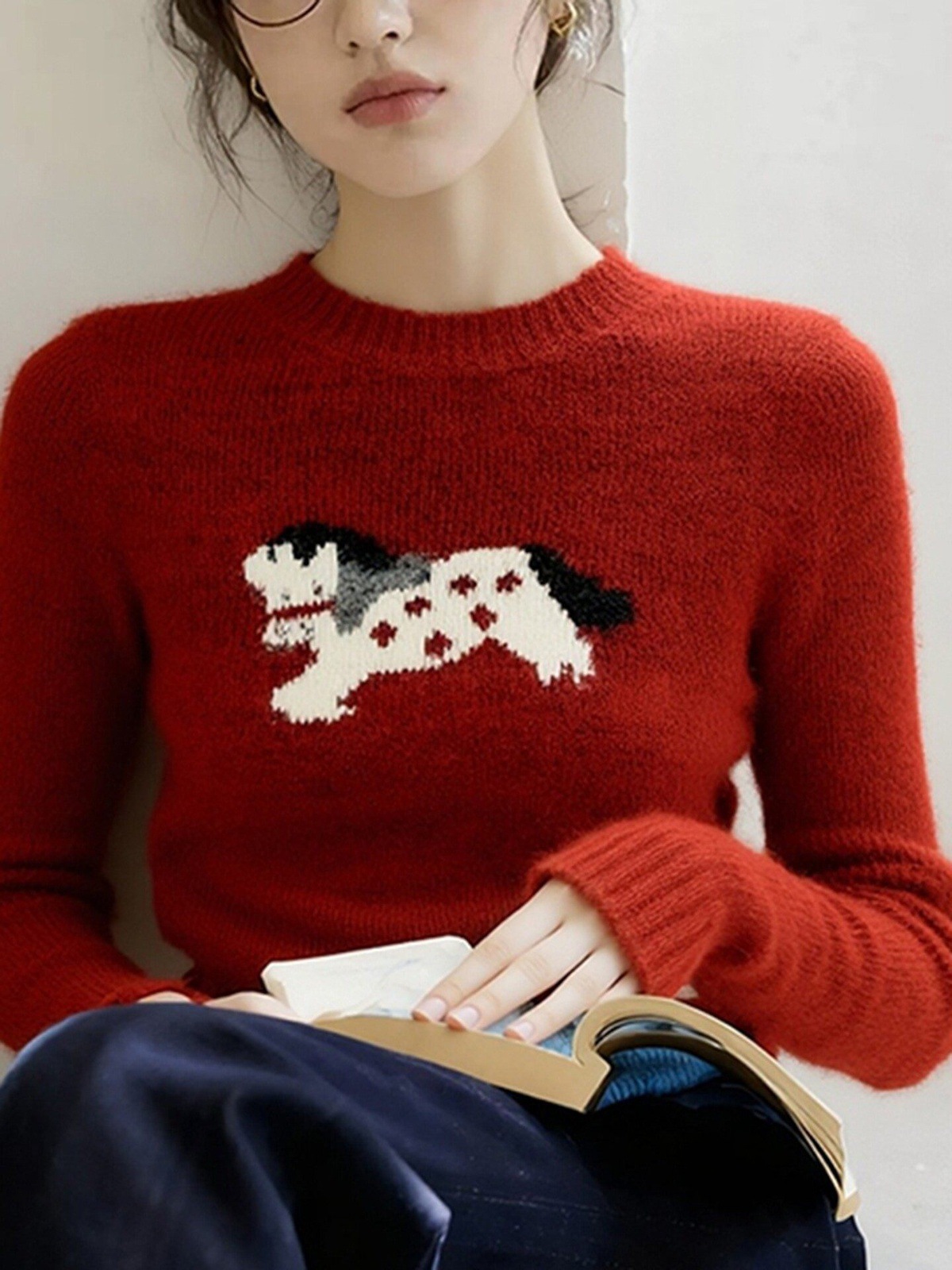 2025 winter senior feeling super good-looking soft waxy lazy wind age reduction unique relaxation New Year's red knitted sweater women