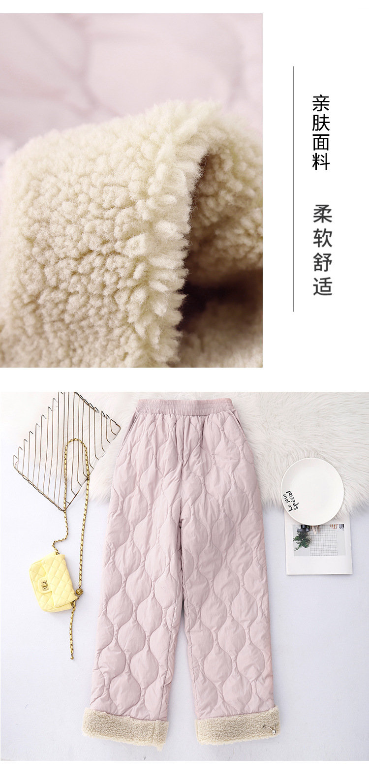 20252 winter new cotton pants casual pants lamb wool splicing cold-proof and warm outdoor pants thickened