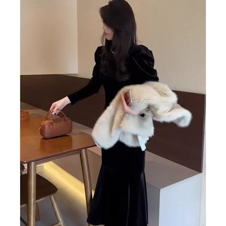 2026 autumn/winter new primed French temperament high-end figure black Korean velvet dress for women