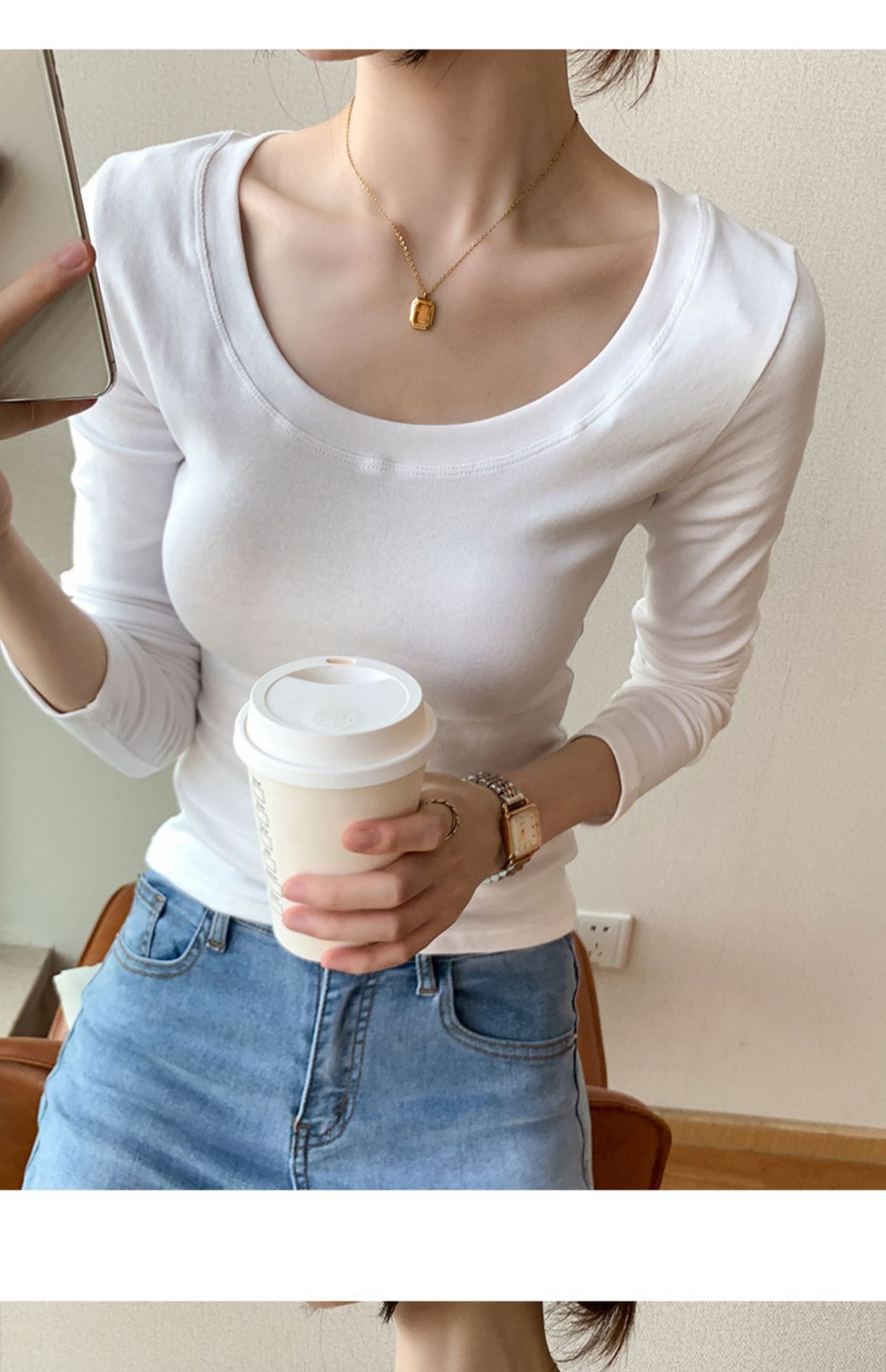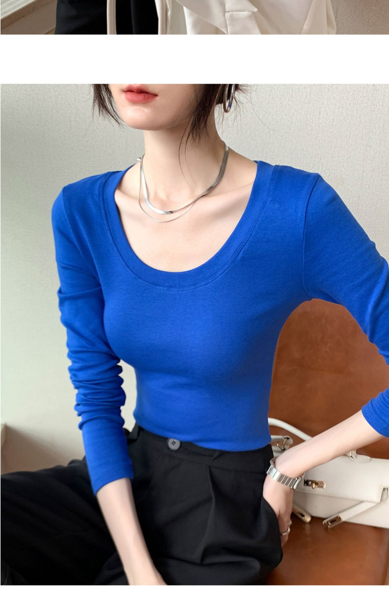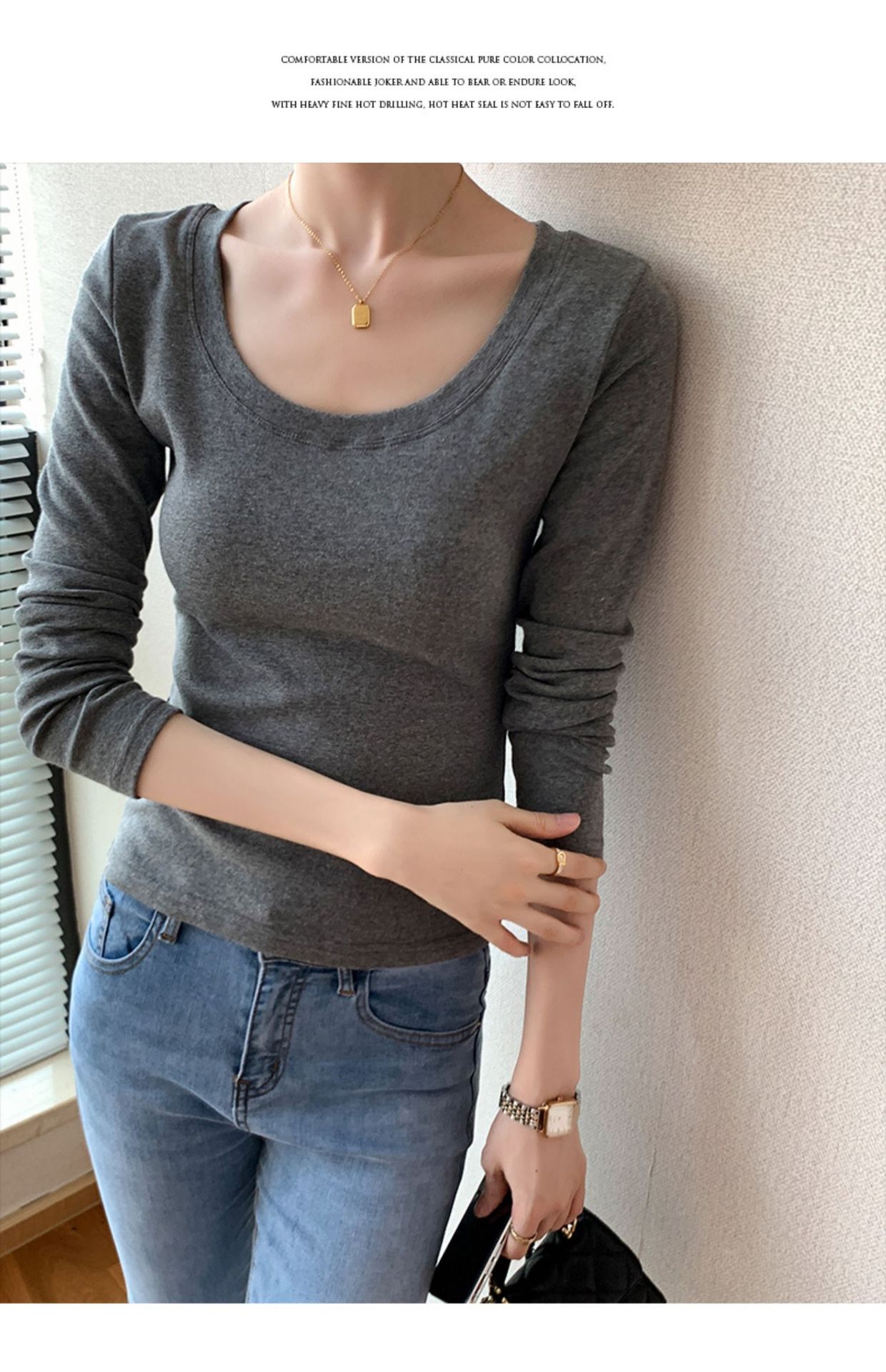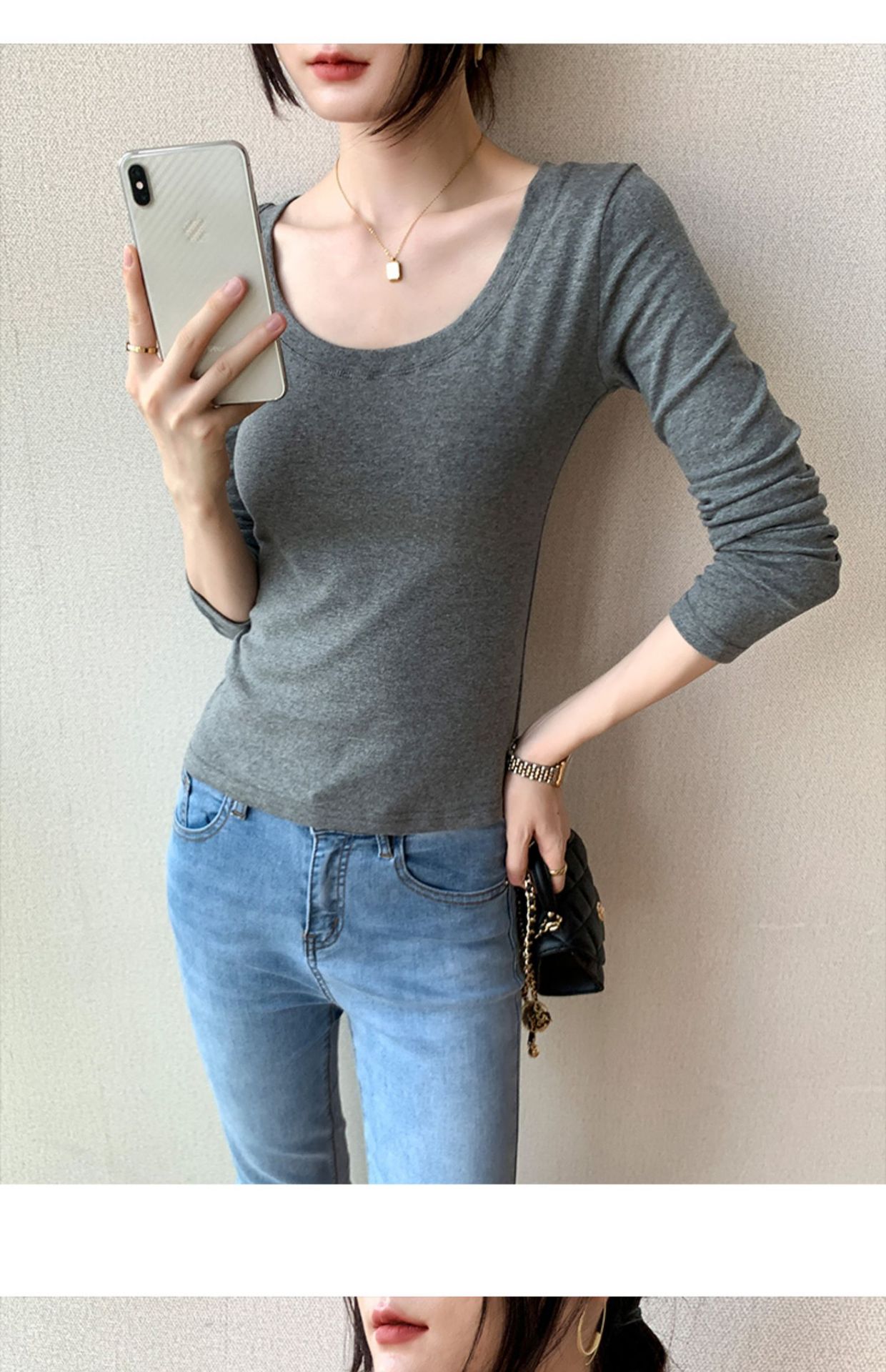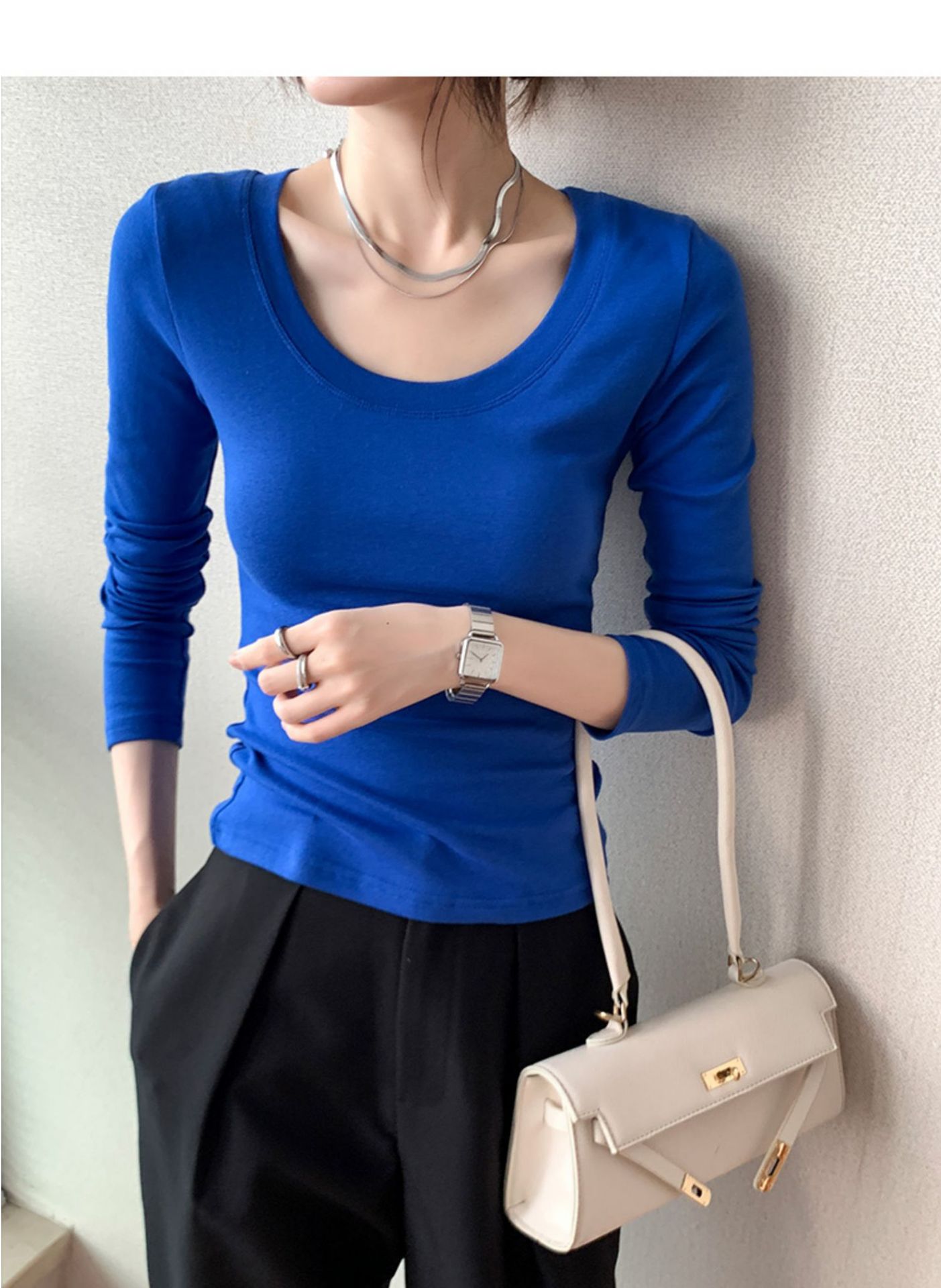230G pure cotton long-sleeved women's T-shirt front shoulder 2026 autumn clothes new slim-fitting and thin solid color large-size top bottoming shirt