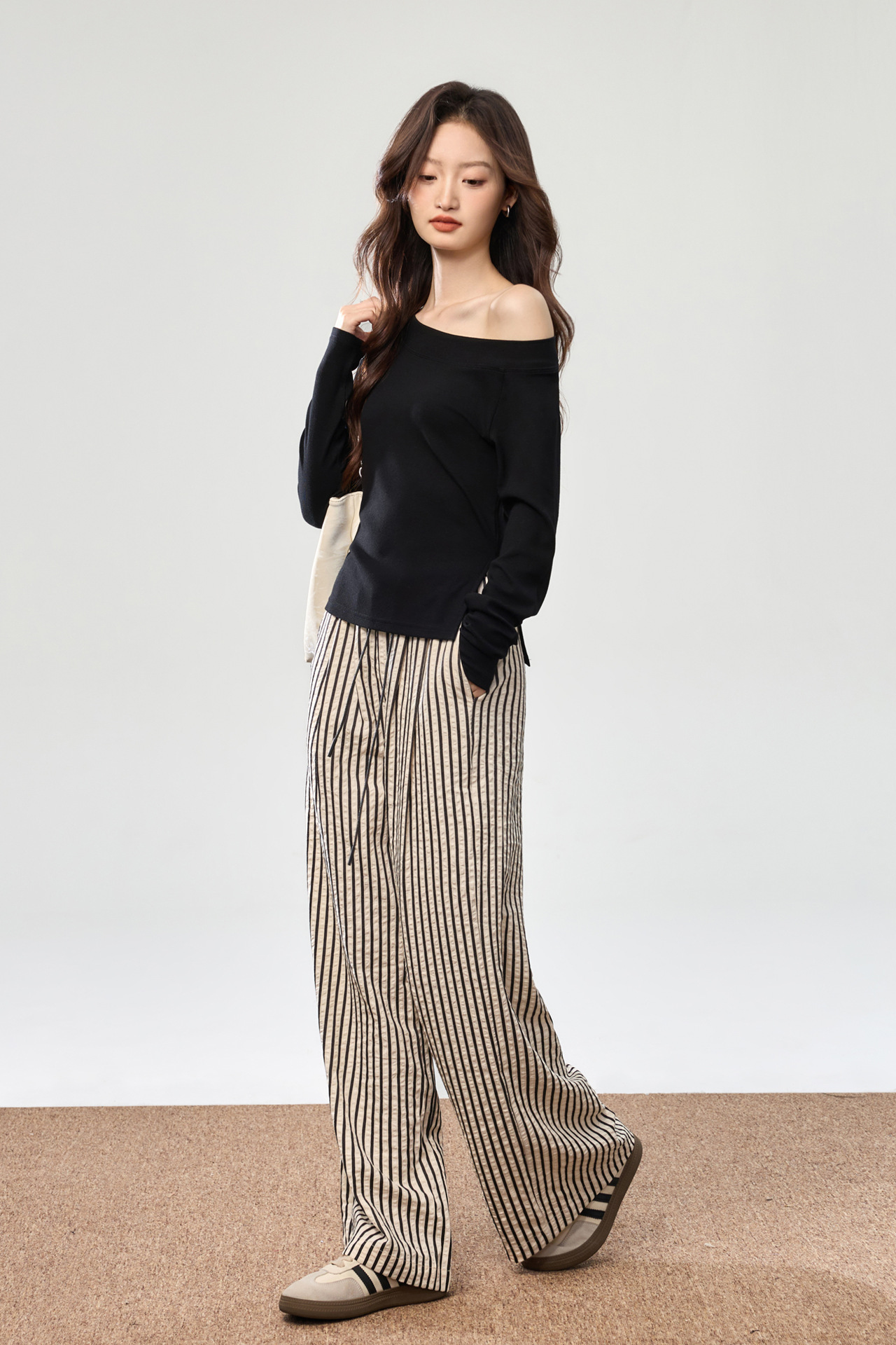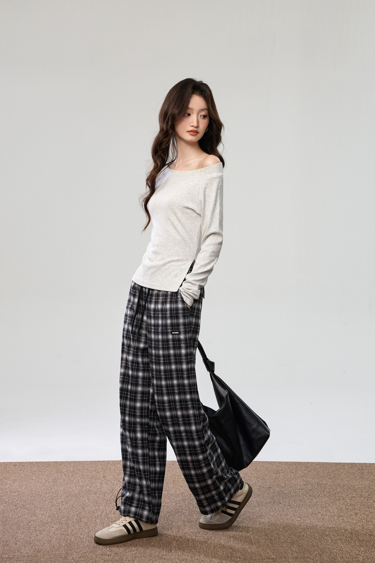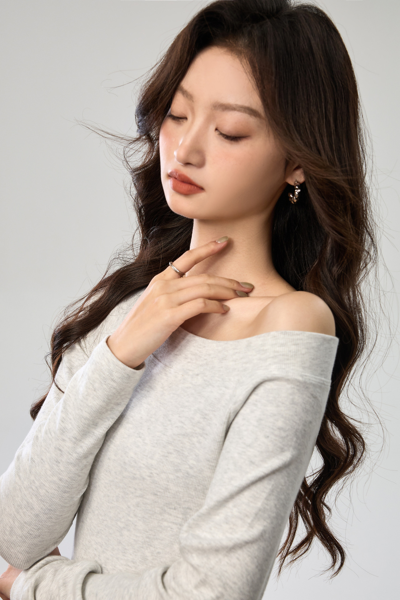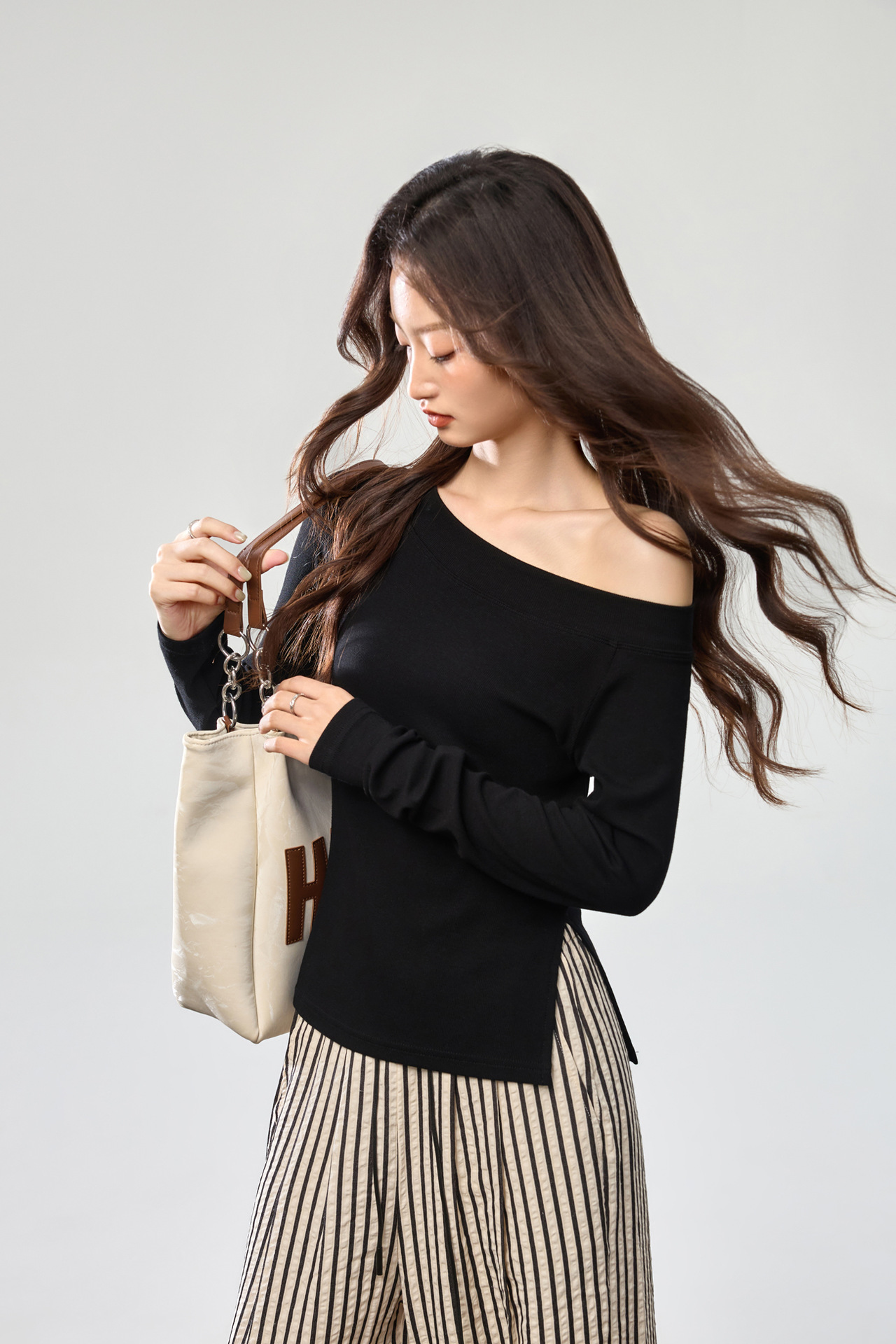 260G Youke silk, two wear one-word collar slanted shoulder temperament fashionable wear with split-ended long-sleeved T-shirt women's autumn bottoming top