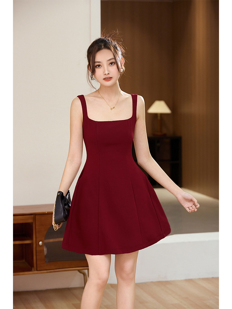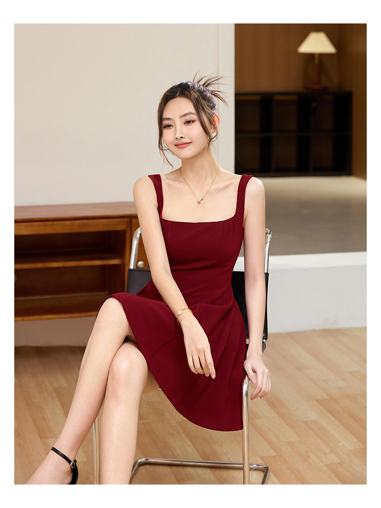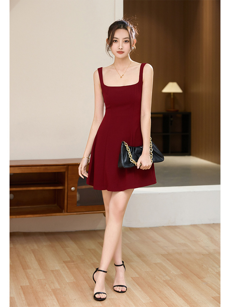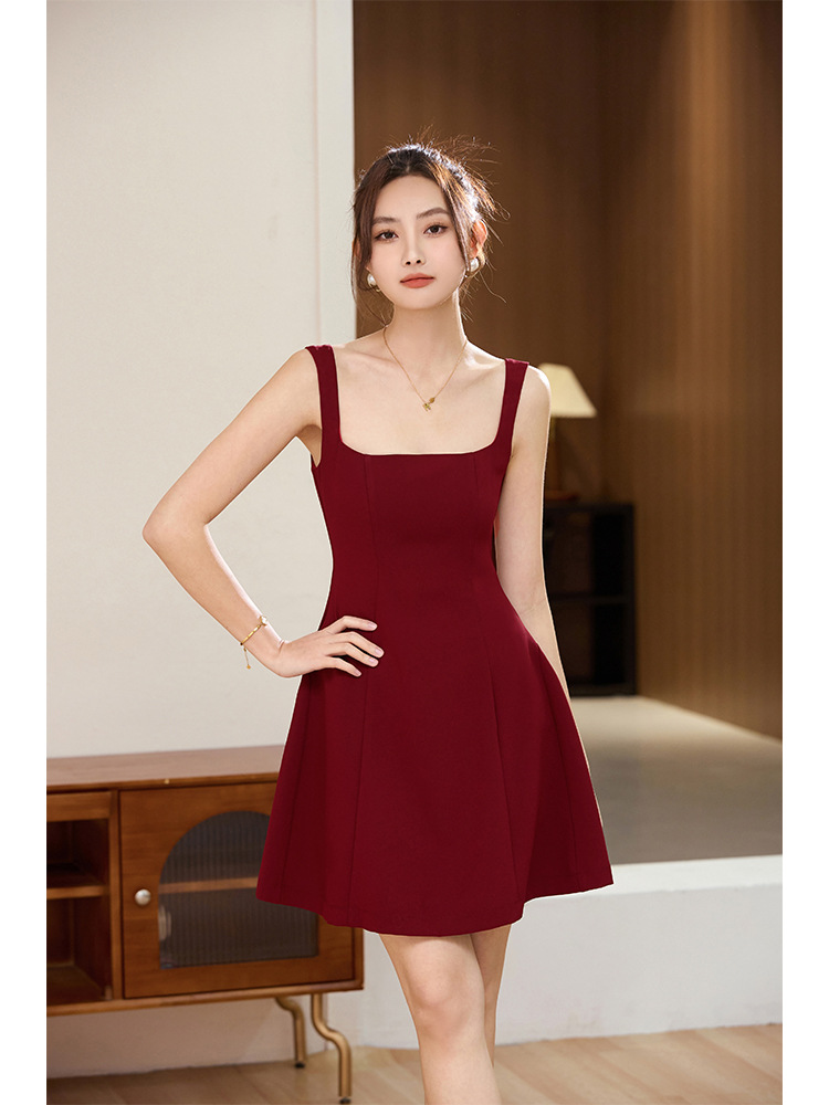 Acetic acid messy French temperament celebrity royal sister style suspender dress design sense high-end exquisite banquet small red dress