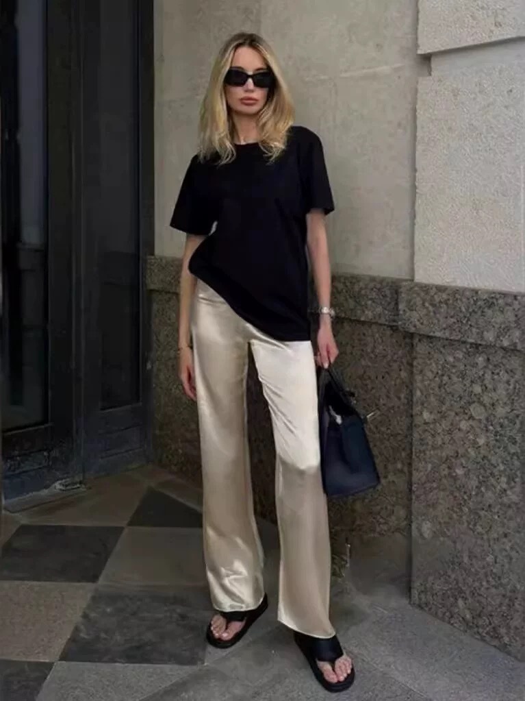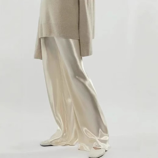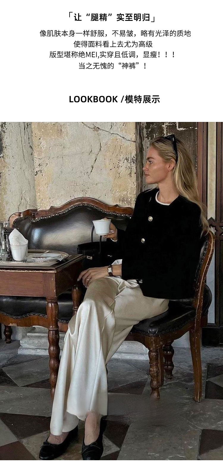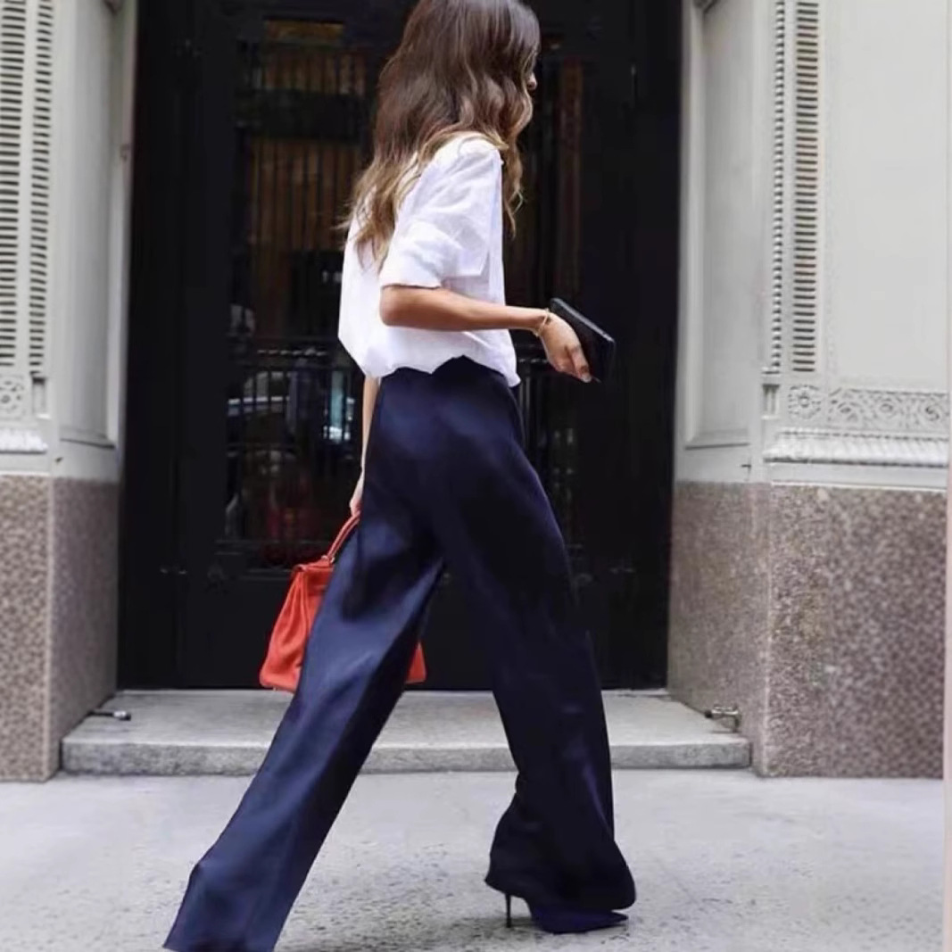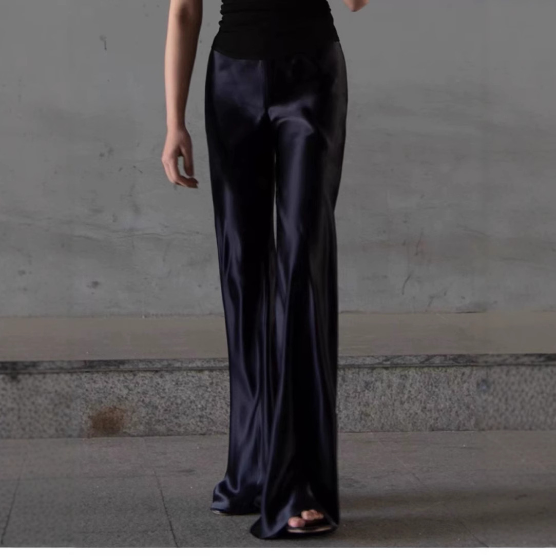 Acetic acid minimalist satin elastic waist loose slightly wide-leg pants women's drape 2026 new spring and autumn casual straight-leg pants