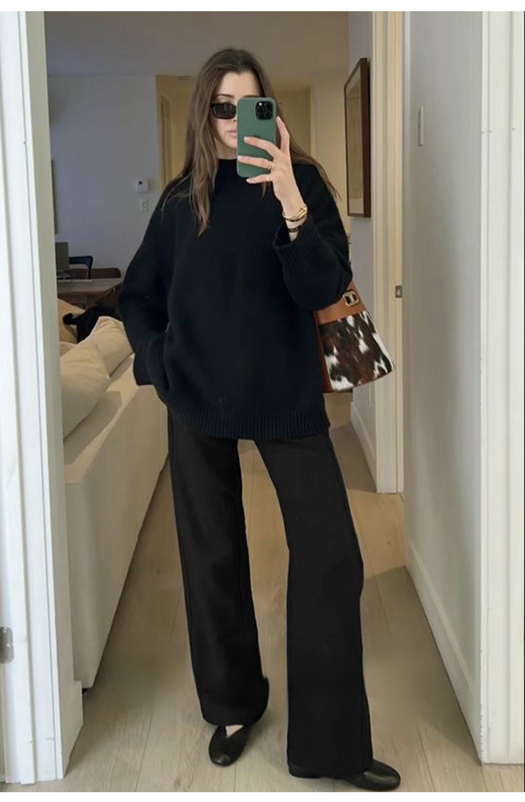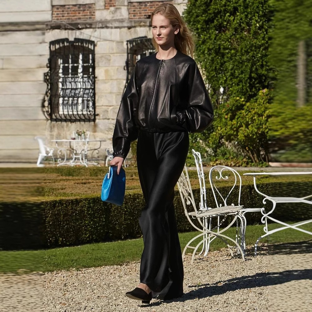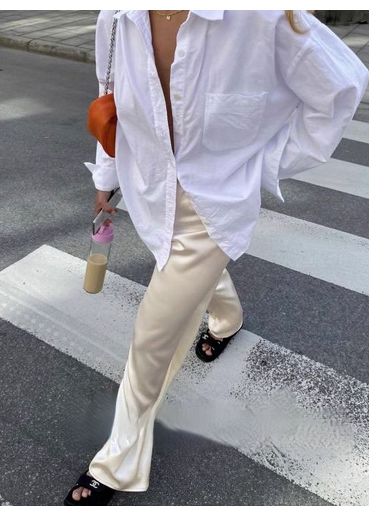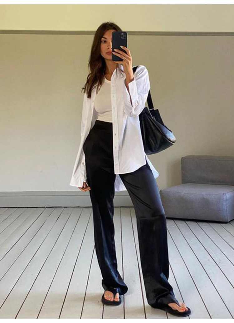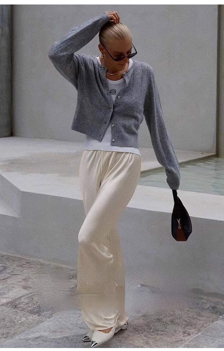 Acetic acid minimalist satin elastic waist loose slightly wide-leg pants women's drape 2026 new spring and autumn casual straight-leg pants