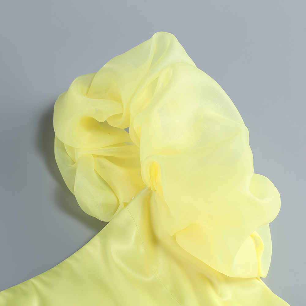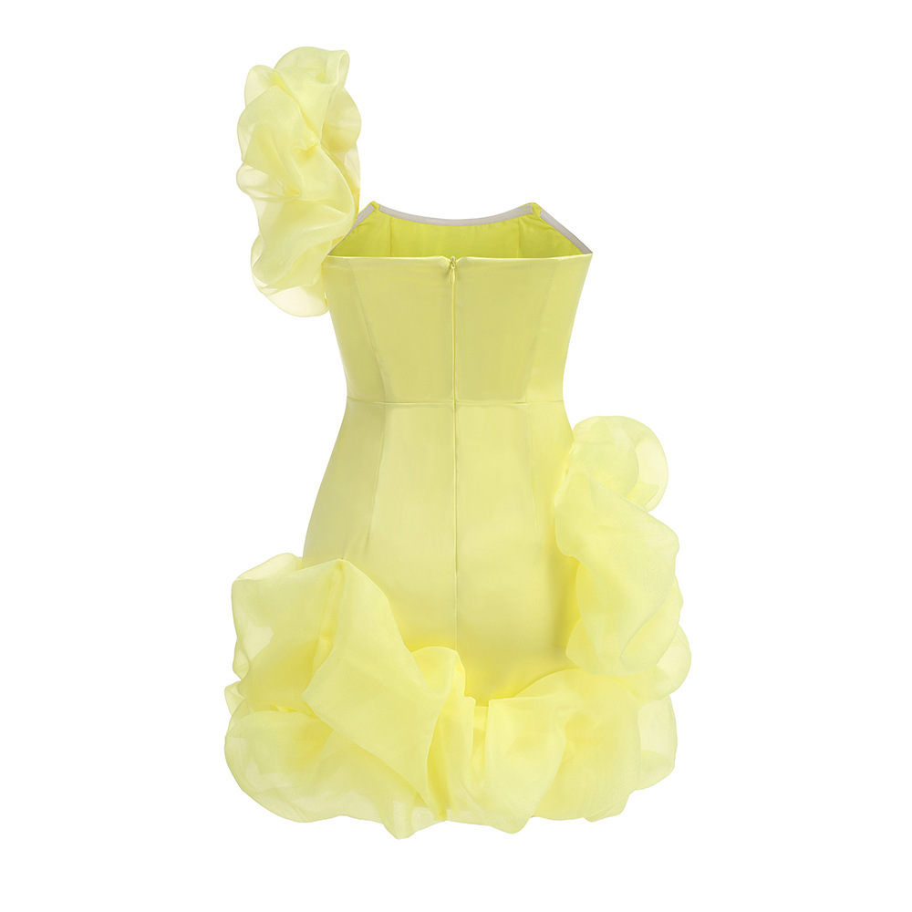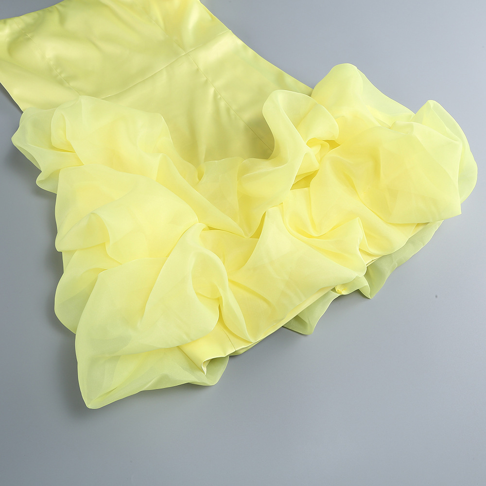 AliExpress fashion solid color banquet party evening dress short skirt women's pleated Zou ruffle edge dress elegant temperament