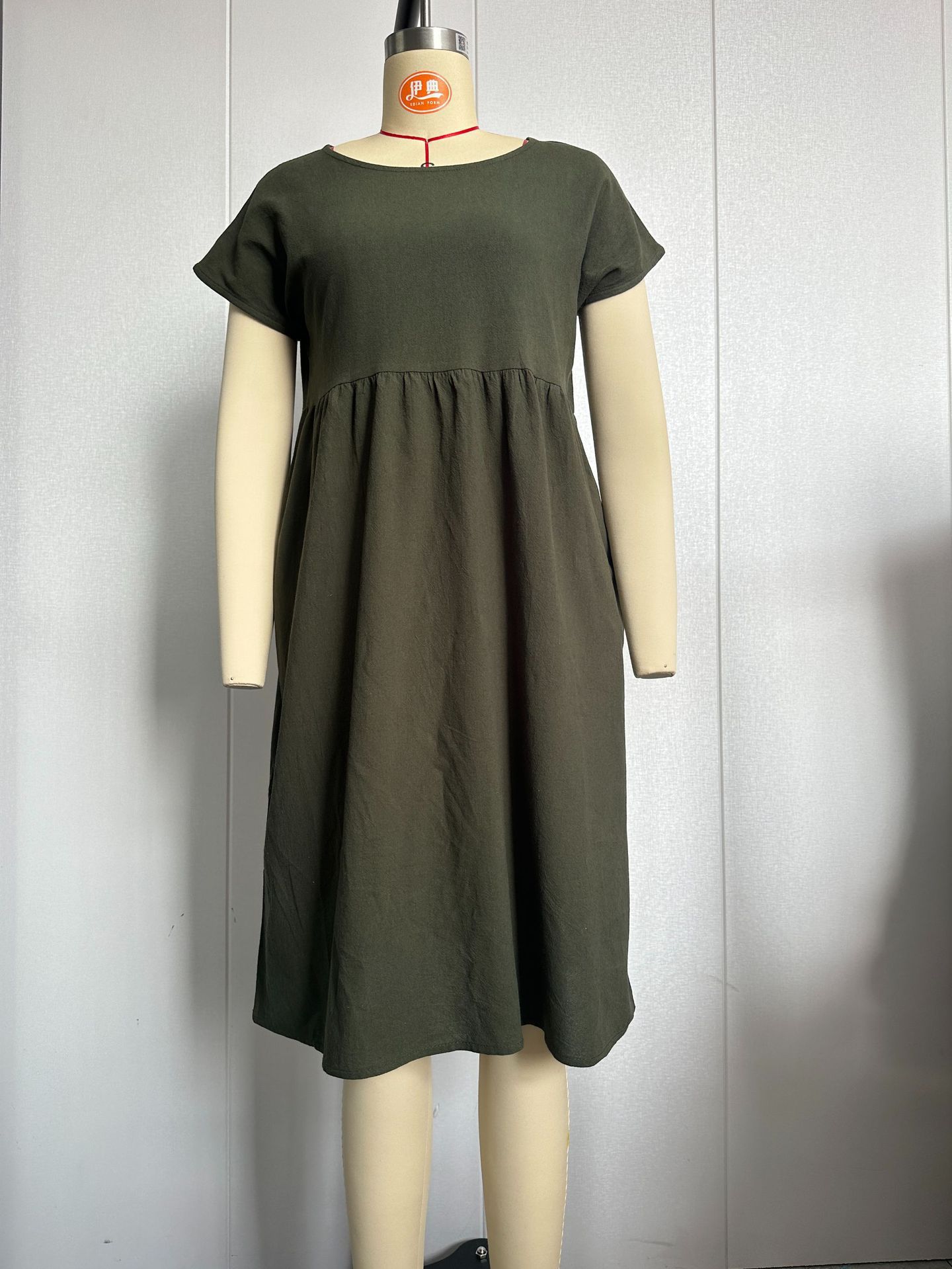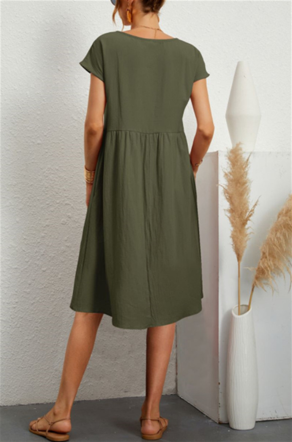 Amazon 2024 summer cross-border supply OL temperament women's clothing cotton round neck A-shaped skirt dress manufacturer wholesale women