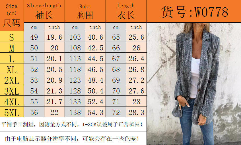 Amazon, cross-border European and American spring and autumn new women's cardigan jacket temperament fashionable casual retro lapel suit