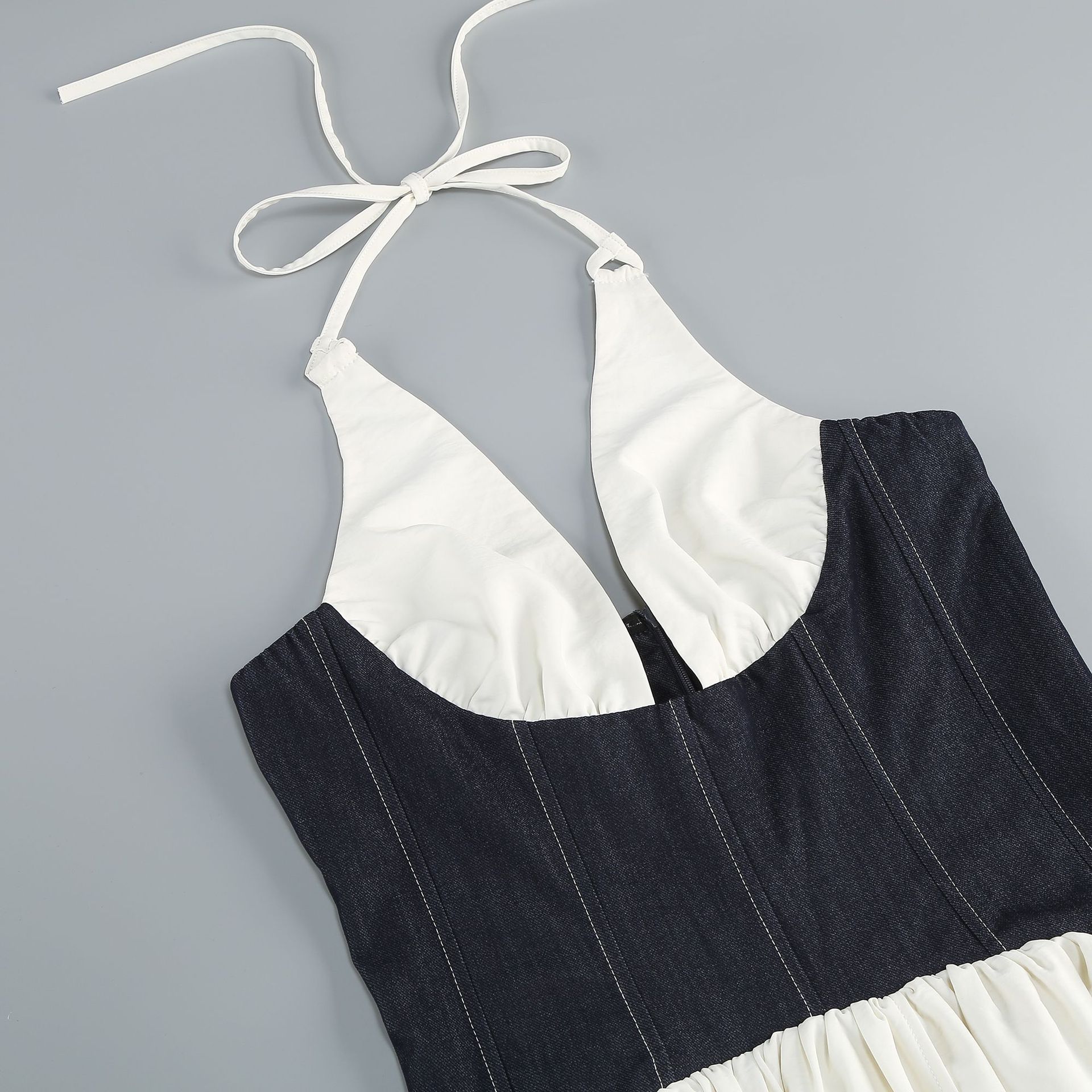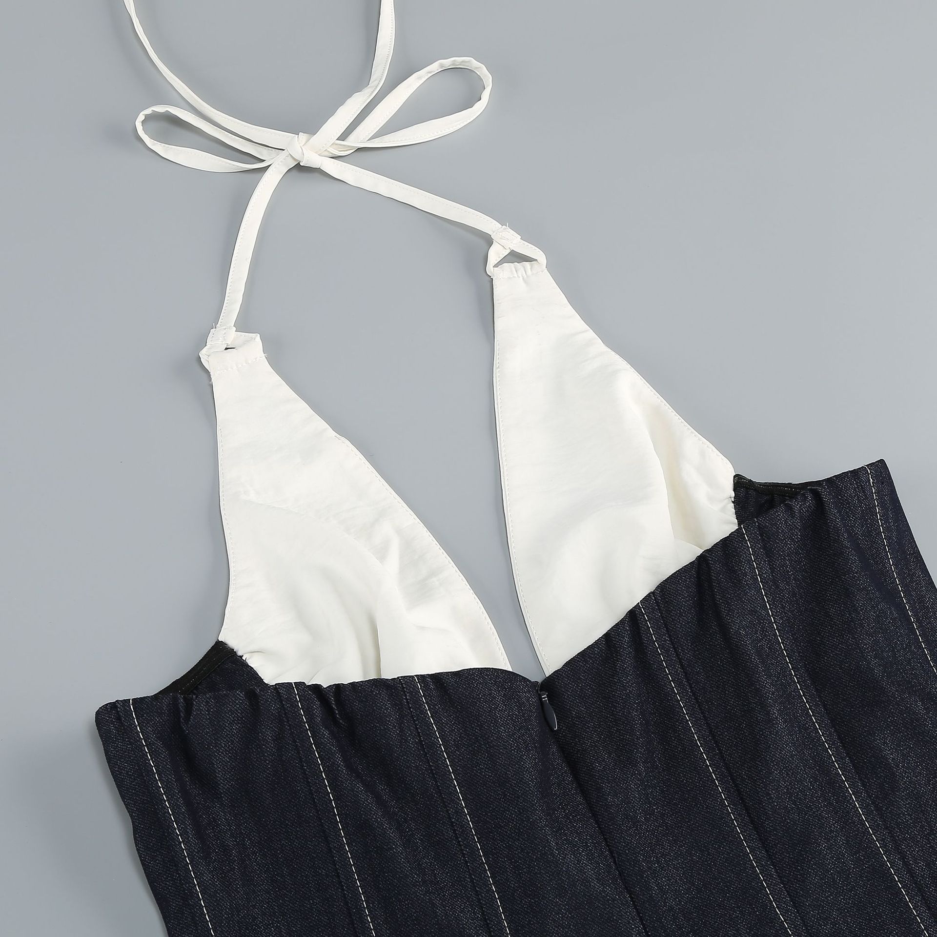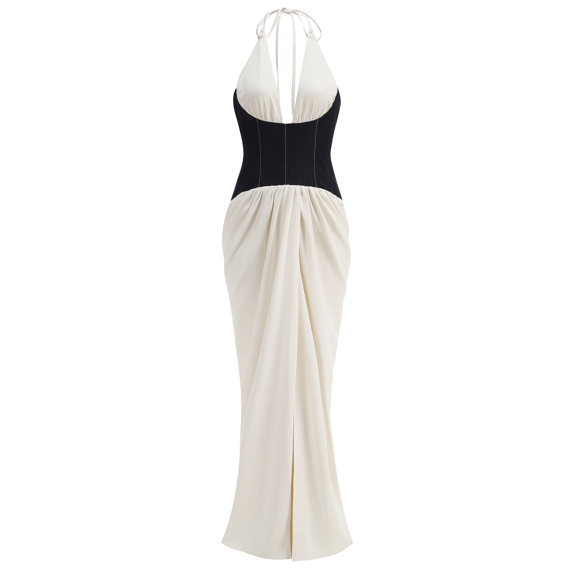 Amazon cross-border personalized photography banquet fashion show dress contrasting colors high split neck backless dress elegant